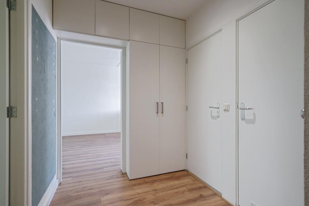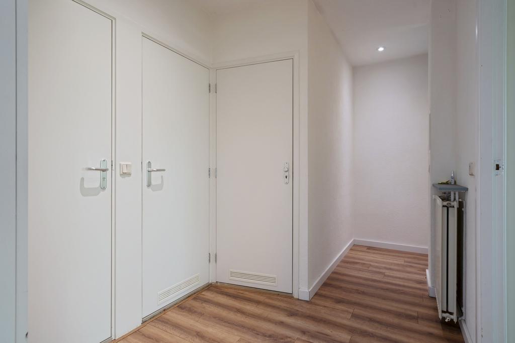 Via de trapopgang kom je bij de voorzijde van het appartement. De meterkast is buiten de woning gelegen. In de entreehal is een inbouwkast gerealiseerd met wasmachine aansluiting en cv-ketel (2020).