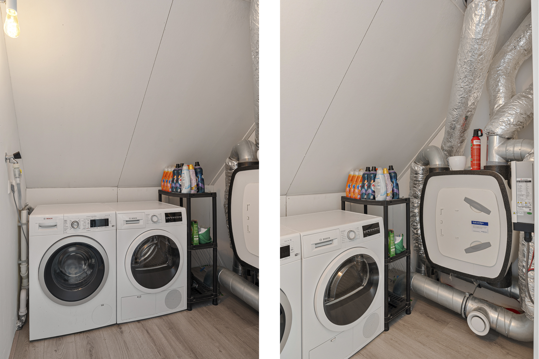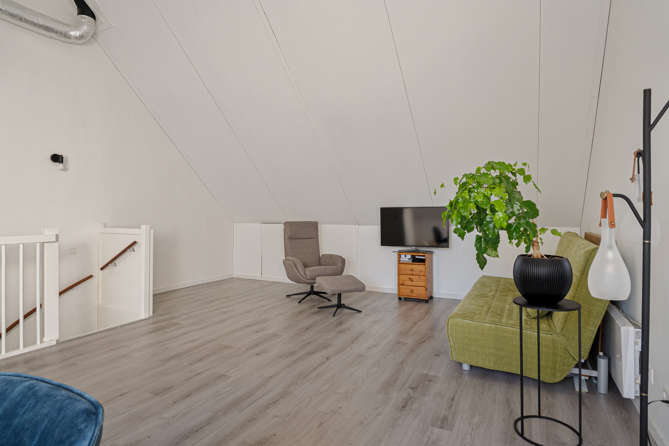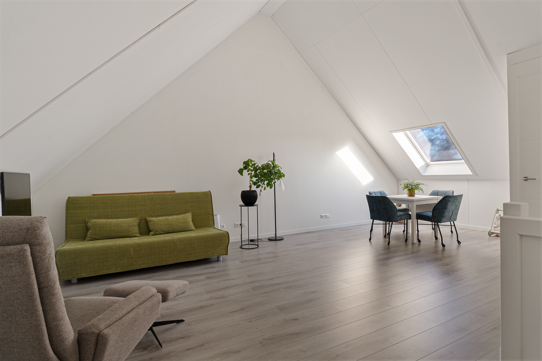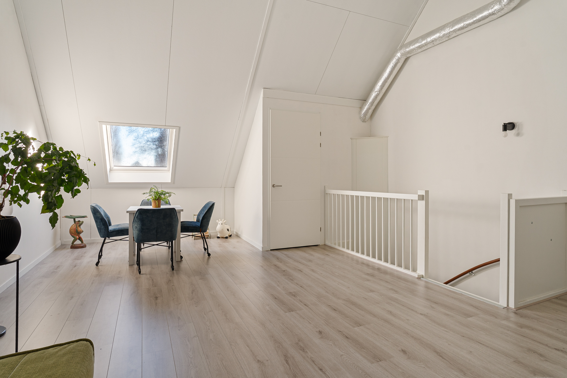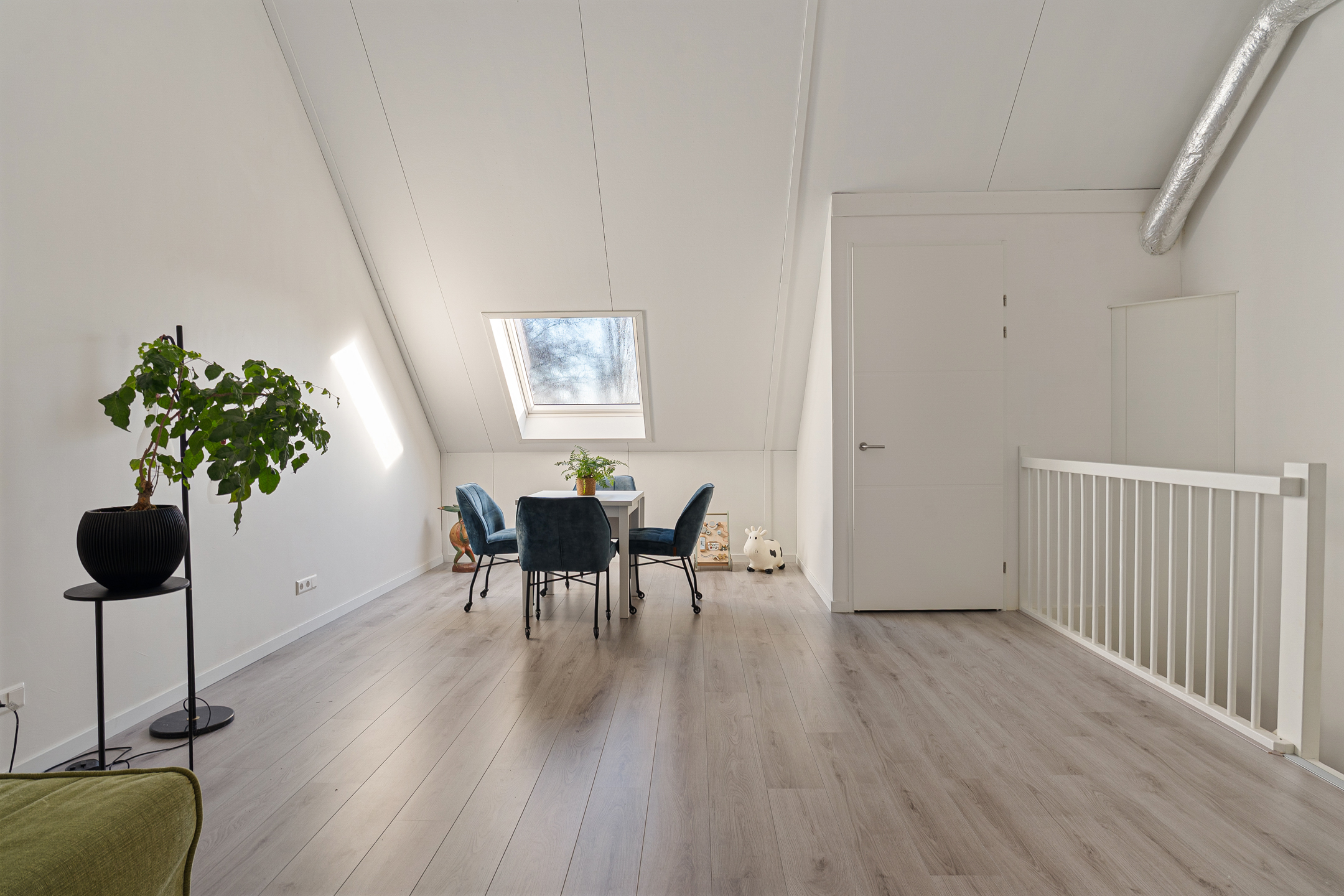 De tweede verdieping biedt een royale open zolderruimte die uitstekend te gebruiken is als vierde slaapkamer, werkruimte of hobbykamer. Daarnaast is hier een praktische bergruimte aanwezig.