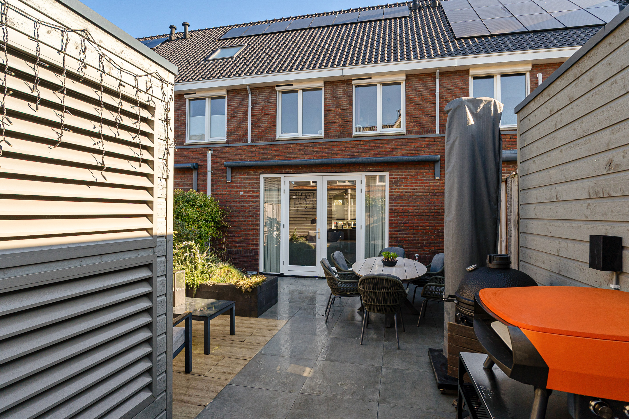 De achtertuin ligt op het zuidwesten en biedt daardoor volop zon gedurende de dag en in de avond. De tuin is verzorgd aangelegd en beschikt over een vrijstaande berging voor fietsen en extra opslagruimte.