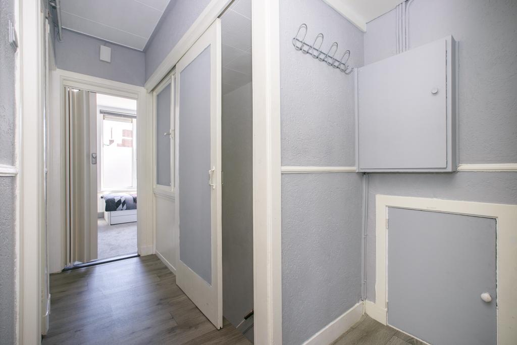 Dit appartement is gelegen op de eerste verdieping. Via de overloop, met separaat toilet heb je toegang tot alle vertrekken. Aan de voorzijde van de woning vind je de woonkamer en slaapkamer 1. Aan de achterzijde ligt slaapkamer 2, de keuken en de badkamer. Deze is voorzien van de wasmachineaansluiting, ligbad en wastafelmeubel. Via de keuken loop je zo het balkon op welke is gelegen op het westen. Het gehele appartement is voorzien van ingebouwde kasten.