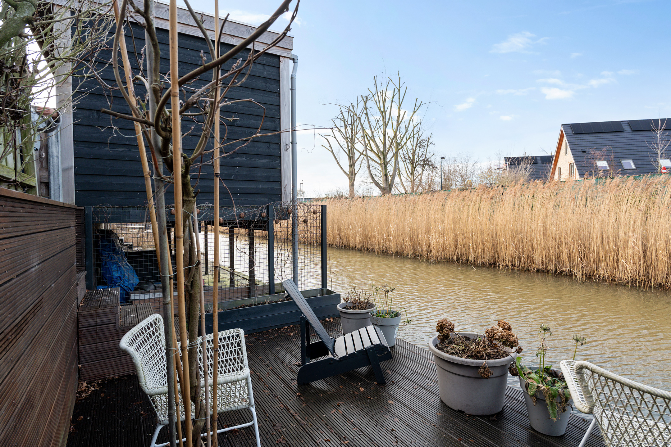 De achtertuin is een echt pluspunt: zonnig gelegen op het westen, met uitzicht op en directe ligging aan het water. Hier geniet je van rust, privacy én een groen uitzicht. Een fijne plek om te ontspannen, buiten te eten of simpelweg tot rust te komen aan de waterkant.