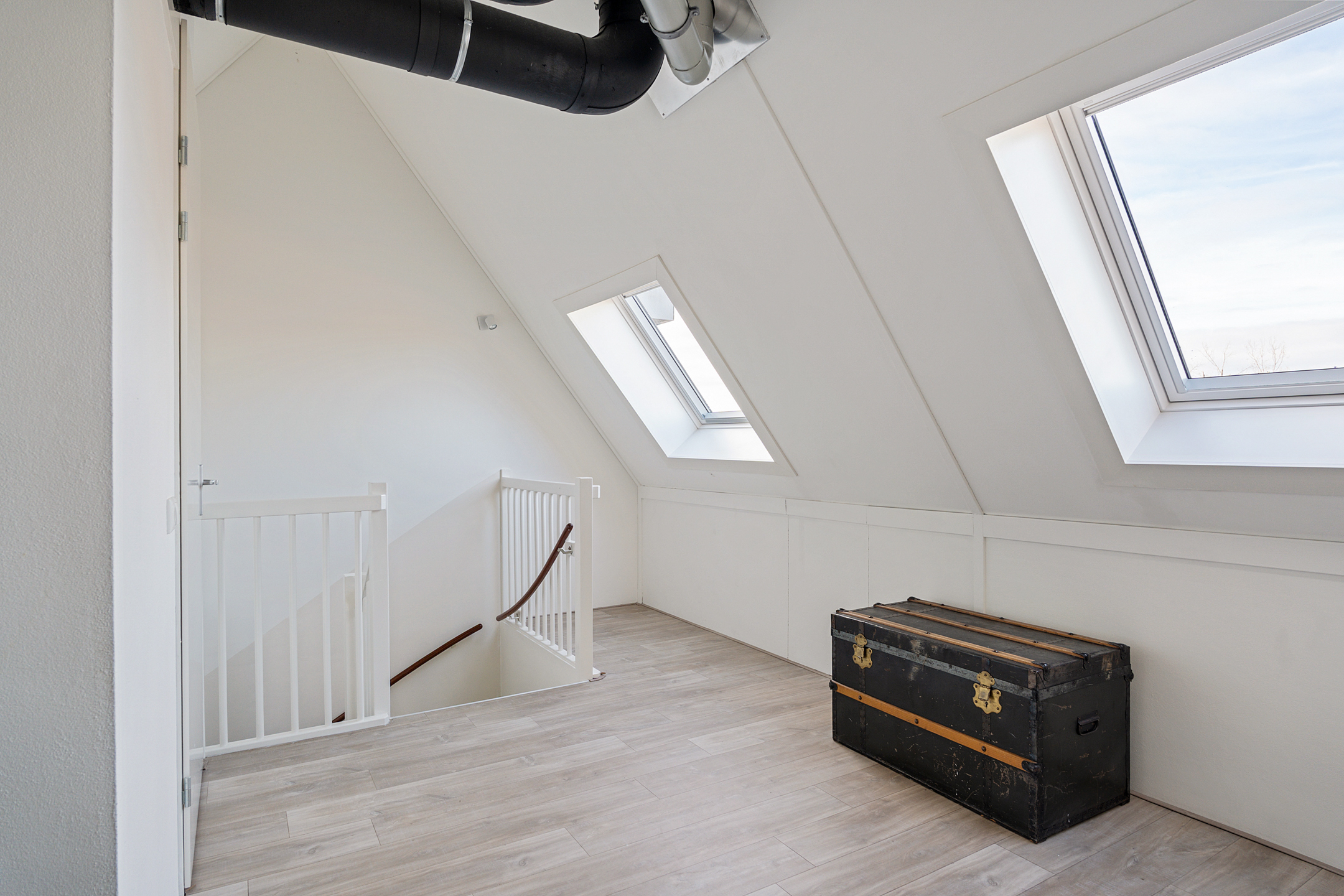 De zolder is voorzien van kunststof dakramen met triple glas, wat zorgt voor veel daglicht en uitstekende isolatie. Een fijne, multifunctionele ruimte – perfect als extra slaapkamer, werkkamer of hobbyruimte. Ook vind je hier de aansluitingen voor wasmachine en droger en extra bergruimte.