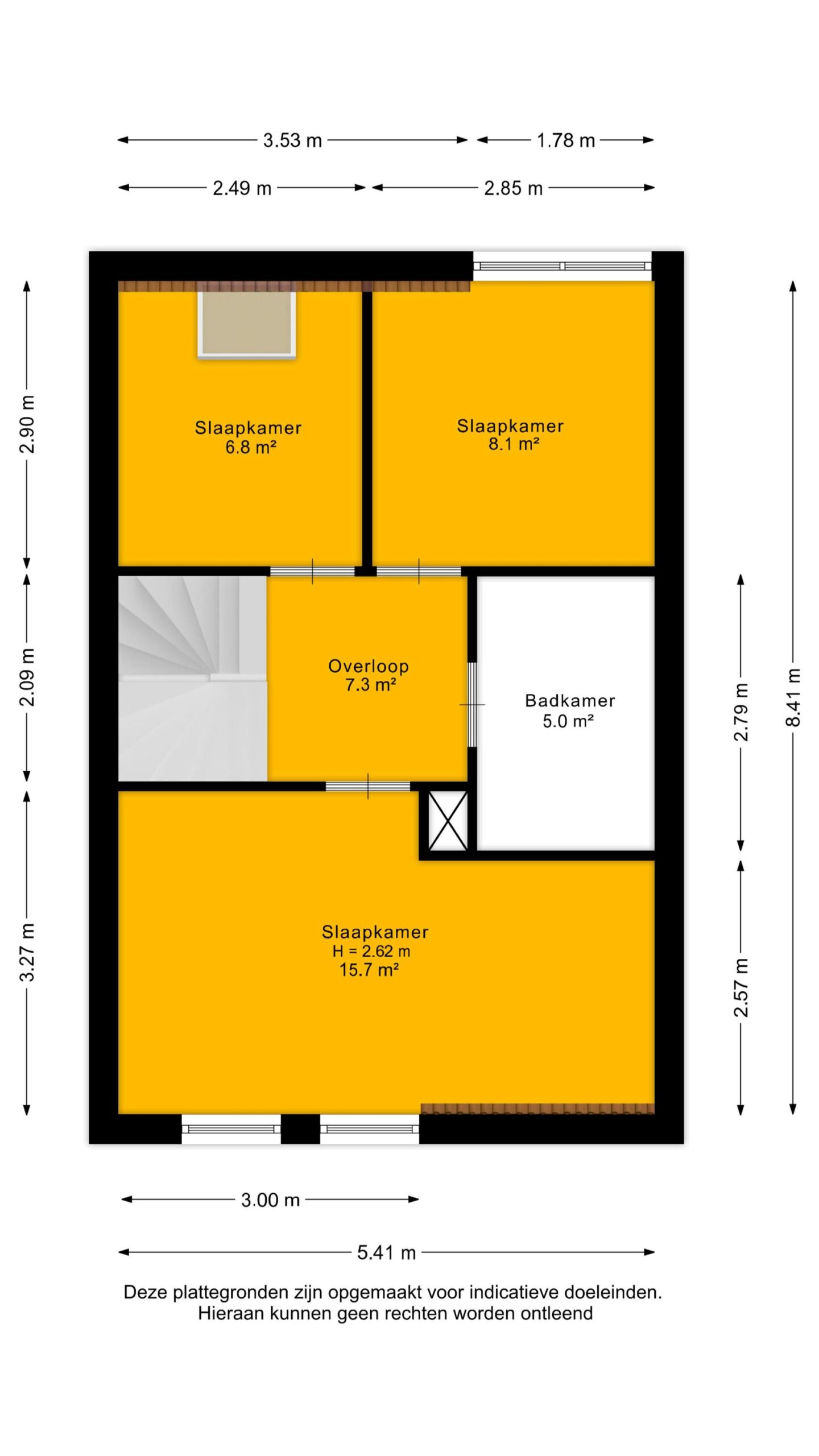 Op de eerste verdieping vind je drie goed bemeten slaapkamers, allemaal voorzien van een laminaat vloer. De badkamer is in 2017 aangelegd en uitgerust met een ruime regendouche, een wastafelmeubel op maat gemaakt en een tweede toilet. De verdieping wordt verwarmd via radiatoren, aangesloten op de combinatie van warmtepomp en cv-ketel.