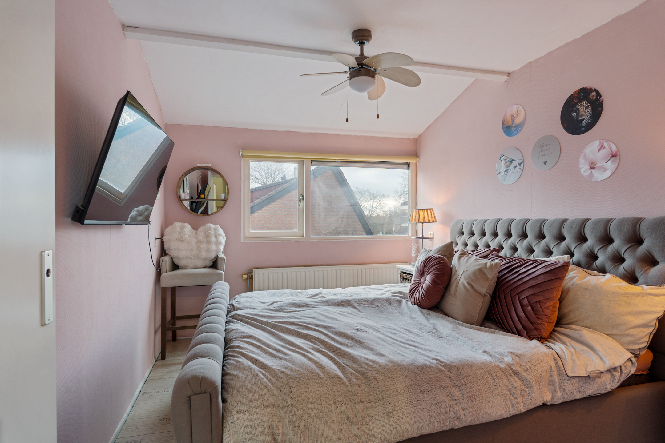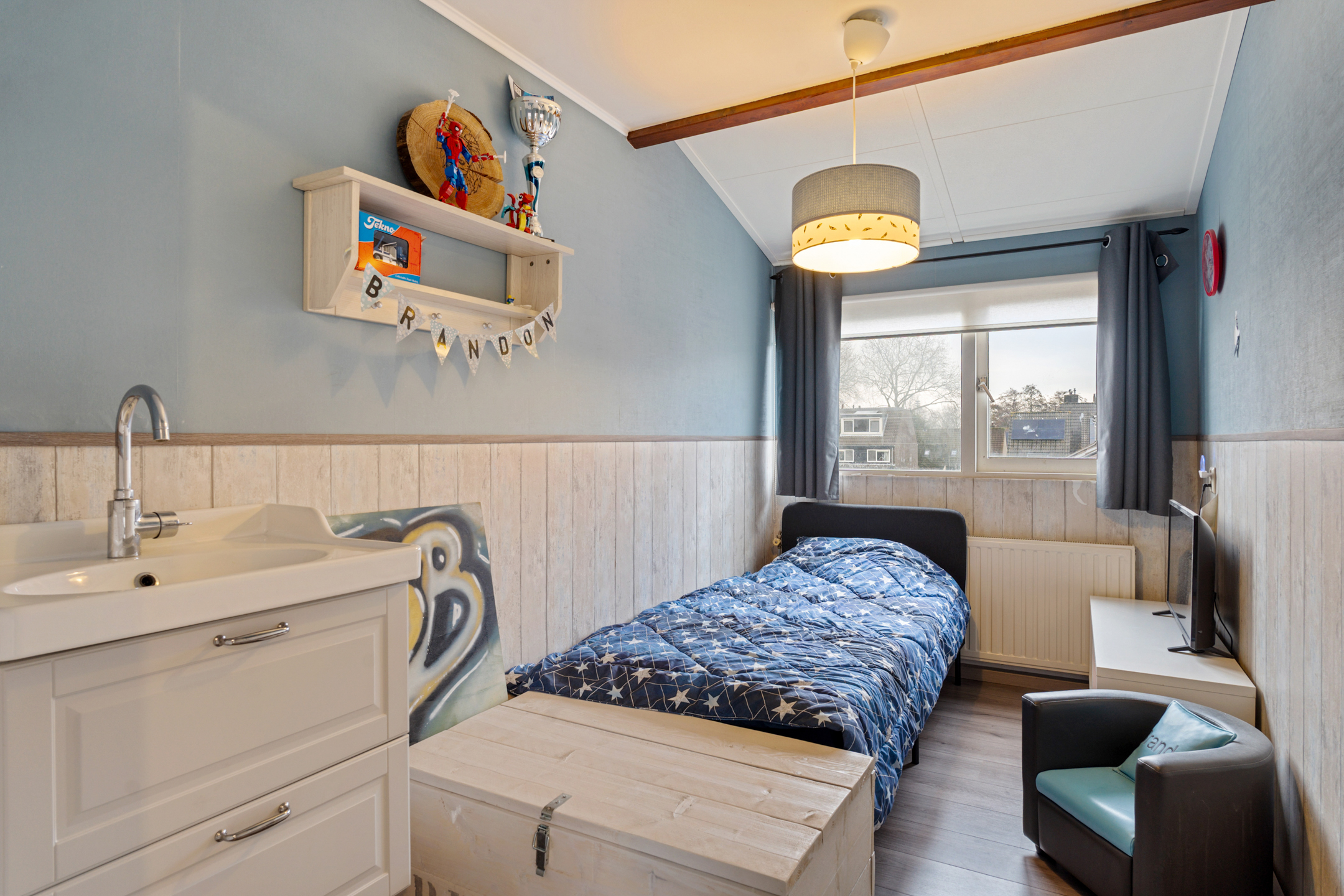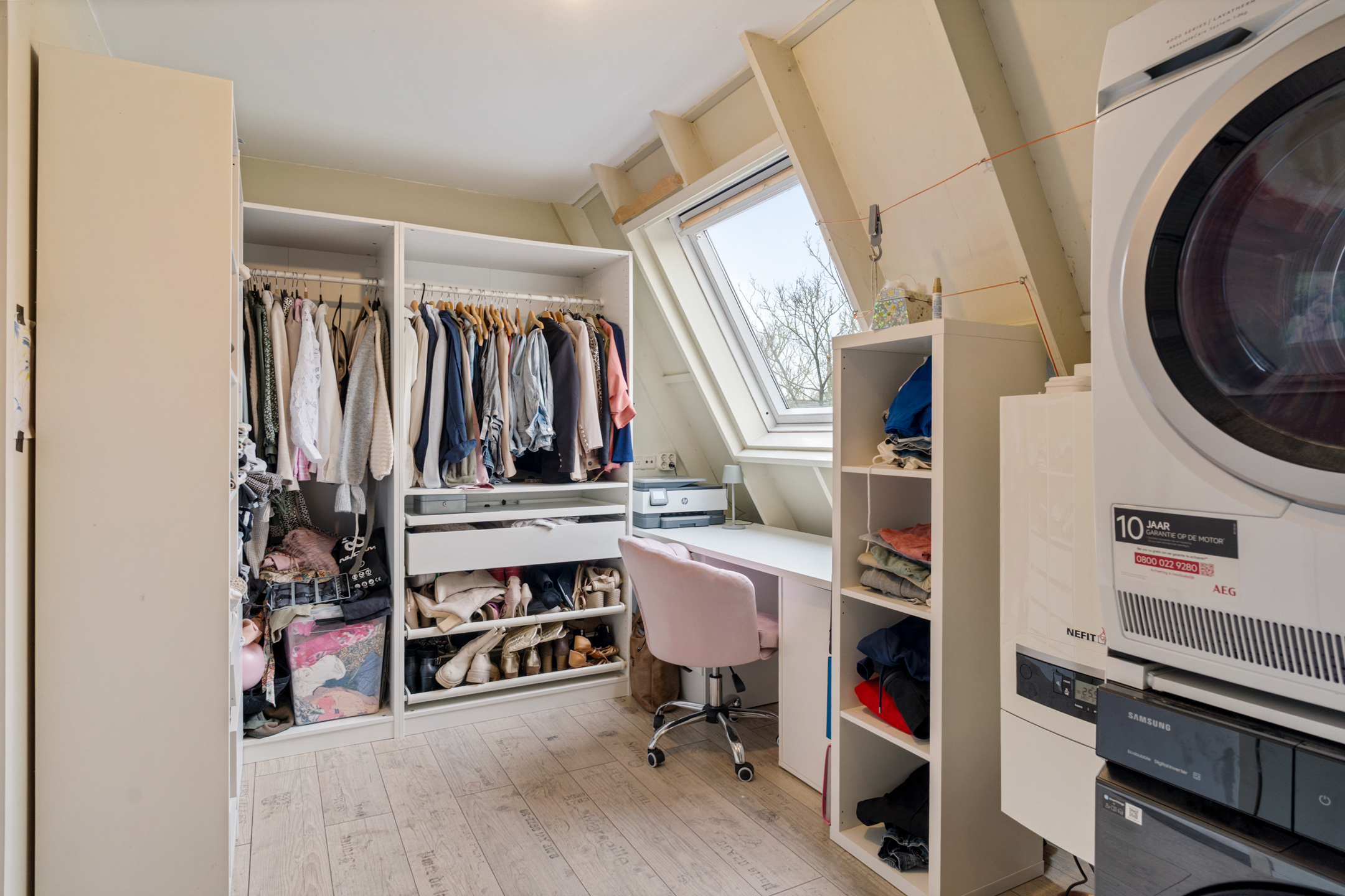 De zolderverdieping biedt verrassend veel ruimte en beschikt over een praktische indeling met een washok en nog eens twee slaapkamers. In de kleinere slaapkamer is een wastafel aanwezig, ideaal voor extra gemak. Daarnaast is de verdieping voorzien van airconditioning, wat zorgt voor een aangenaam binnenklimaat, ook tijdens warme zomerdagen.