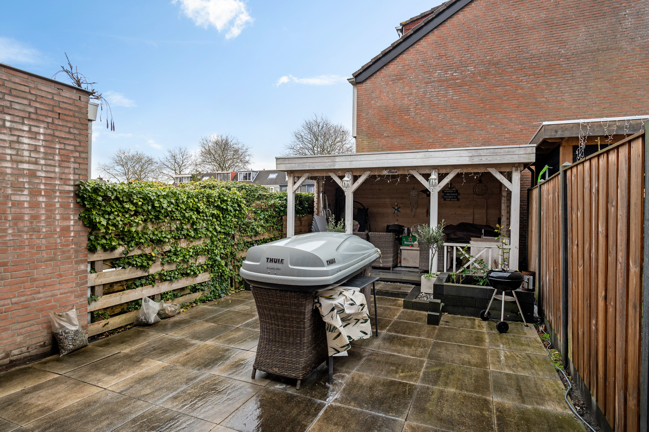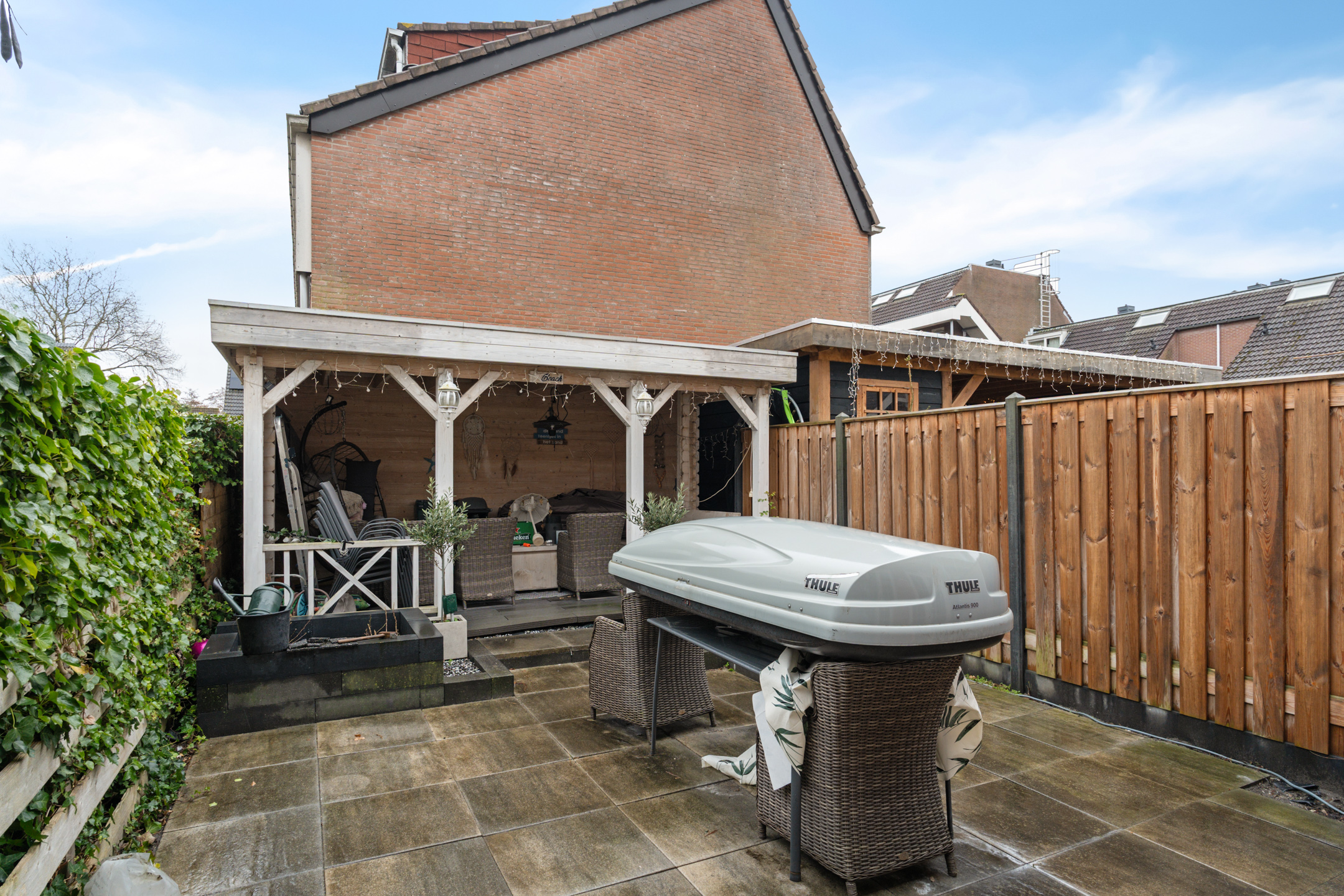 De woning beschikt over zowel een voortuin als achtertuin, waardoor je altijd een fijne plek hebt om buiten te zitten. Via de dubbele openslaande deuren vanuit de woonkamer loop je zo de ruimte achtertuin in: ideaal voor zomerse dagen, een barbecue of spelende kinderen. Daarnaast is er een praktische berging aanwezig voor fietsen en opslag.
