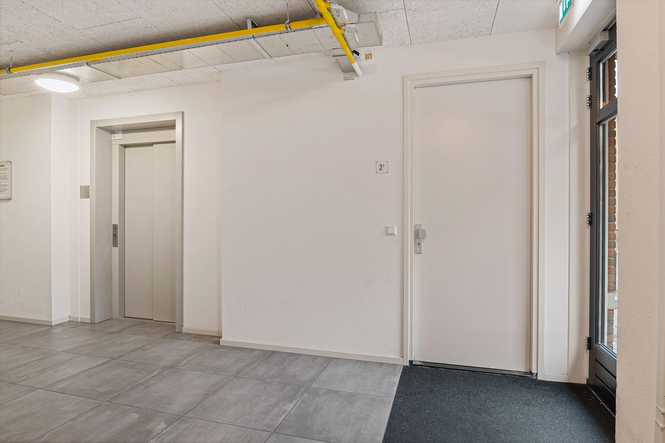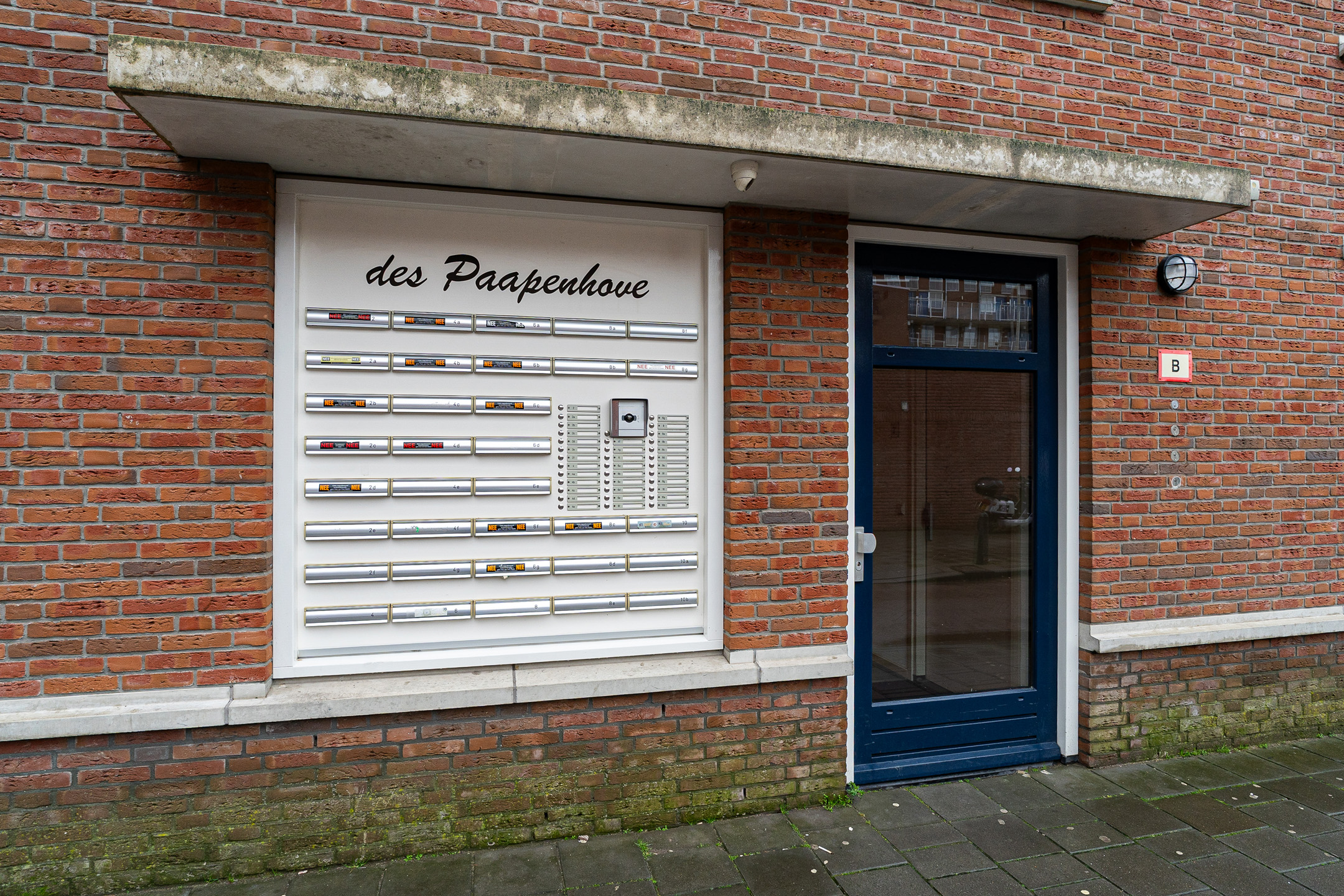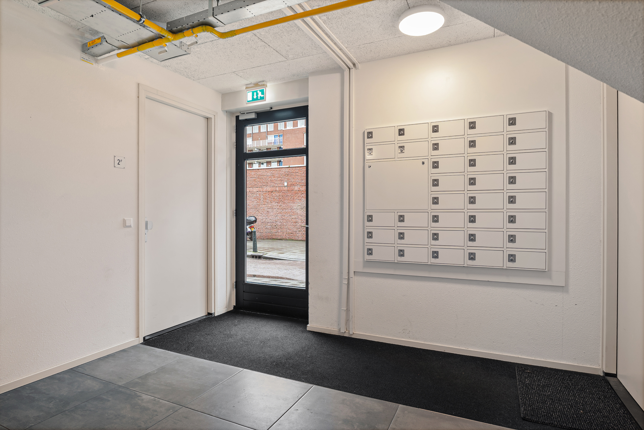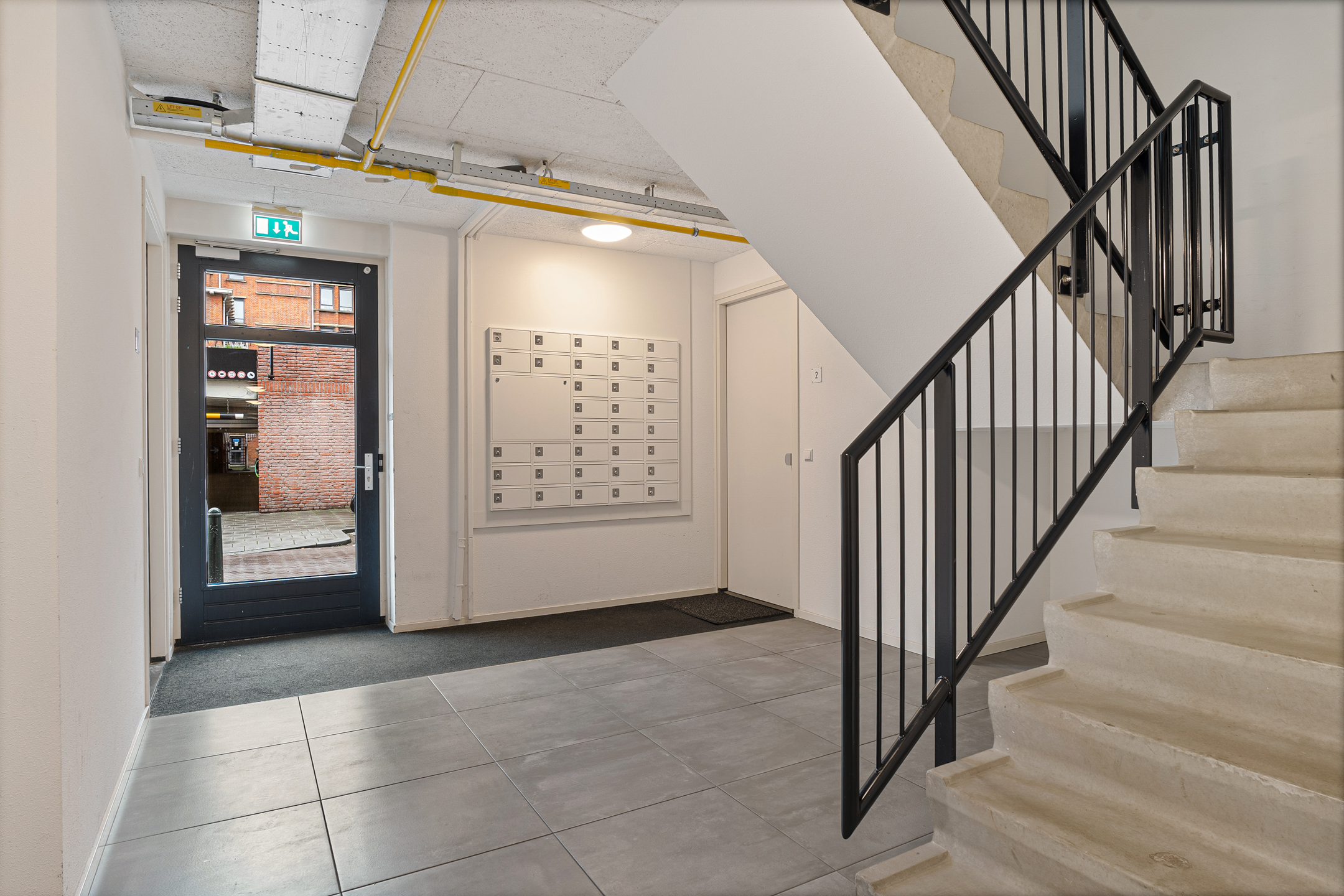 Je komt binnen via het nette portiek met brievenbussen en bereikt de woning op de eerste verdieping.