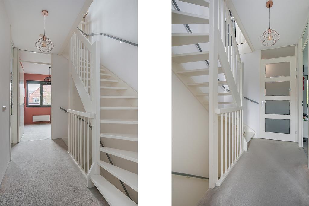 Op de eerste verdieping bevinden zich 3 slaapkamers. Aan de voorzijde van de woning is slaapkamer 1 gesitueerd. Slaapkamer 2 en 3 bevinden zich aan de achterzijde van de woning. De badkamer ligt aan de voorzijde van de woning. Deze is onder andere voorzien van een wastafelmeubel, een douchecabine en een toilet. Ook is hier ruimte gemaakt voor de wasmachine en droger.