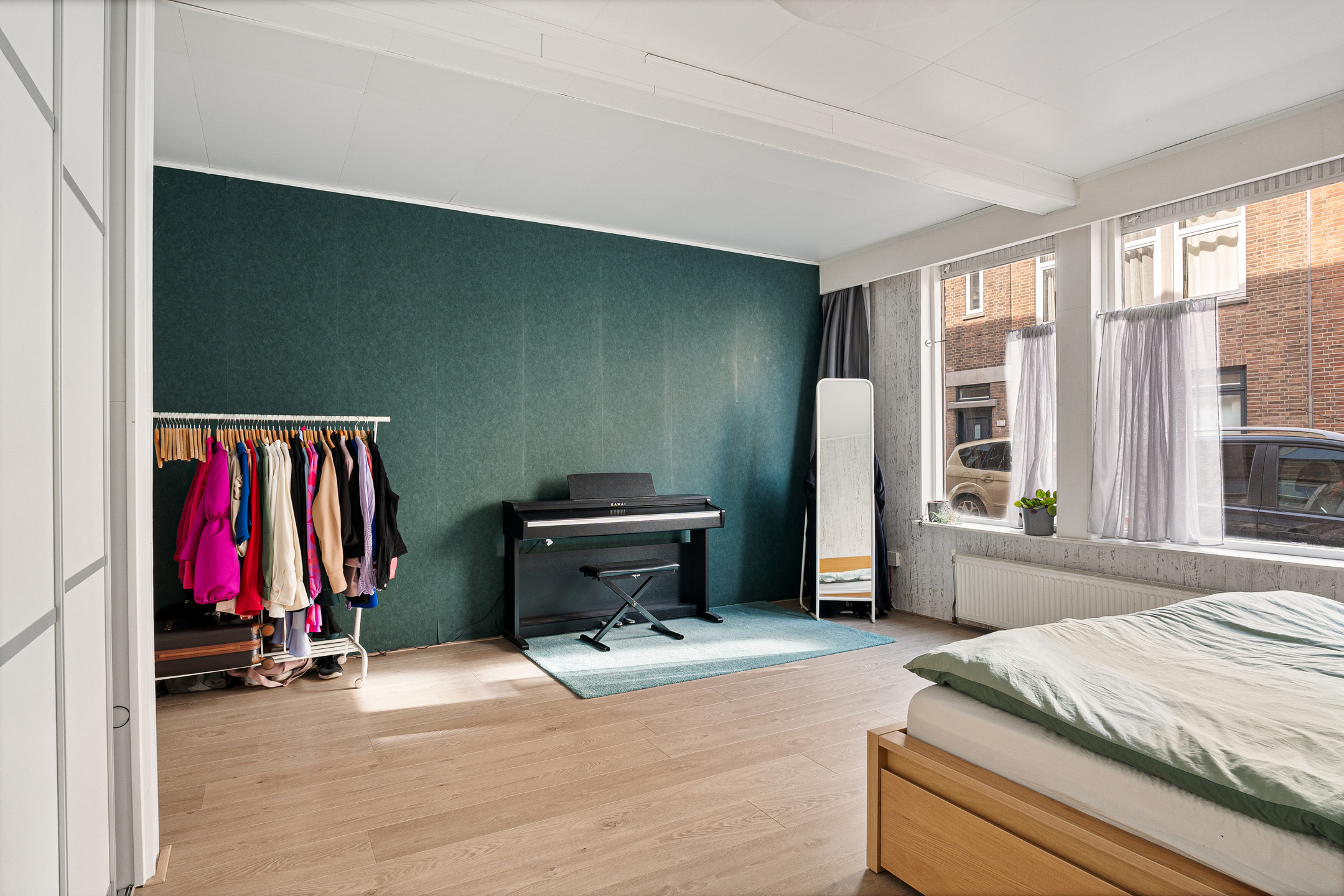 De woning beschikt over twee goed bemeten slaapkamers: één aan de voorzijde en één aan de achterzijde. De badkamer is modern afgewerkt en voorzien van een inloopdouche en een dubbele wastafel.