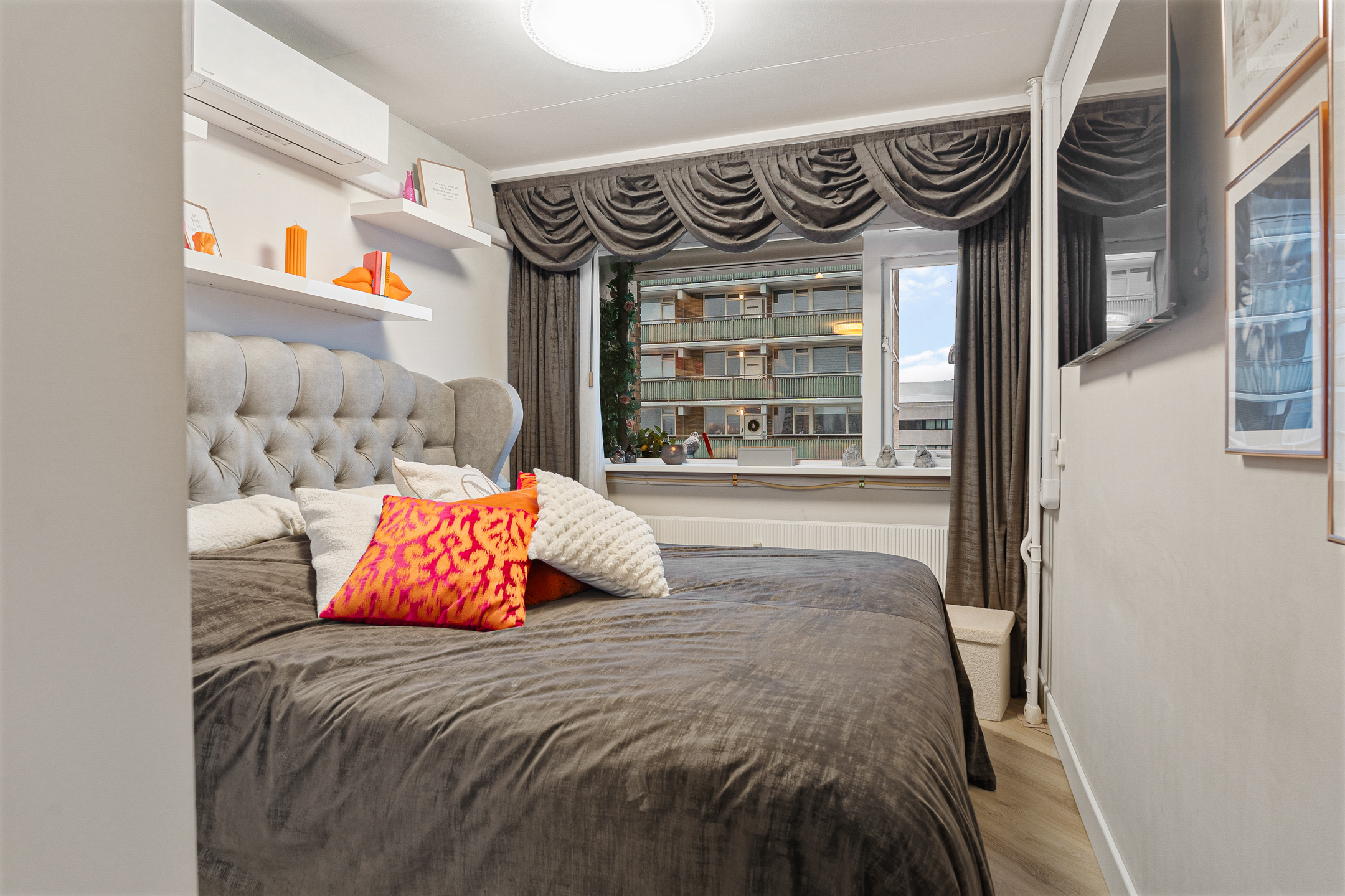 Dit verrassend ruime hoekappartement met vier slaapkamers, luxe keuken en moderne badkamer ligt op de zesde woonlaag van een goed onderhouden complex. Met een zonnig balkon op het westen, airco in meerdere kamers en een eigen berging in de onderbouw is dit een woning die je gezien móét hebben.