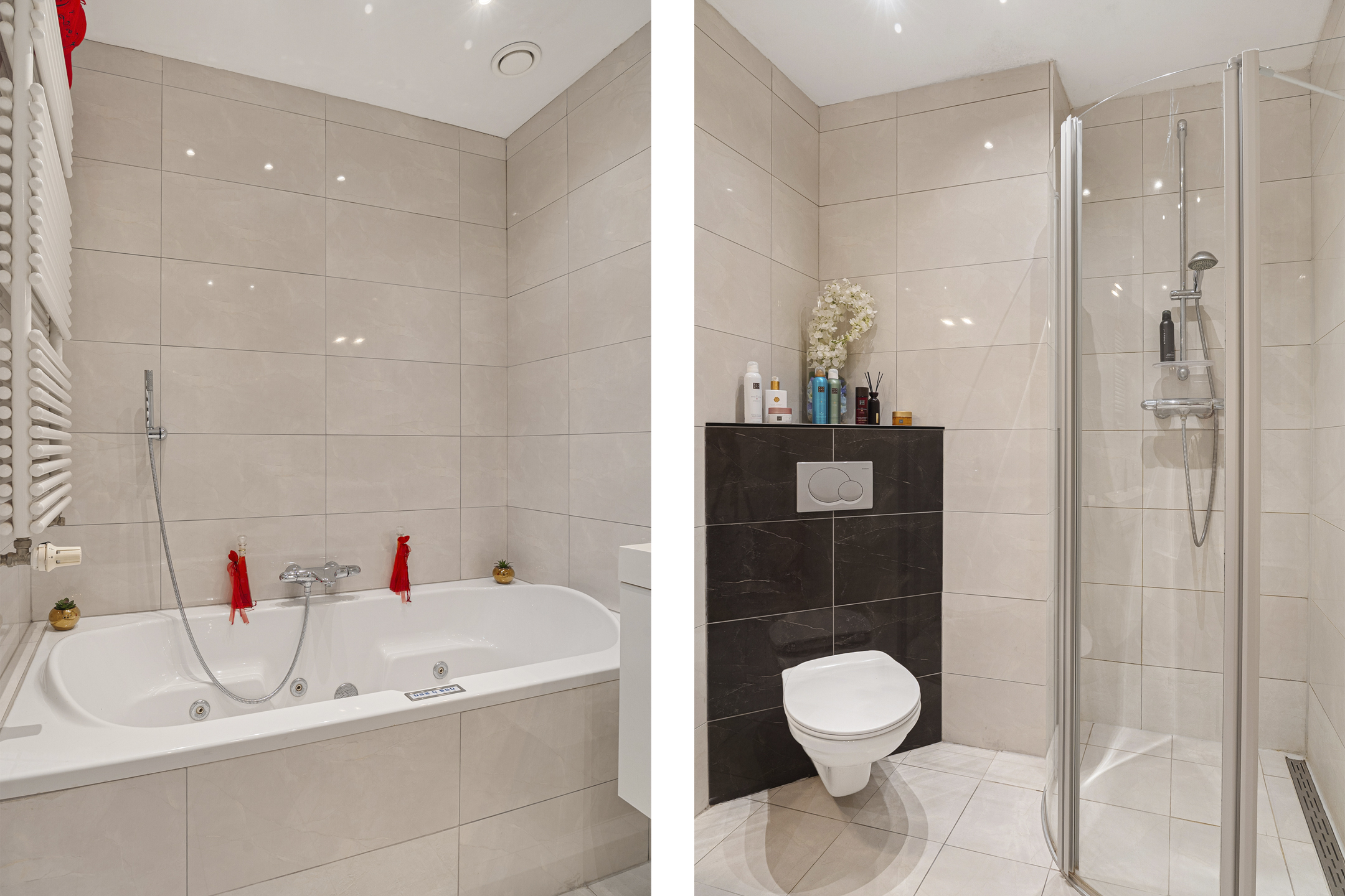 Aan de voorzijde ligt een ruime slaapkamer. Aan de achterzijde vind je nog twee slaapkamers, perfect als kinder-, werkkamer- of inloopkast. De moderne badkamer is voorzien van een ligbad met whirlpool, aparte douche, dubbele wastafel en tweede toilet.