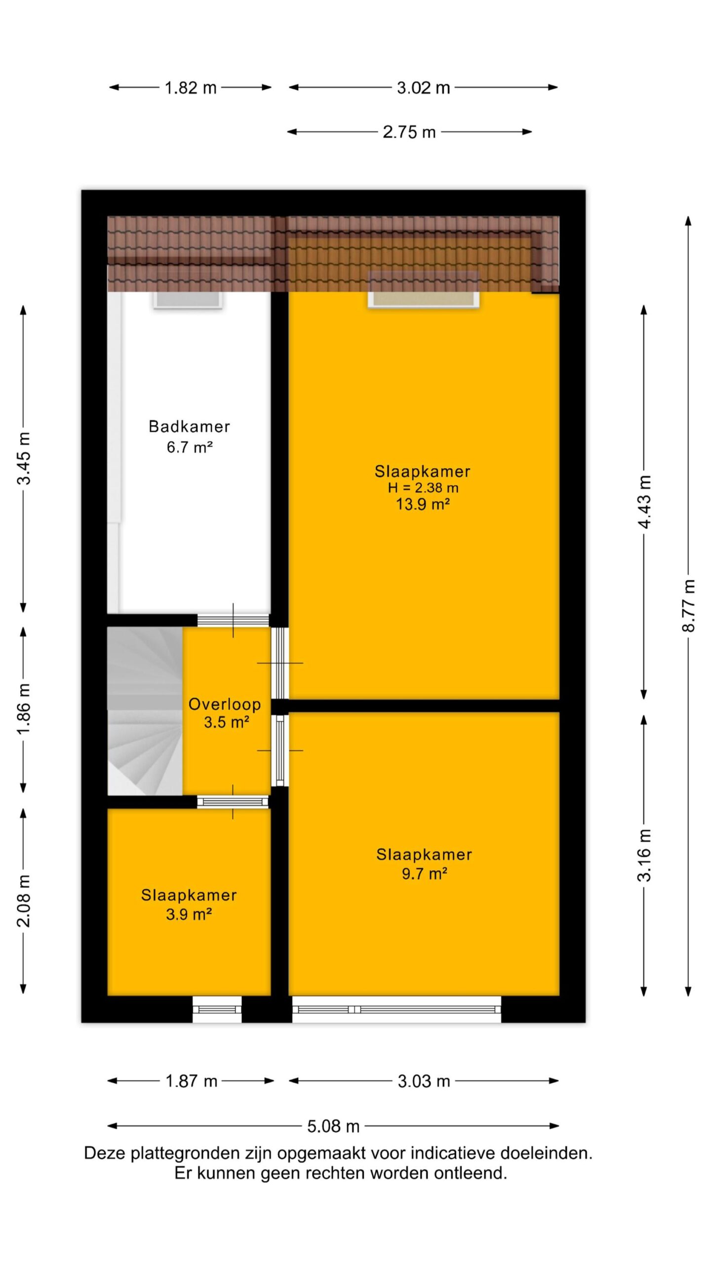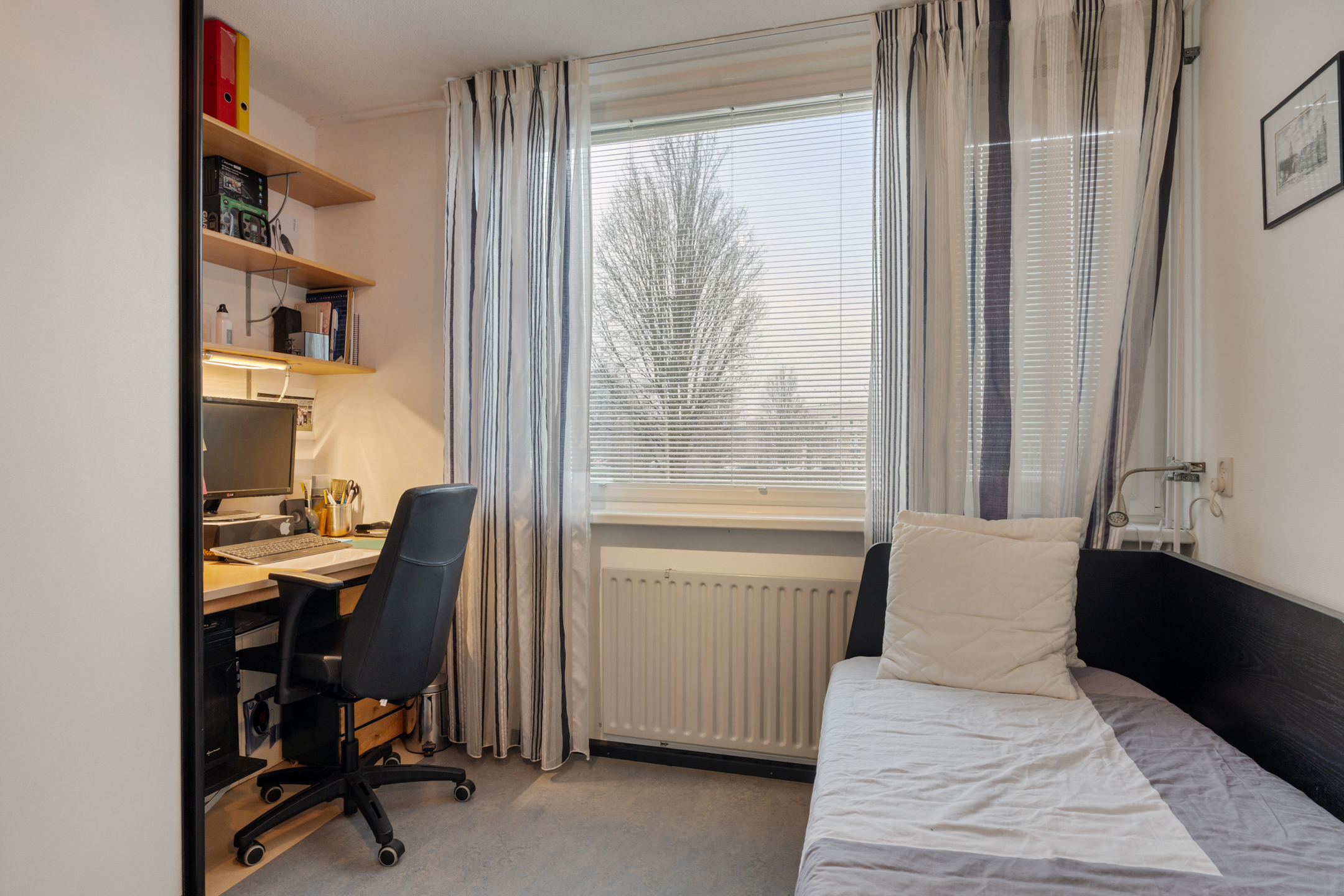 Op deze verdieping vind je drie goed bemeten slaapkamers. De kamers zijn praktisch in te delen en bieden voldoende ruimte voor slapen, werken of studeren. De badkamer is voorzien van een ligbad, douche en wastafel en heeft een verzorgde, functionele uitstraling.