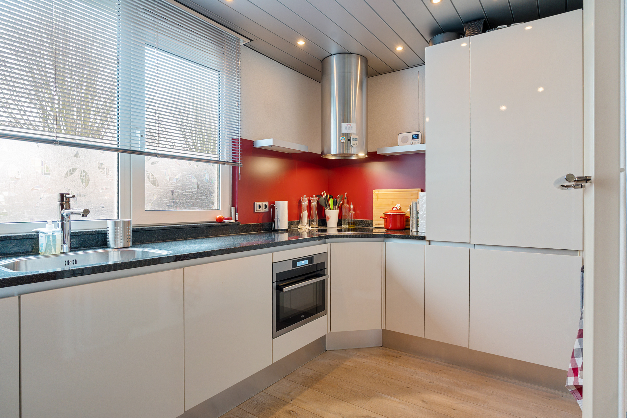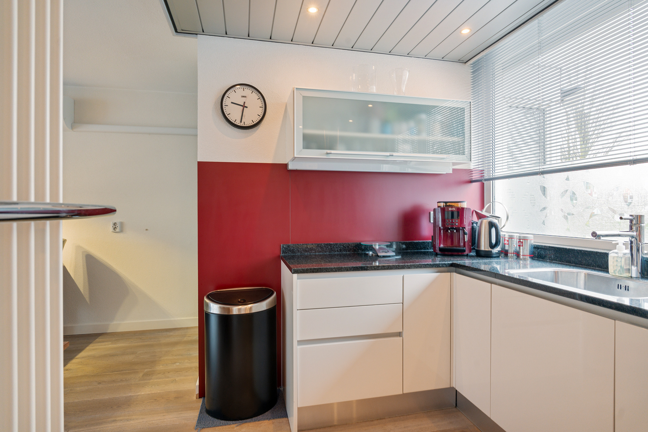 Via de hal kom je binnen in de lichte en ruime woonkamer. Hier heb je alle ruimte om te ontspannen of gezellig samen te zijn. Dankzij de grote raampartijen valt er veel natuurlijk licht naar binnen. De open keuken sluit naadloos aan op de woonkamer en is voorzien van diverse inbouwapparatuur, waardoor je comfortabel kunt koken. Daarnaast is