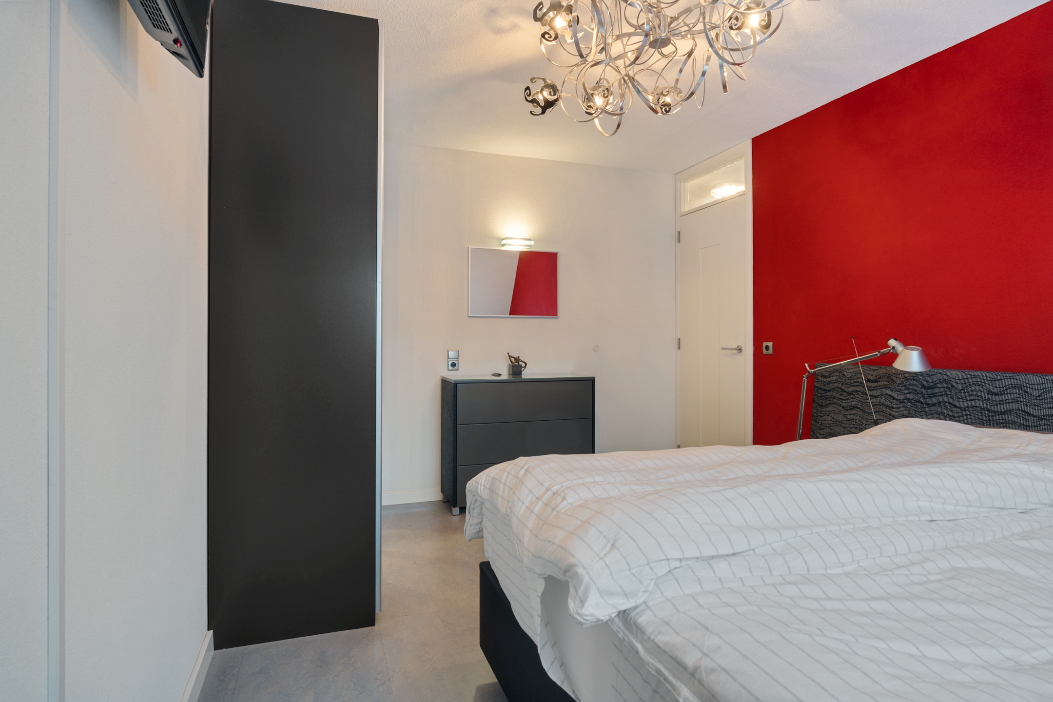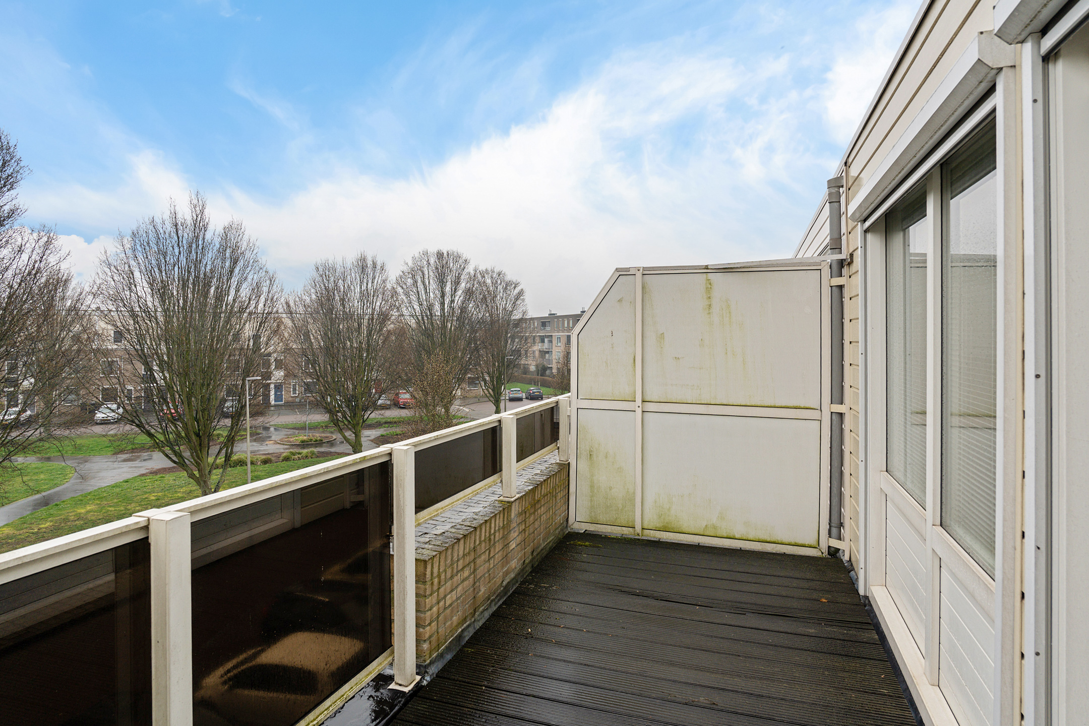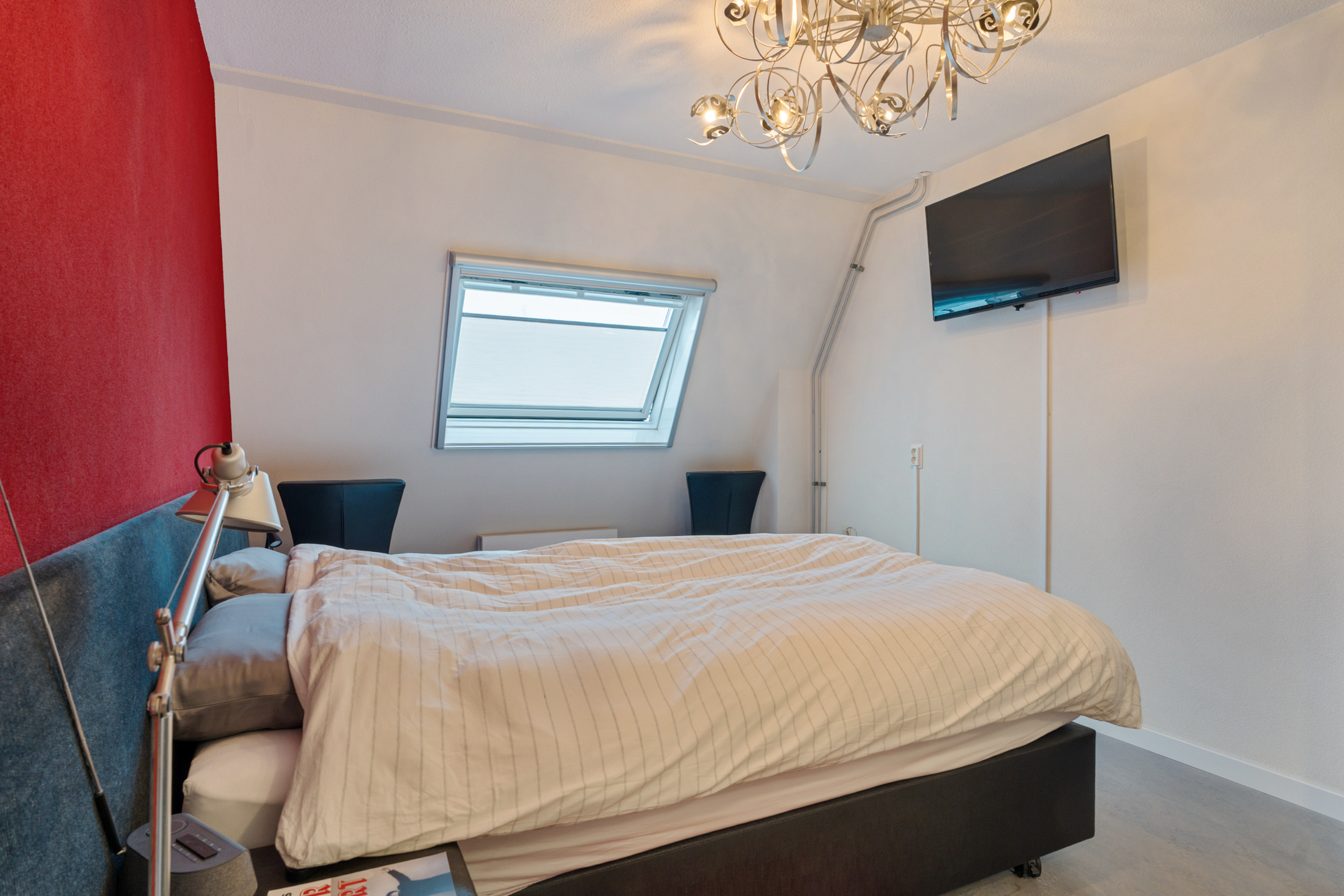 Hier bevindt zich de vierde slaapkamer met directe toegang tot het dakterras. Het dakterras ligt op het zuiden, waardoor je hier volop van de zon geniet. Met het vrije uitzicht over het park is dit een heerlijke plek om te ontspannen of gasten te ontvangen.