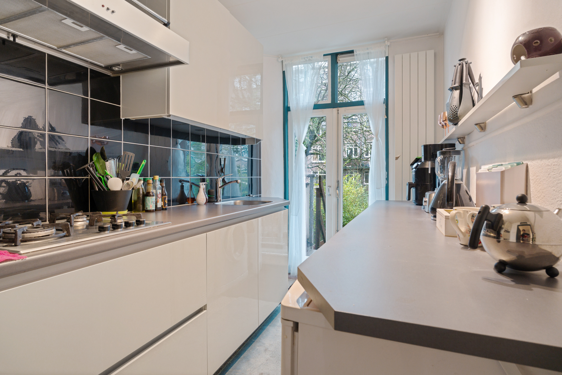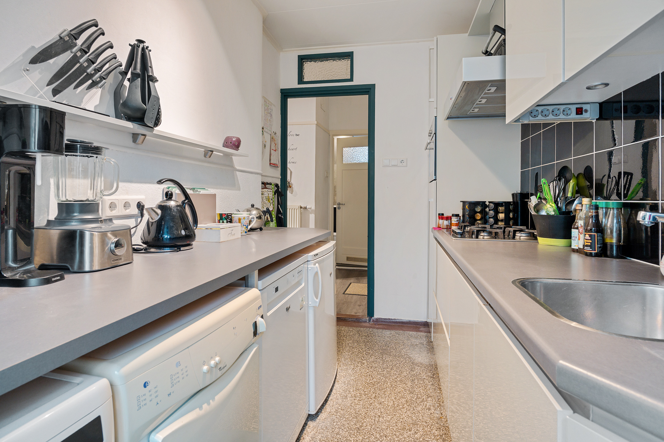 De dichte keuken beschikt over veel werkruimte, een gasfornuis en losse apparatuur. Vanuit de keuken stap je direct het balkon op, dat in verbinding staat met de tuin en zorgt voor een prettige overgang tussen binnen en buiten.