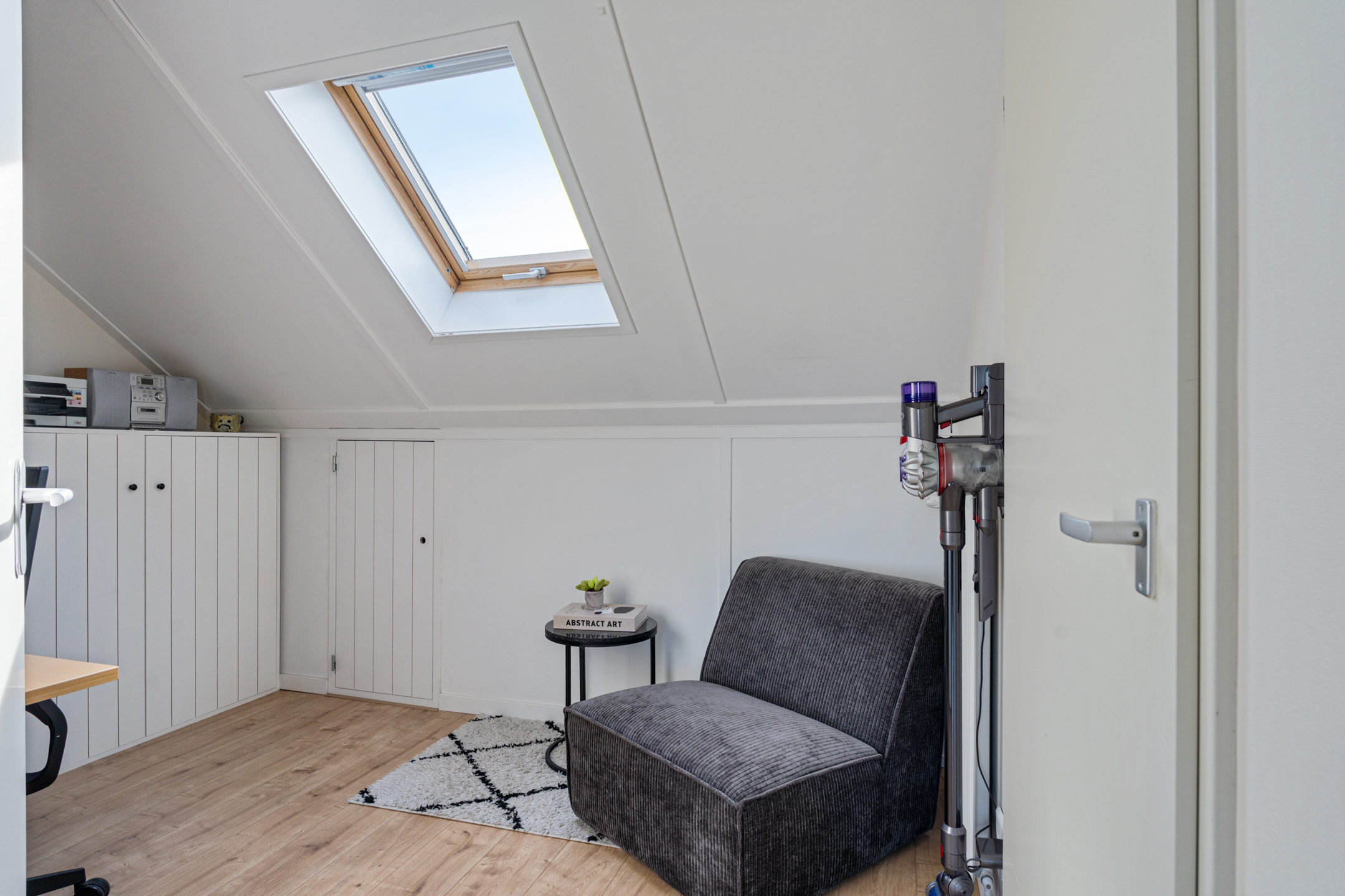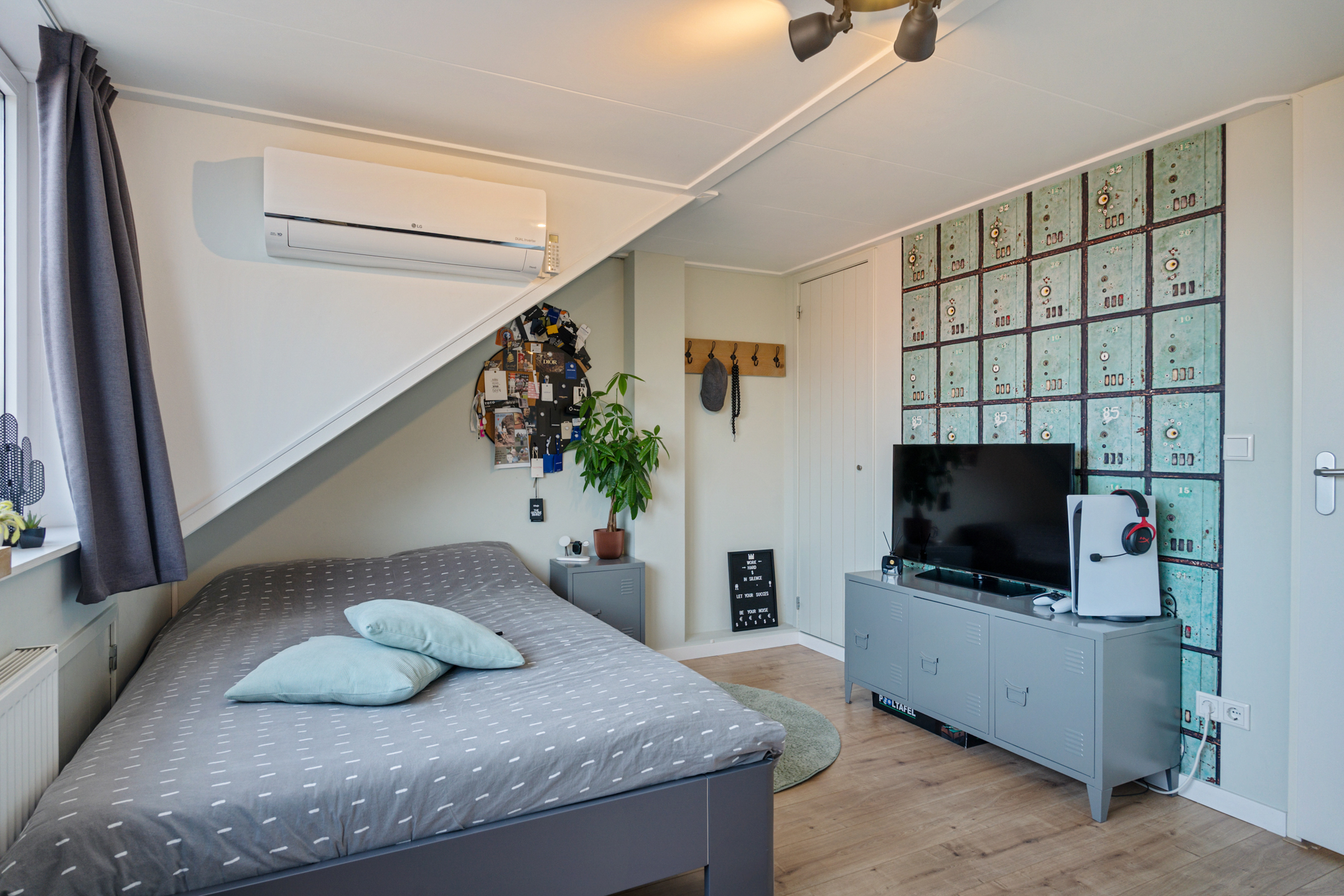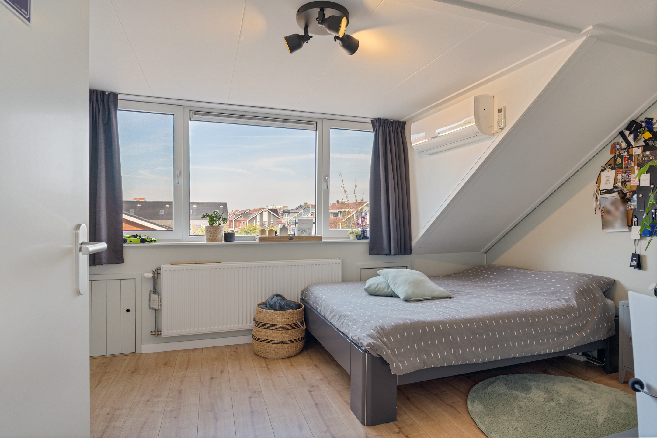 De tweede verdieping biedt nog eens twee slaapkamers, één aan de voorzijde en één aan de achterzijde met dakraam. De kamer aan de voorzijde beschikt over een dakkapel, airconditioning en een handige berging. Daarnaast is er een tweede moderne badkamer met inloopdouche en wastafel. In de aparte berging vind je de wasmachineaansluiting, de cv-ketel (2014) en de wtw-installatie (2023).