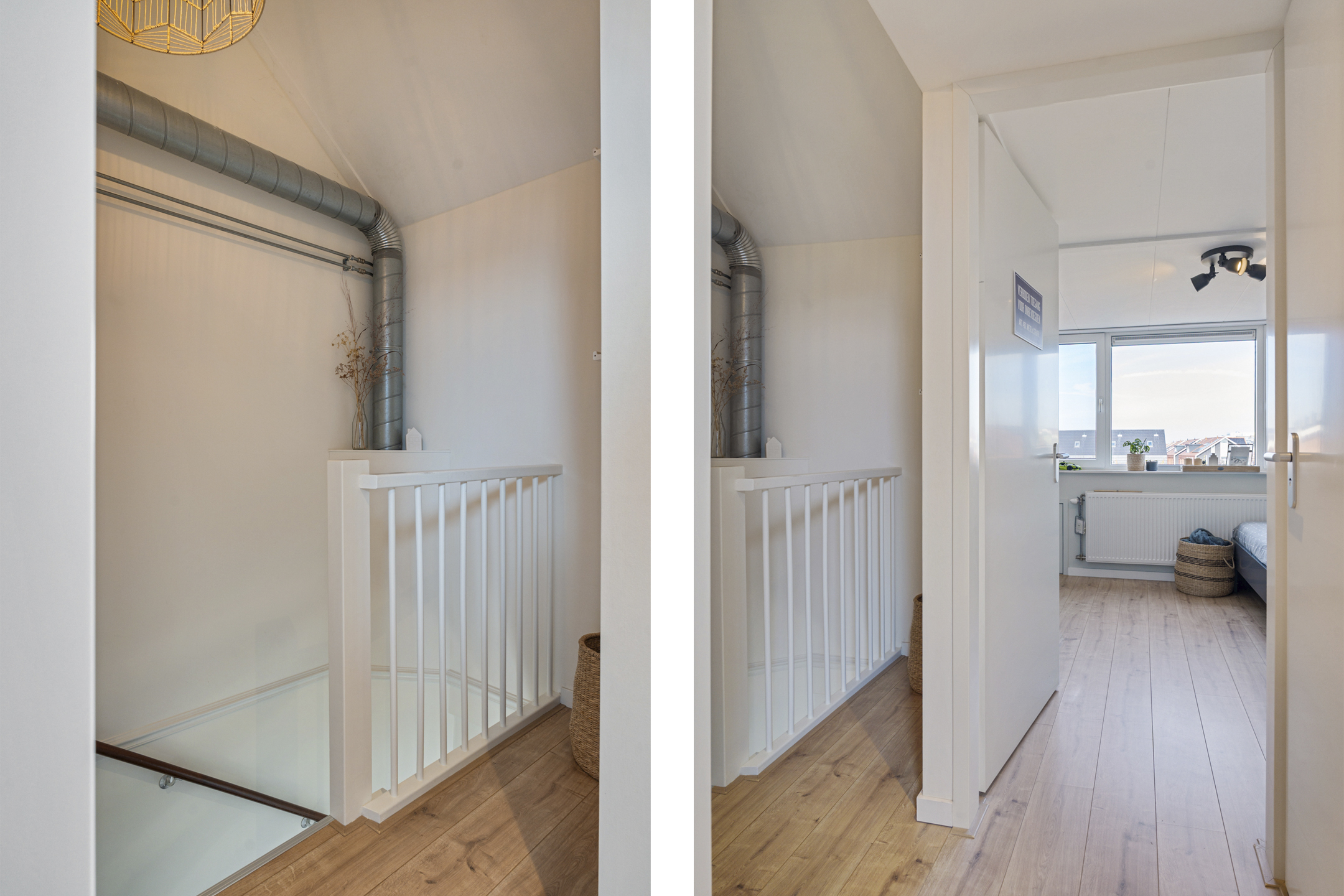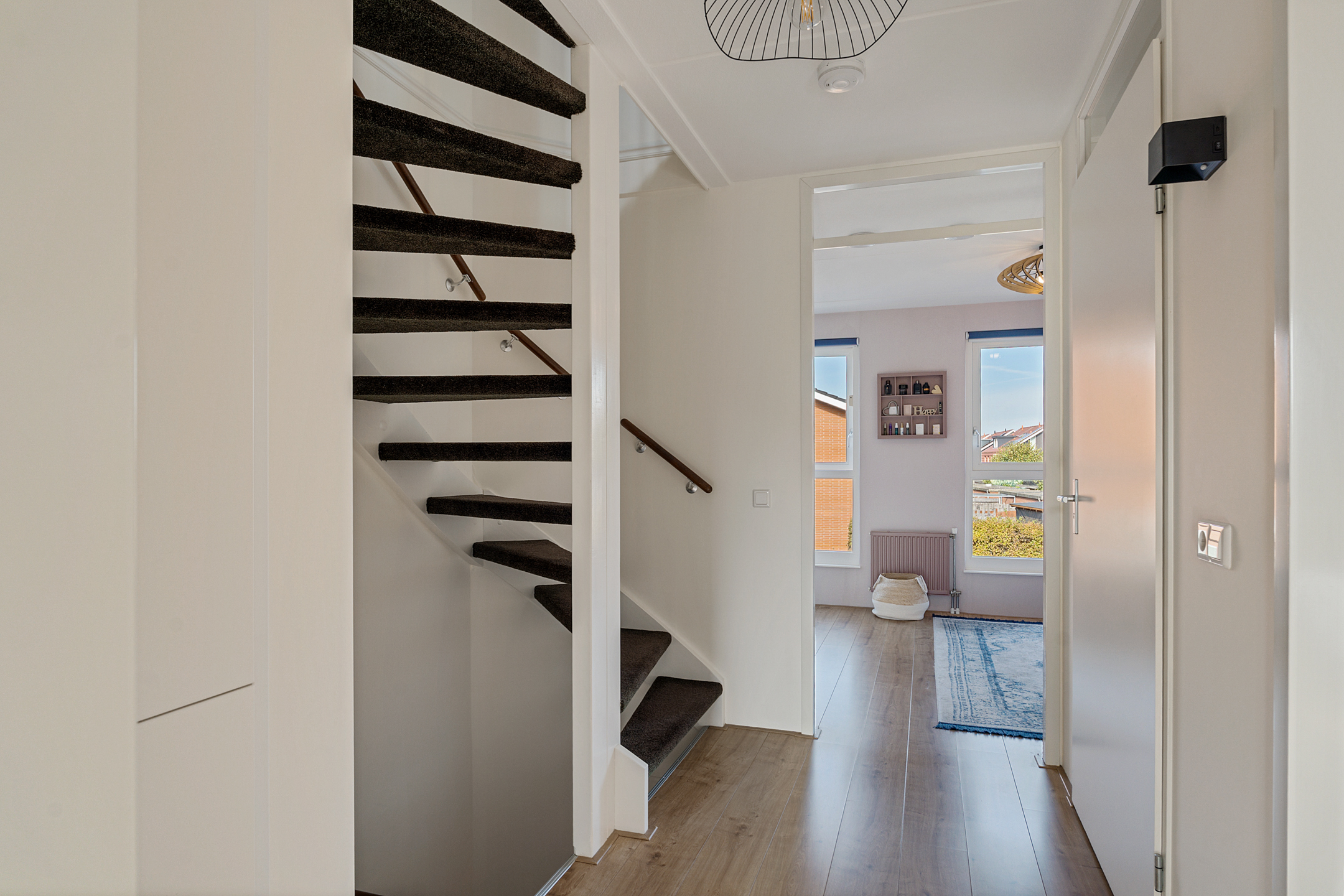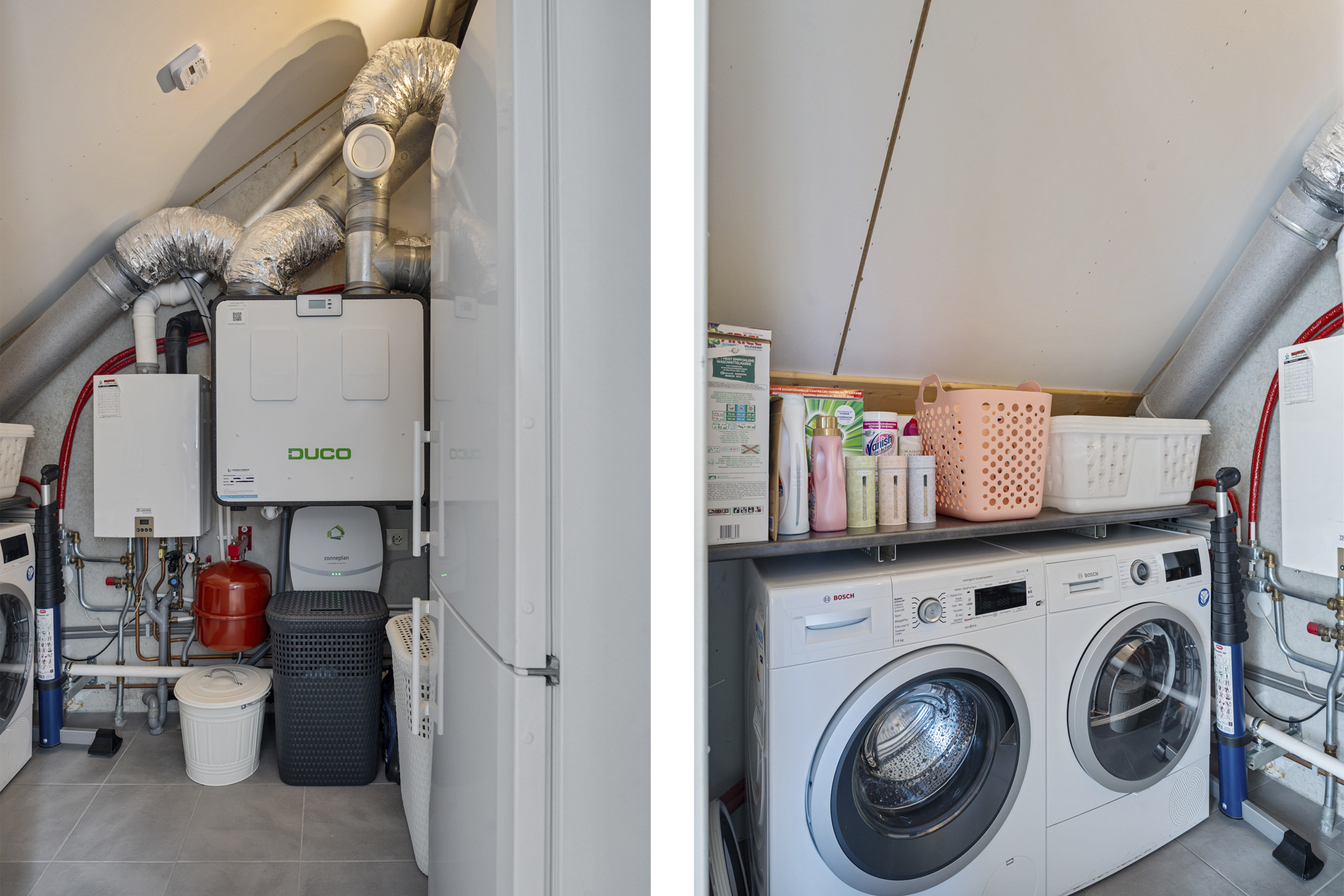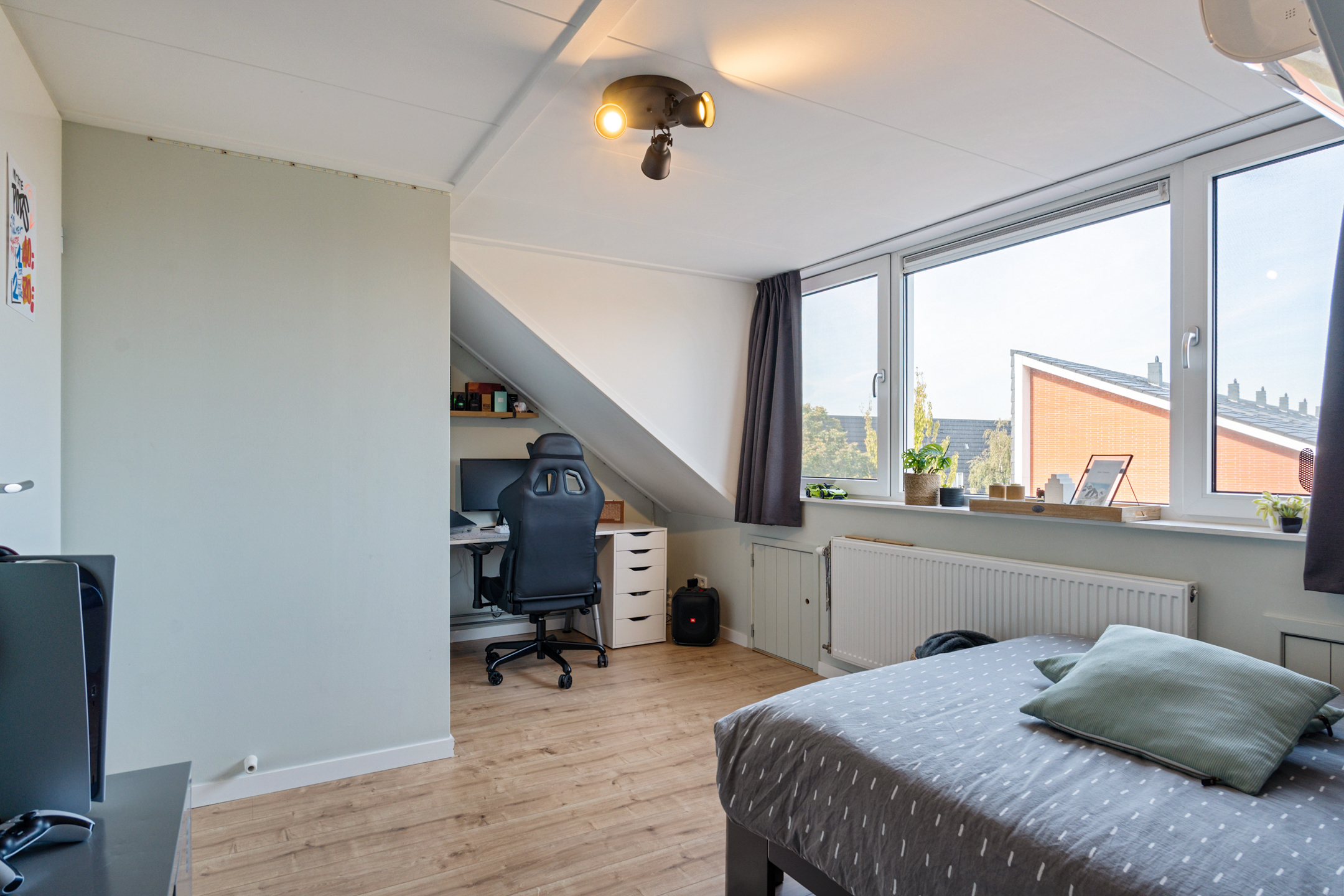 De tweede verdieping biedt nog eens twee slaapkamers, één aan de voorzijde en één aan de achterzijde met dakraam. De kamer aan de voorzijde beschikt over een dakkapel, airconditioning en een handige berging. Daarnaast is er een tweede moderne badkamer met inloopdouche en wastafel. In de aparte berging vind je de wasmachineaansluiting, de cv-ketel (2014) en de wtw-installatie (2023).