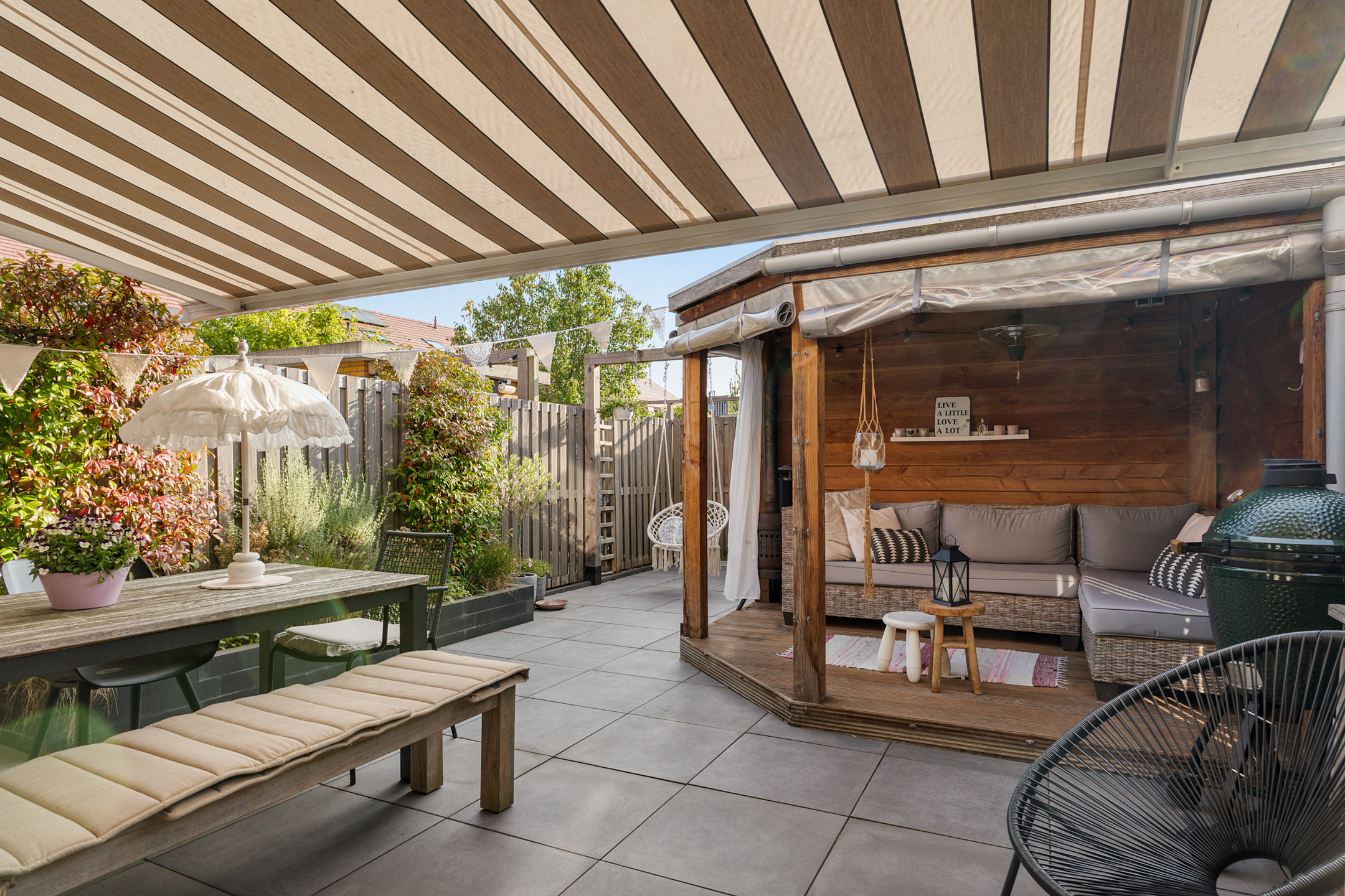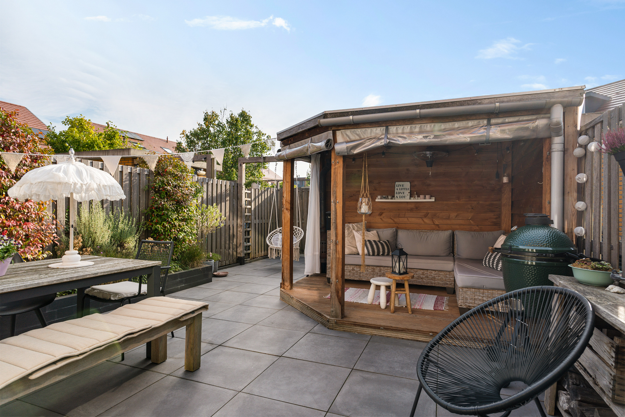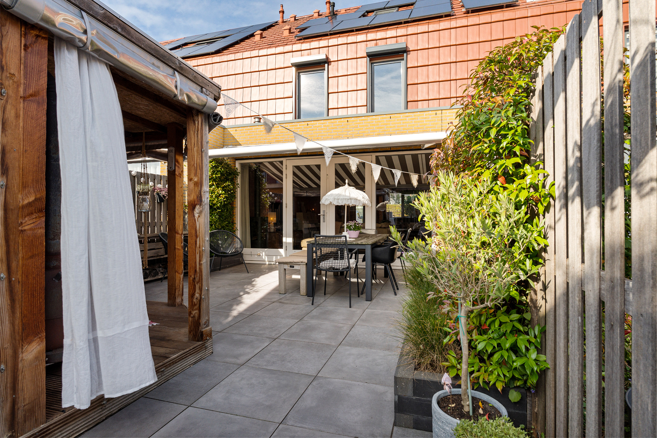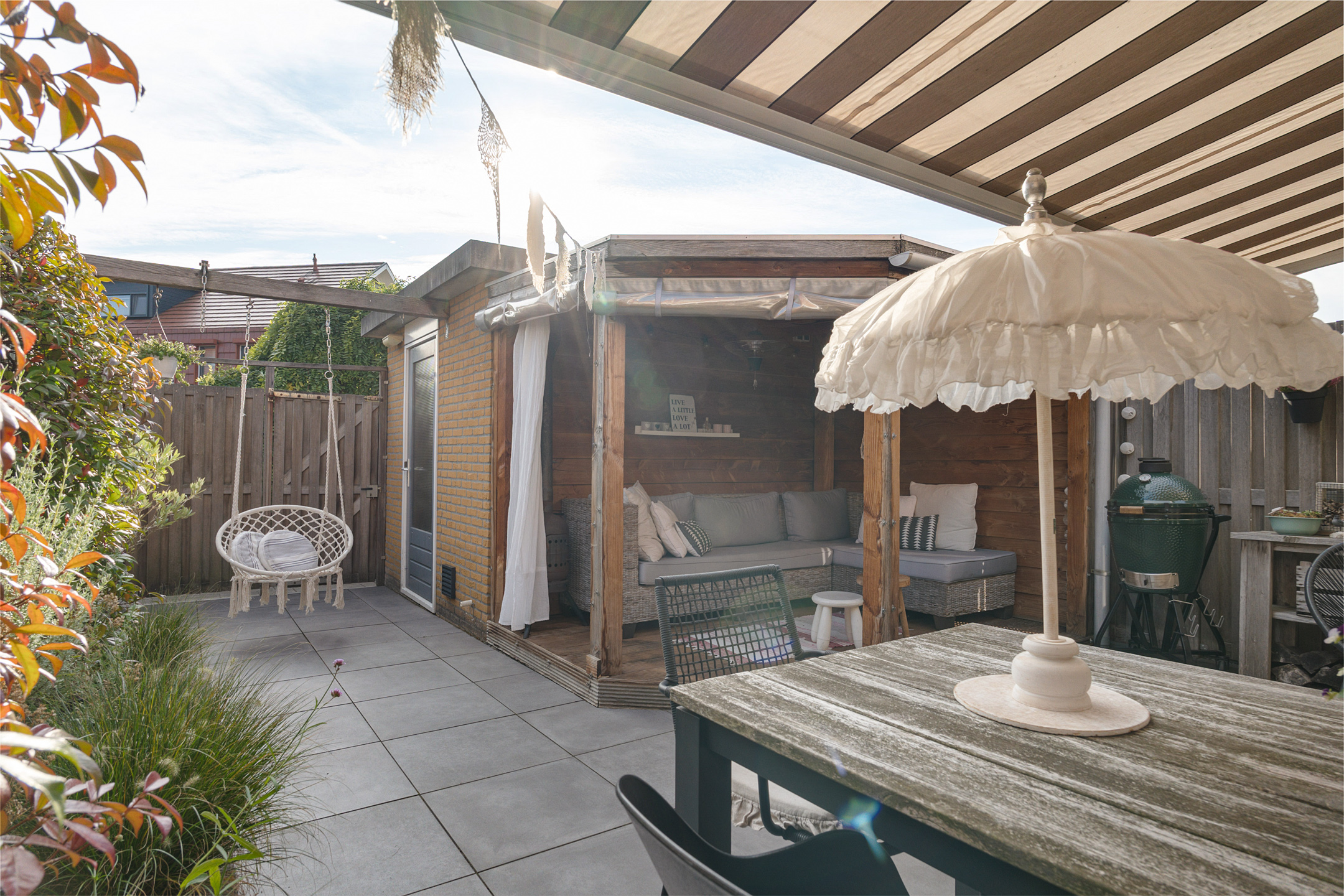 De achtertuin is fraai aangelegd (2021) en voorzien van een elektrisch zonnescherm, een berging met elektra en een gezellige zithoek onder de overkapping. De gunstige ligging op het zuidwesten maakt het een heerlijke plek om de hele dag van de zon te genieten. De tuin beschikt tevens over een achterom.