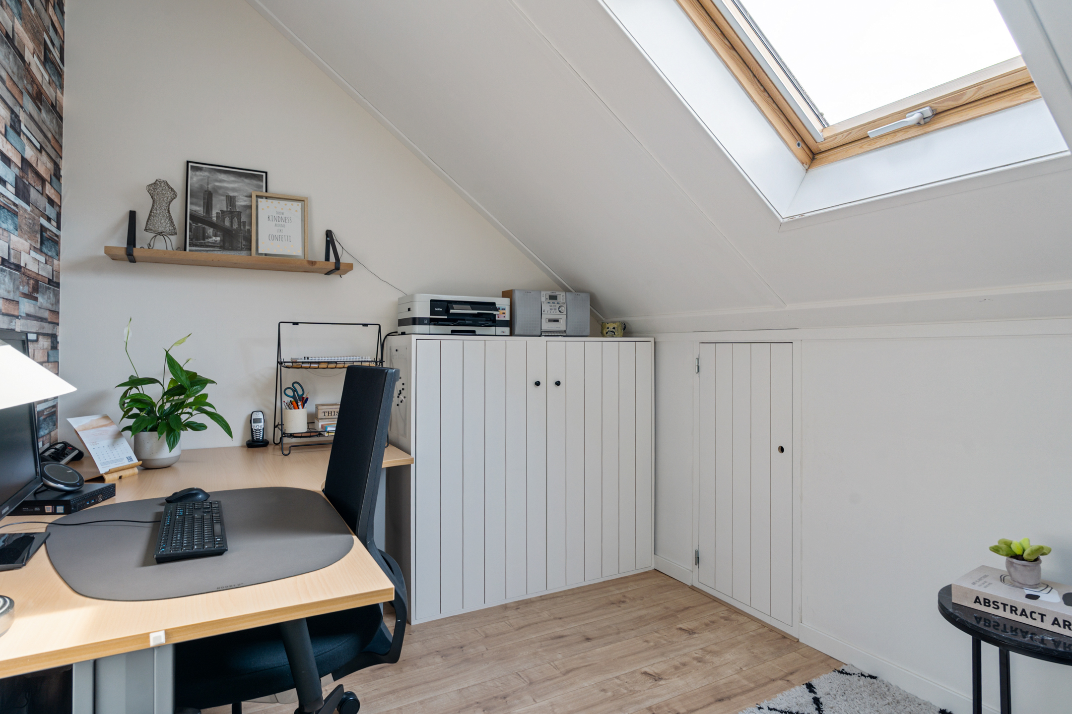 Deze verdieping is ruim en praktisch ingedeel, ideaal voor grote gezinnen of voor wie wonen en werken wil combineren. Bovendien is er veel bergruimte, omdat er een handige en ruime vliering aanwezig is.
