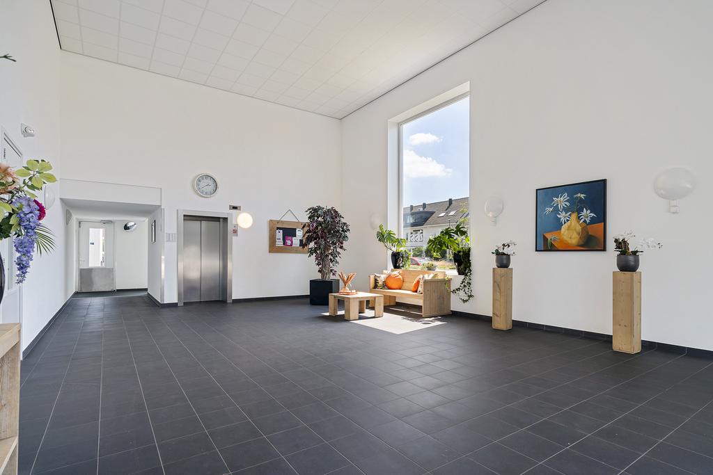 Imposante en verzorgde entree met liftinstallatie, video-intercom en trappenhuis. Toegang tot bergingen in onderbouw. Een eigen inpandige (fietsen-)berging in de onderbouw.