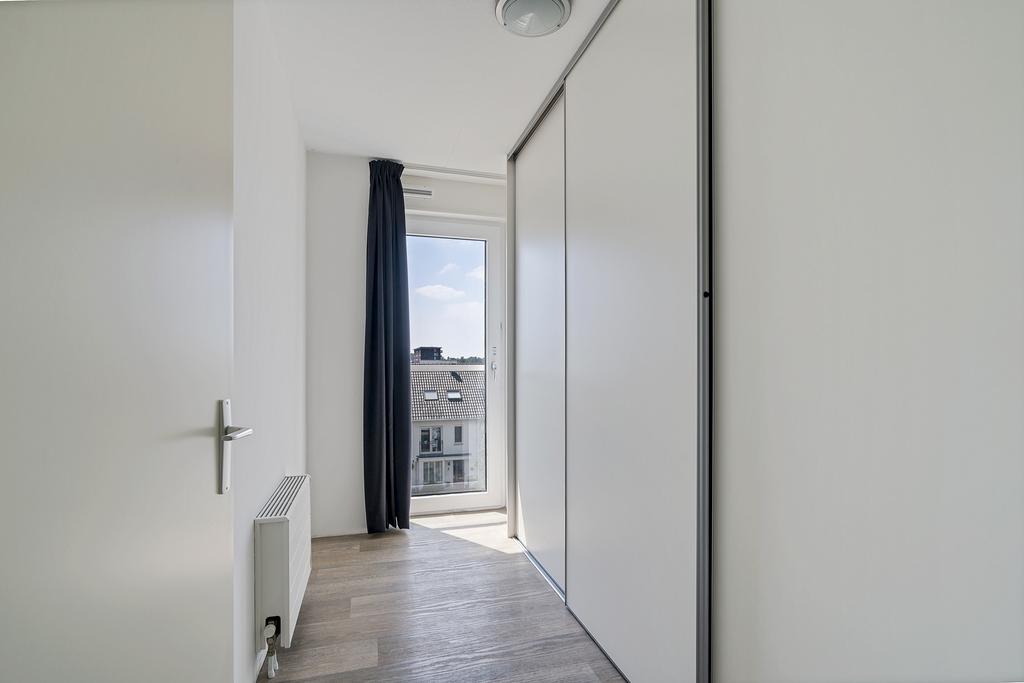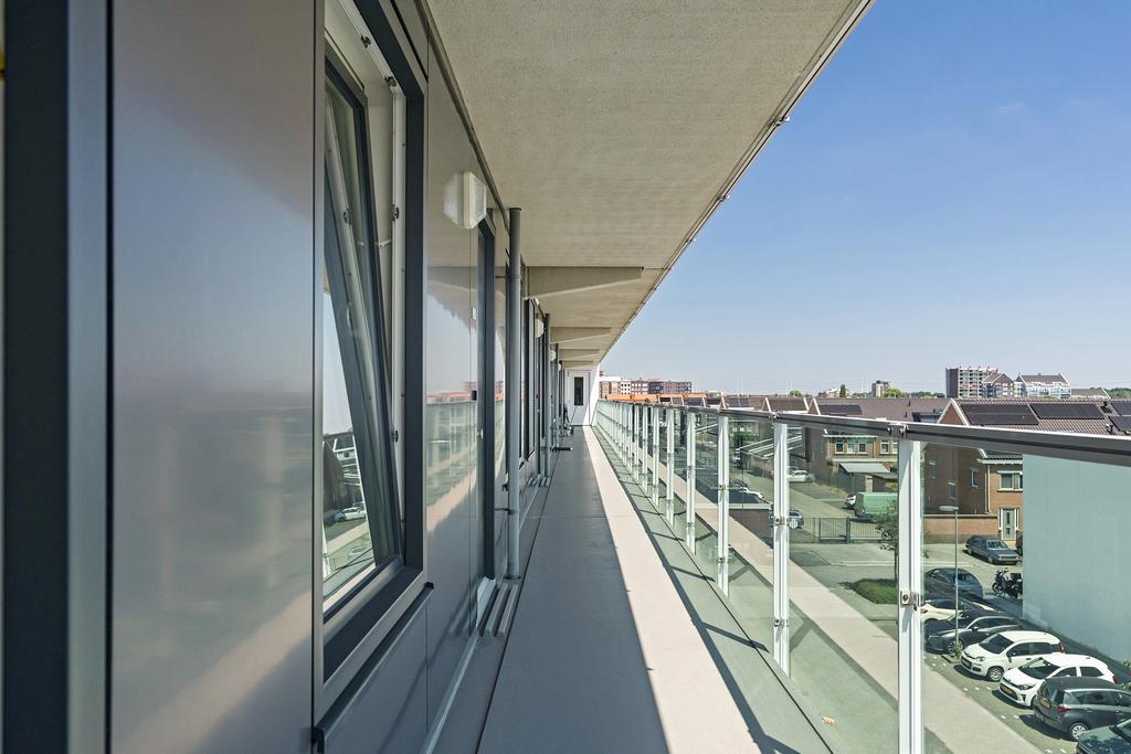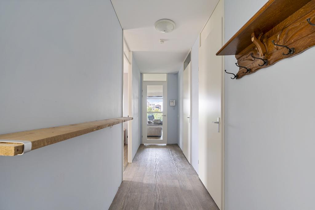 Entree aan galerij. Hal met separaat toilet, moderne meterkast inclusief glasvezel. Toegang tot ruime en lichte woonkamer met open keuken. De open keuken is voorzien van diverse inbouwapparatuur. Toegang tot balkon via de aluminium schuifpui. Ruime slaapkamer 1 aan de zijkant. Slaapkamer 2 aan de zijkant met vaste schuifkastenwand voor extra berging. Inpandige badkamer voorzien van basis inrichting, te weten een inloopdouche en wastafel. Stook- en wasruimte voorzien van opstelplaats CV-combiketel, mechanische ventilatiebox en wasmachineaansluiting. Ruim en zonnig gepositioneerd balkon met groen uitzicht over het Heempark.