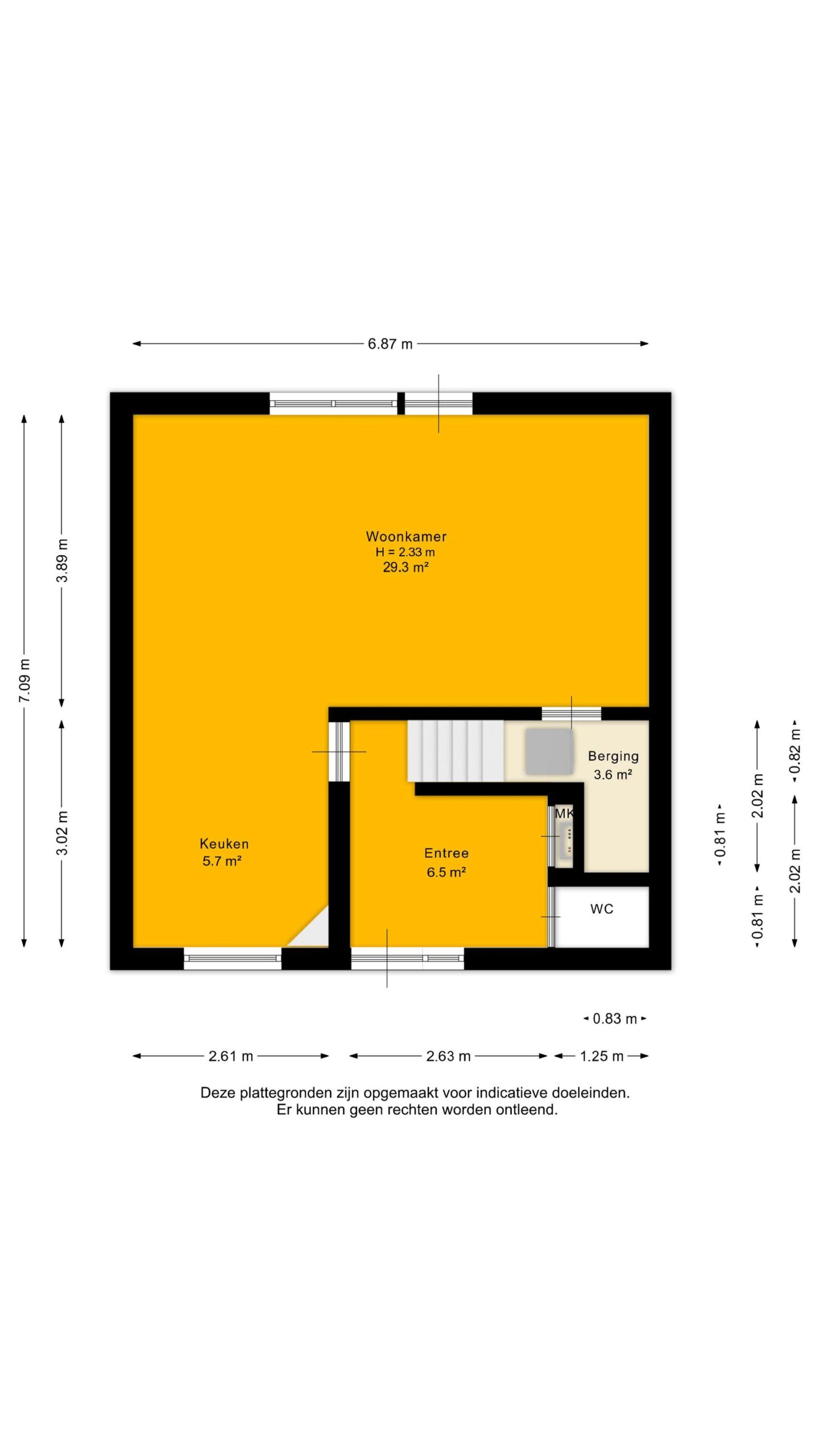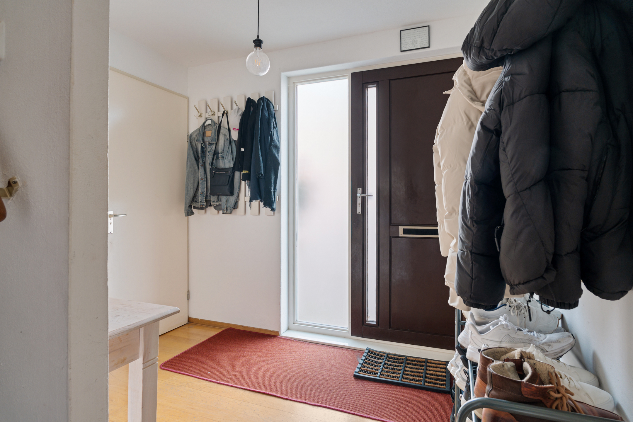 Via de entree stap je de hal binnen. Hier bevinden zich de meterkast, de toiletruimte en de trapopgang naar de verdieping.