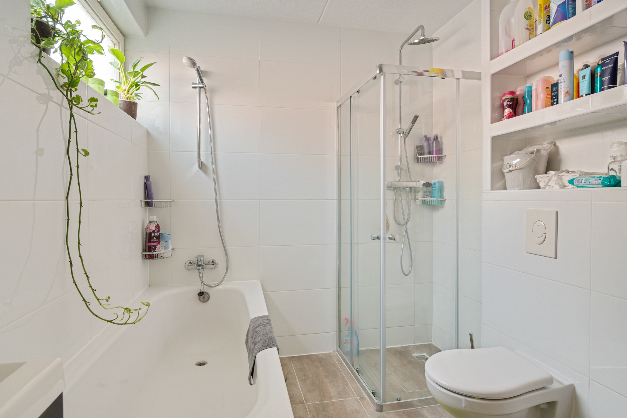 Overloop met toegang tot de slaapkamers en de badkamer, evenals de trapopgang naar de zolderverdieping. Aan de achterzijde liggen twee slaapkamers en aan de voorzijde bevindt zich nog een derde slaapkamer. De badkamer is volledig betegeld en voorzien van een douche, ligbad, wastafel en toilet.