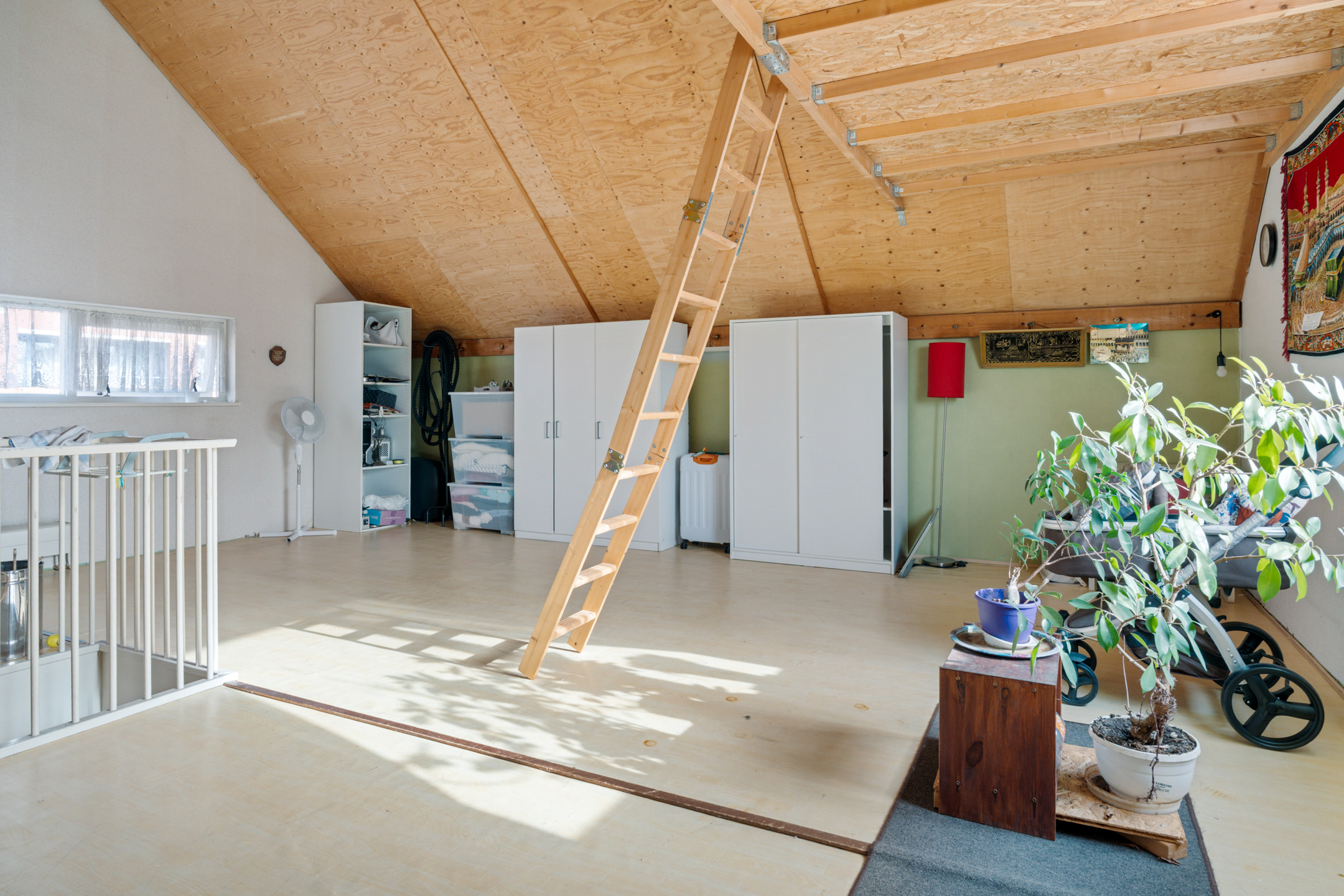 De open zolderverdieping beschikt over raampartijen aan zowel de voor- als achterzijde, waardoor er veel daglicht binnenkomt. Op deze verdieping bevinden zich ook de opstelplaats van de cv-combiketel en de aansluiting voor de wasmachine. Daarnaast is er een praktische vliering aanwezig.