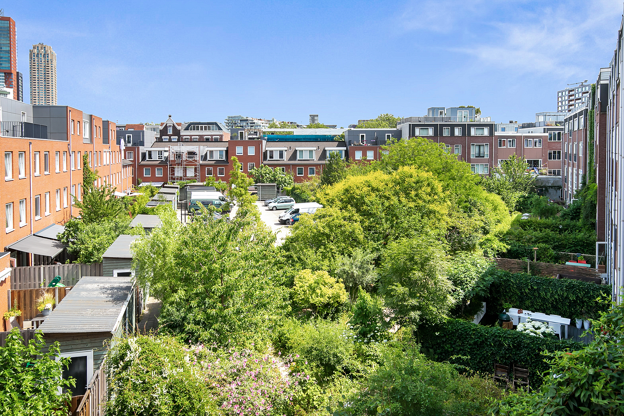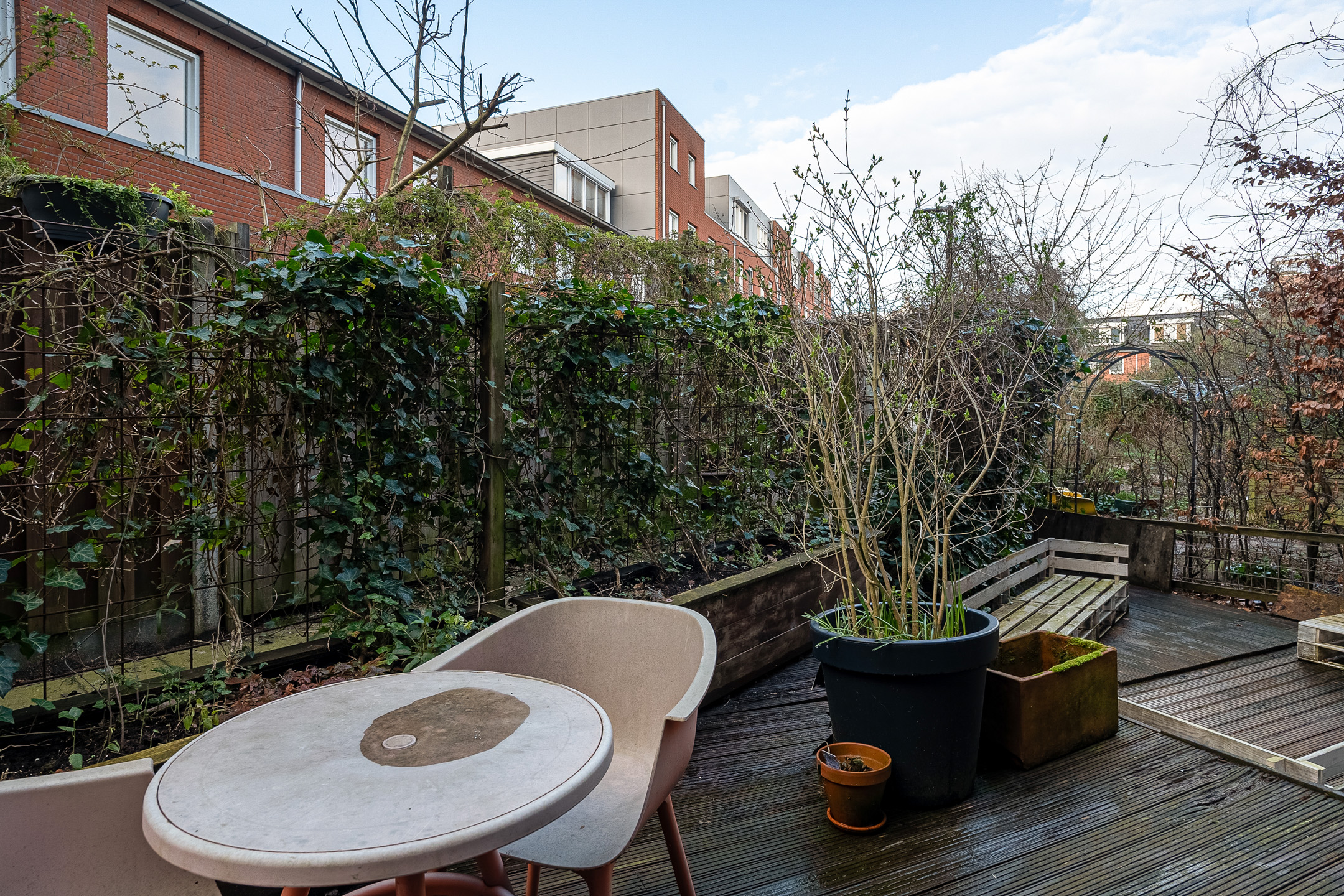 In de winter zie je het water van de Nieuwe Maas en in de zomer kleurt de wijk groen door de bomenkruinen. Hier vind je de hele dag zon én schaduw.