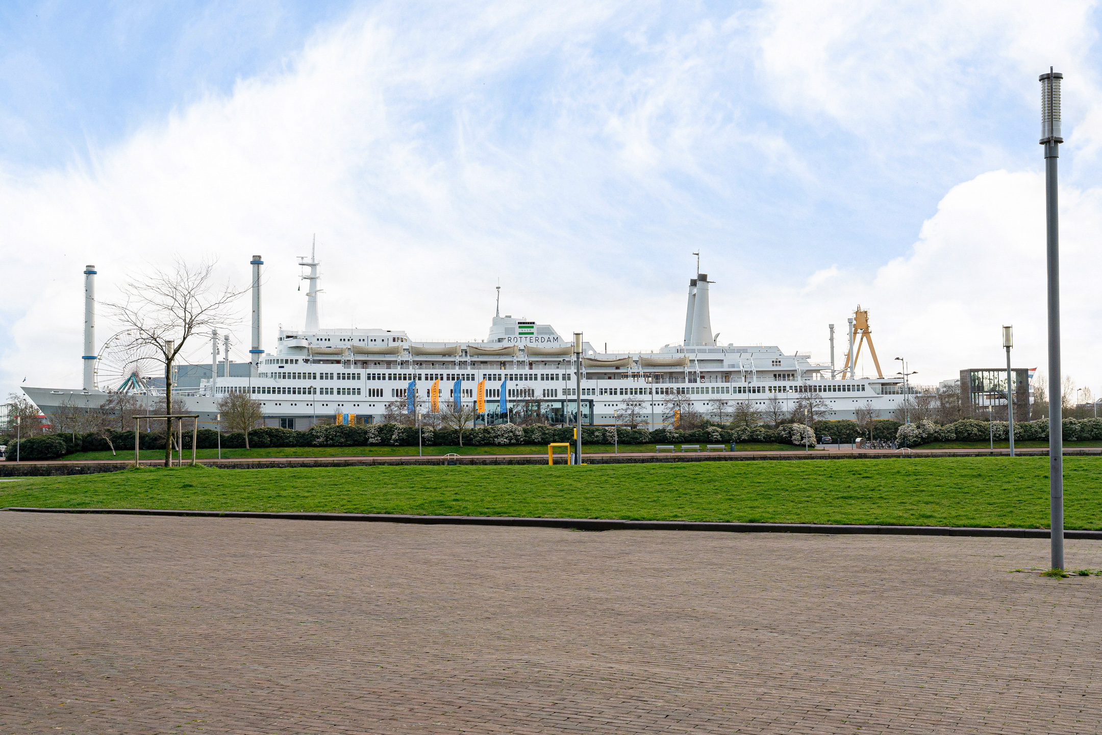 Via de trap in de dakopbouw stap je op het riante dakterras met een fenomenaal uitzicht op de wolkenkrabbers van de Wilhelminapier en de skyline van de stad. Links zie je de Euromast, in het oosten is nog net de Van Brienenoordbrug zichtbaar en aan de achterzijde kijk je uit op de SS Rotterdam.