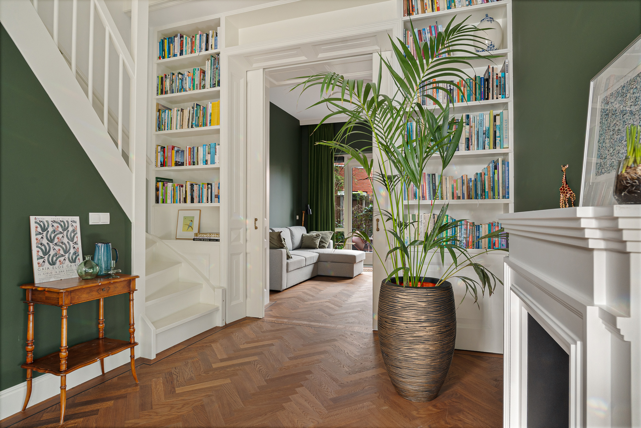 + Woonkamer en suite met schuifdeuren en in situ boekenkasten