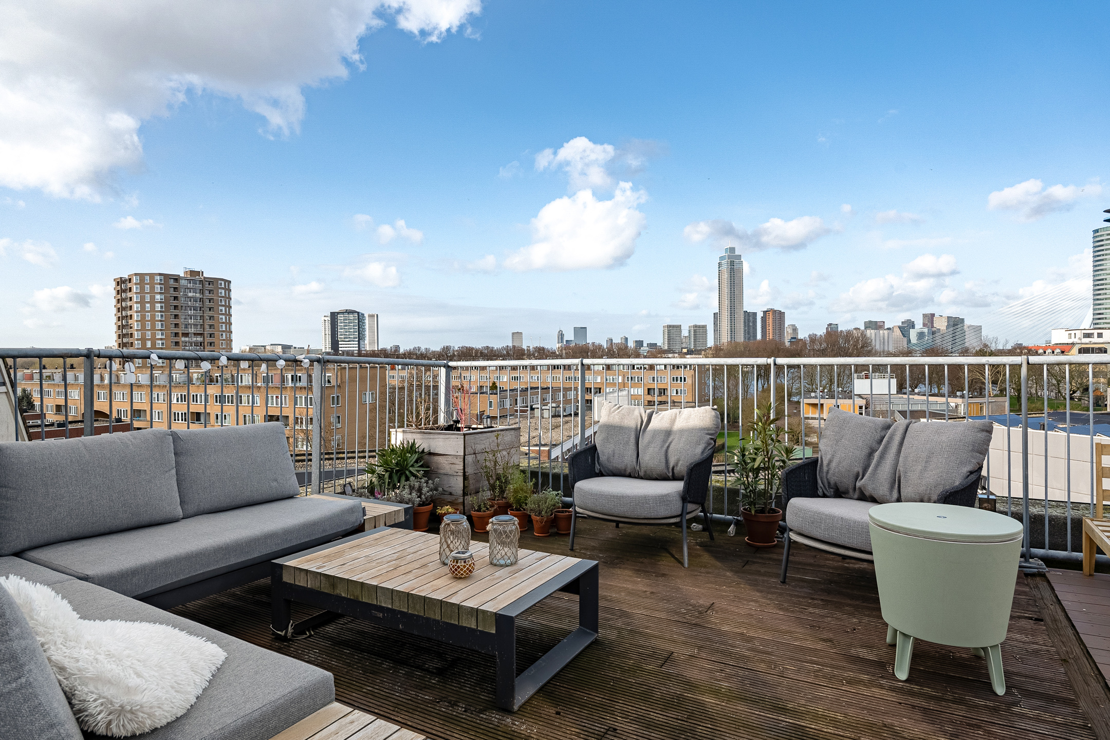 + Riant dakterras met spectaculair uitzicht over de skyline van Rotterdam