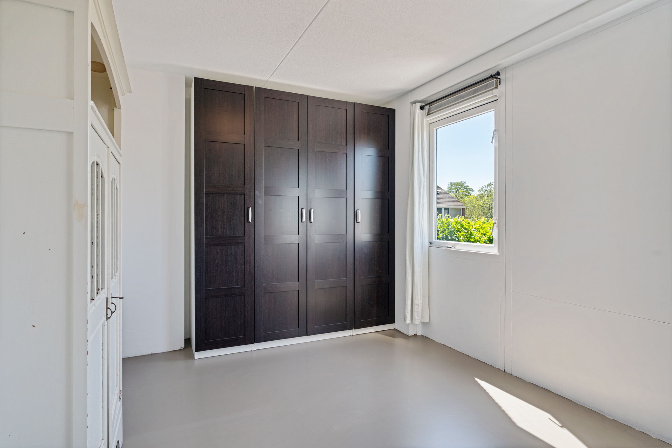 De ruime master bedroom bevindt zich aan de achterzijde en biedt toegang tot de patio. Direct naast deze kamer is de ruime voormalige badkamer met bestaande aansluitingen zodat hij weer gemakkelijk in gebruik te nemen is en je volledig gelijkvloers kunt wonen. Verder is er een inpandige berging met plek voor de wasmachine en de technische installaties.