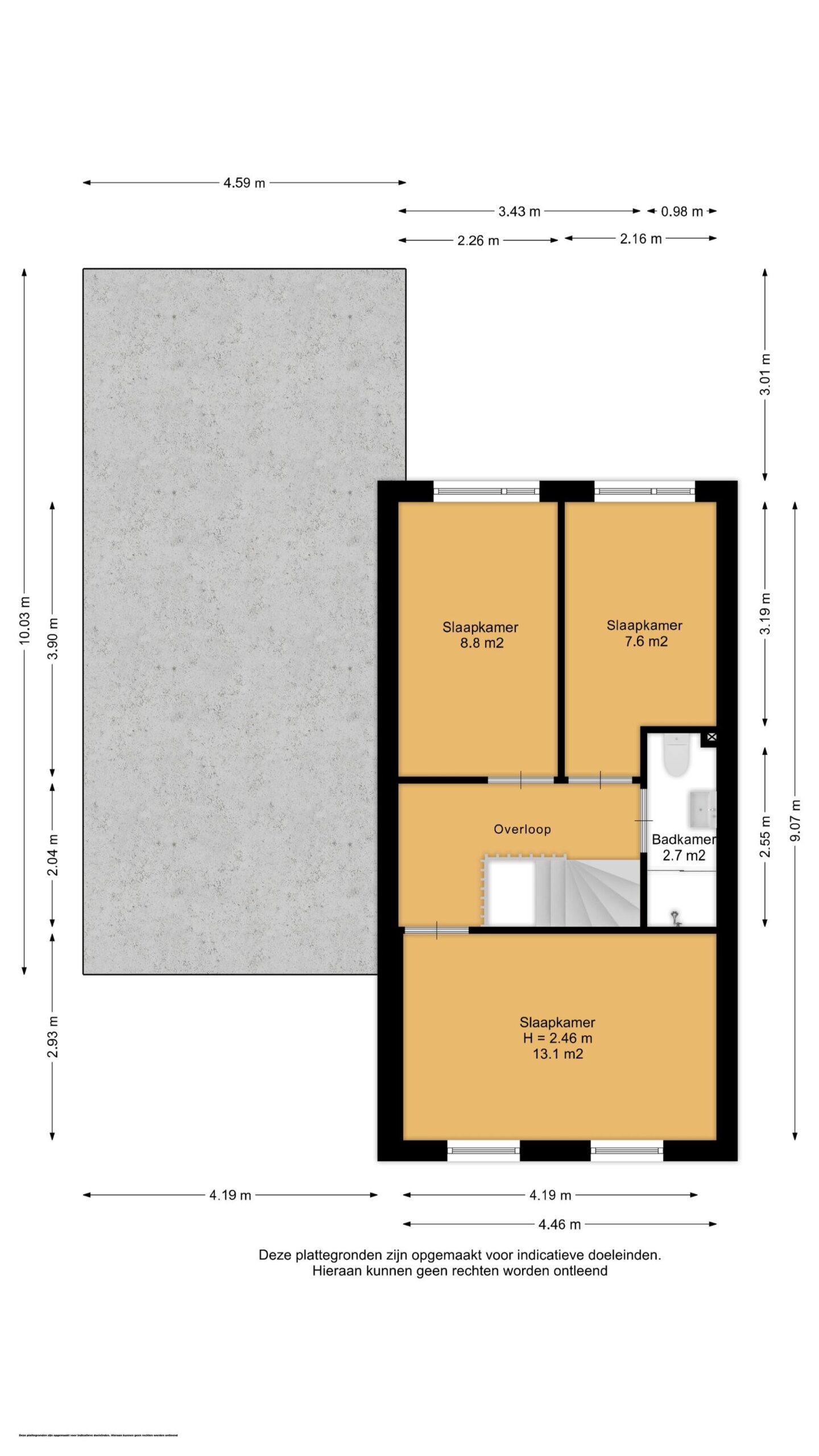 Deze verdieping is voorzien van 3 slaapkamers: één ruime aan de voorzijde en nog 2 aan de achterzijde. In het midden van deze verdieping is vanaf de ruime overloop de praktisch ingedeelde badkamer te vinden met toilet, wastafelmeubel en inloopdouche.