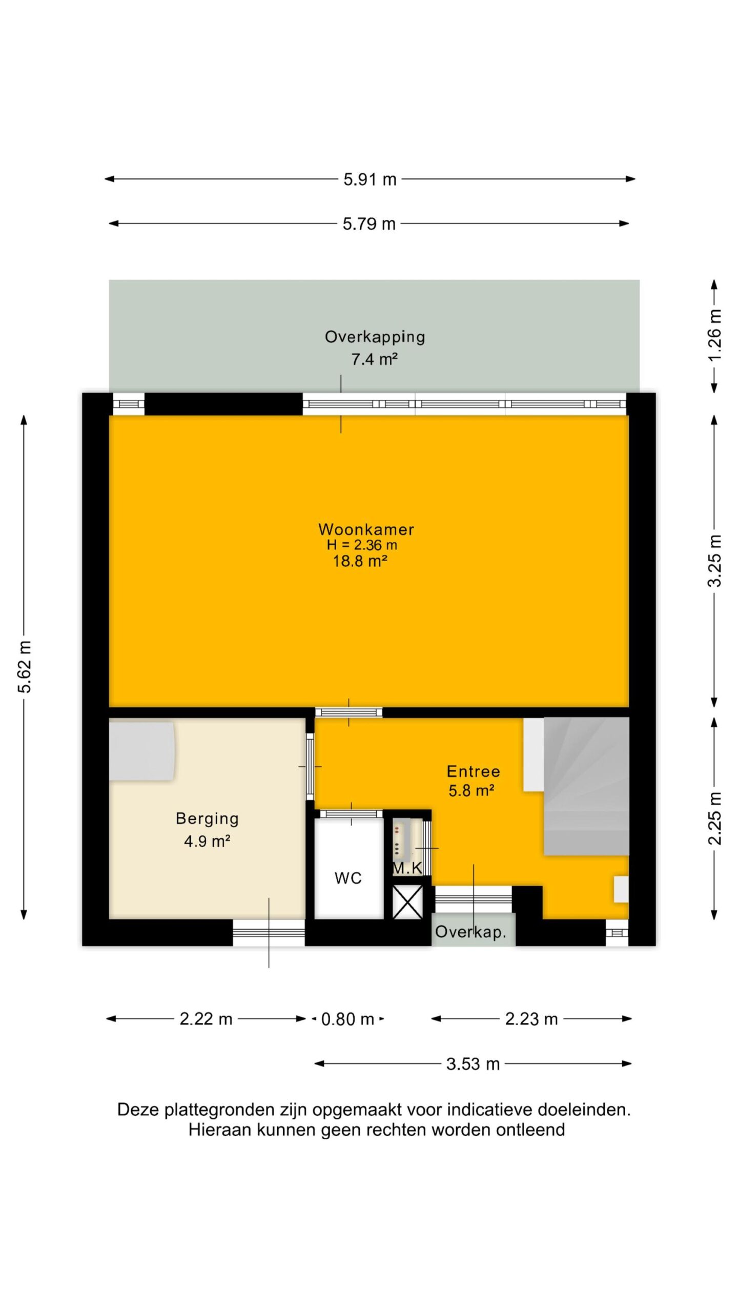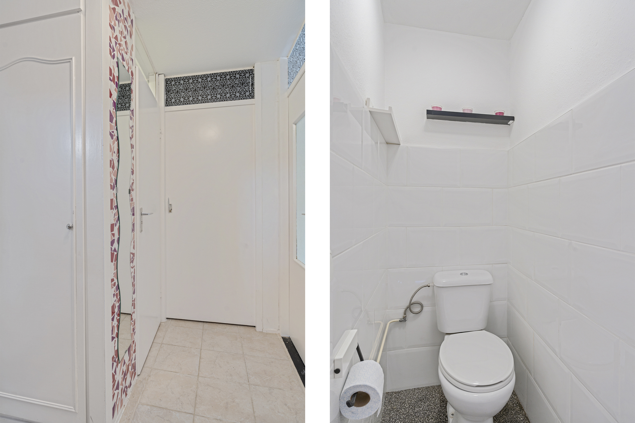 Via de overdekte entree kom je binnen in de hal met meterkast, trapopgang en toiletruimte. Tevens vind je hier de inpandige berging.