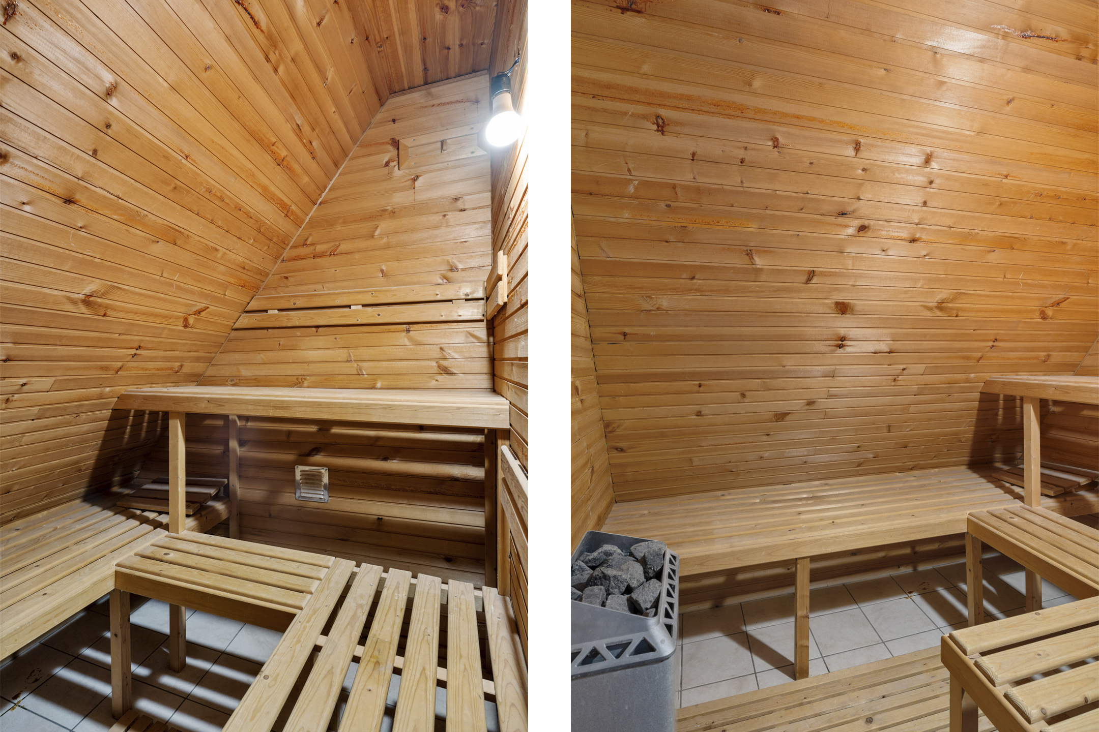 Aan de achterzijde ligt de badkamer, voorzien van ligbad met douche, toilet, wastafelmeubel en gevelraam voor natuurlijke ventilatie en daglicht. Er is tevens een sauna aanwezig die momenteel niet functioneert, maar desgewenst kan worden hersteld. Daarnaast leent de ruimte zich uitstekend om te worden omgezet naar bijvoorbeeld een berghok.
