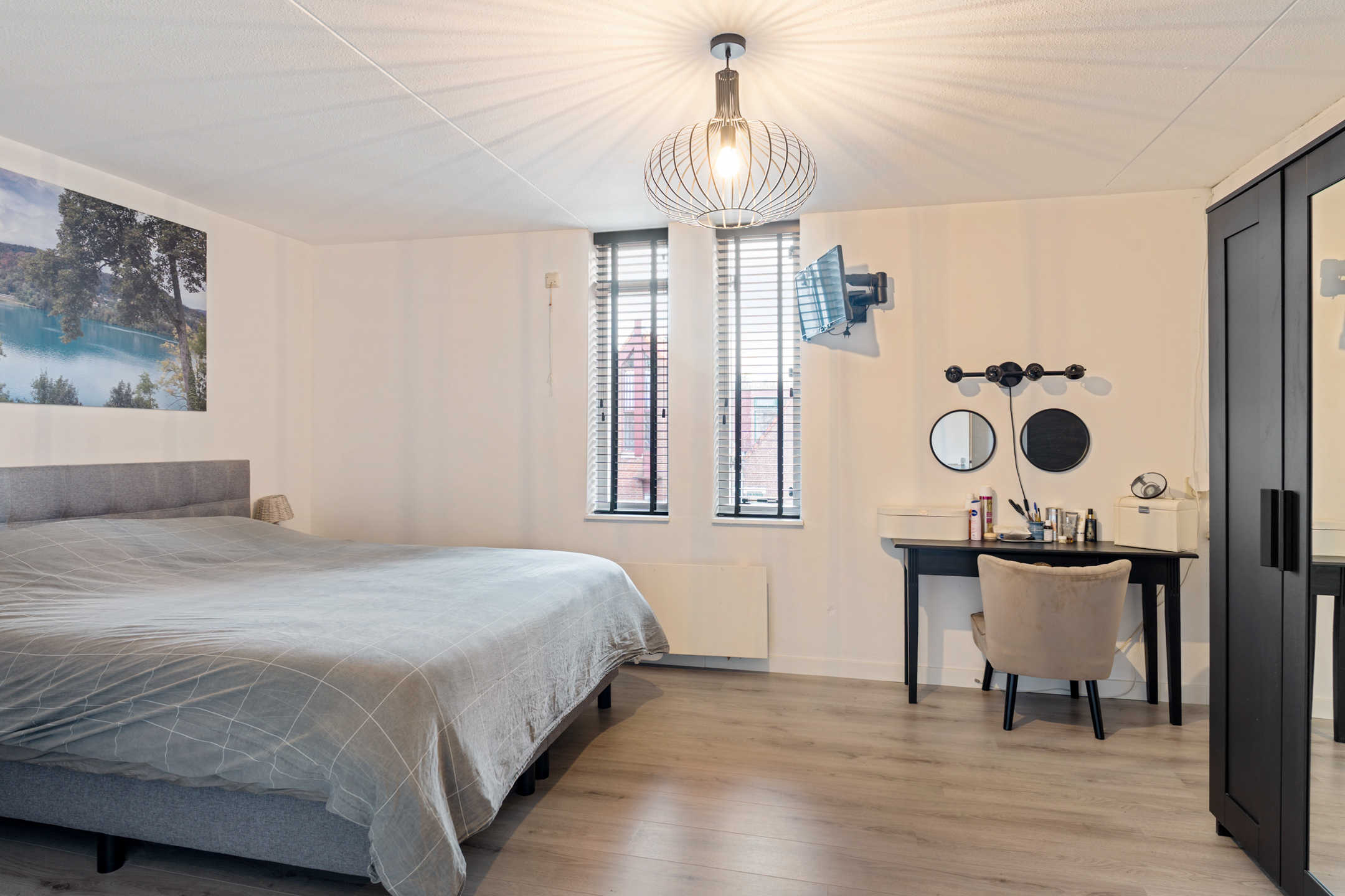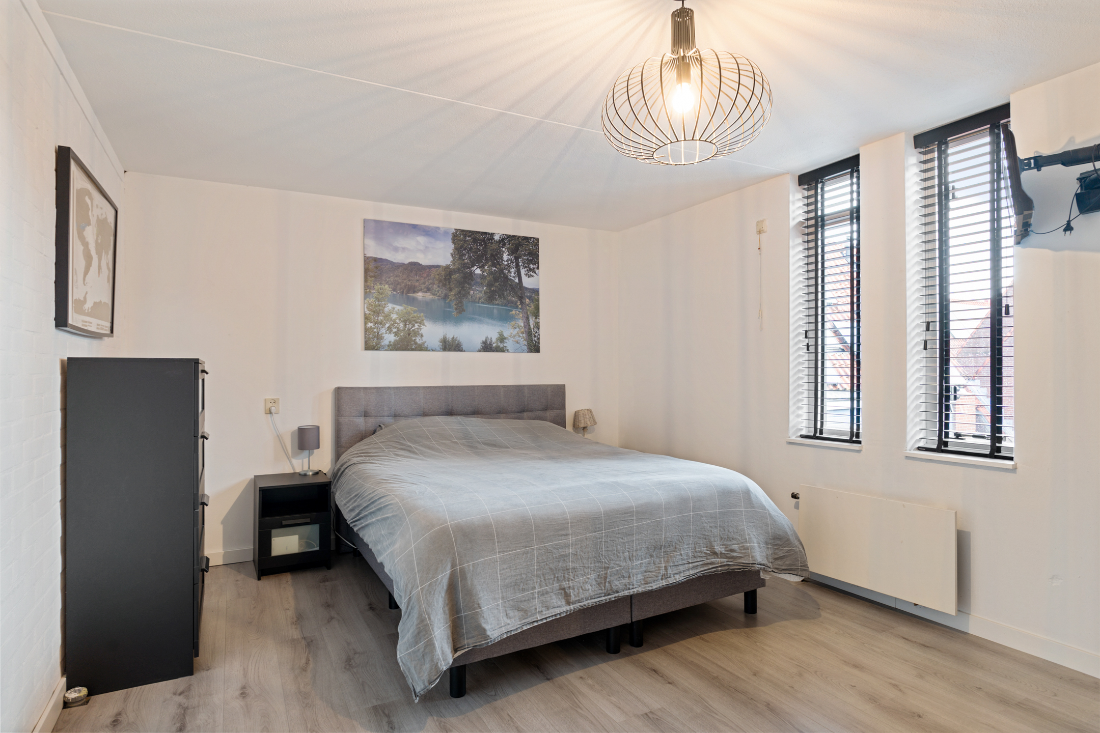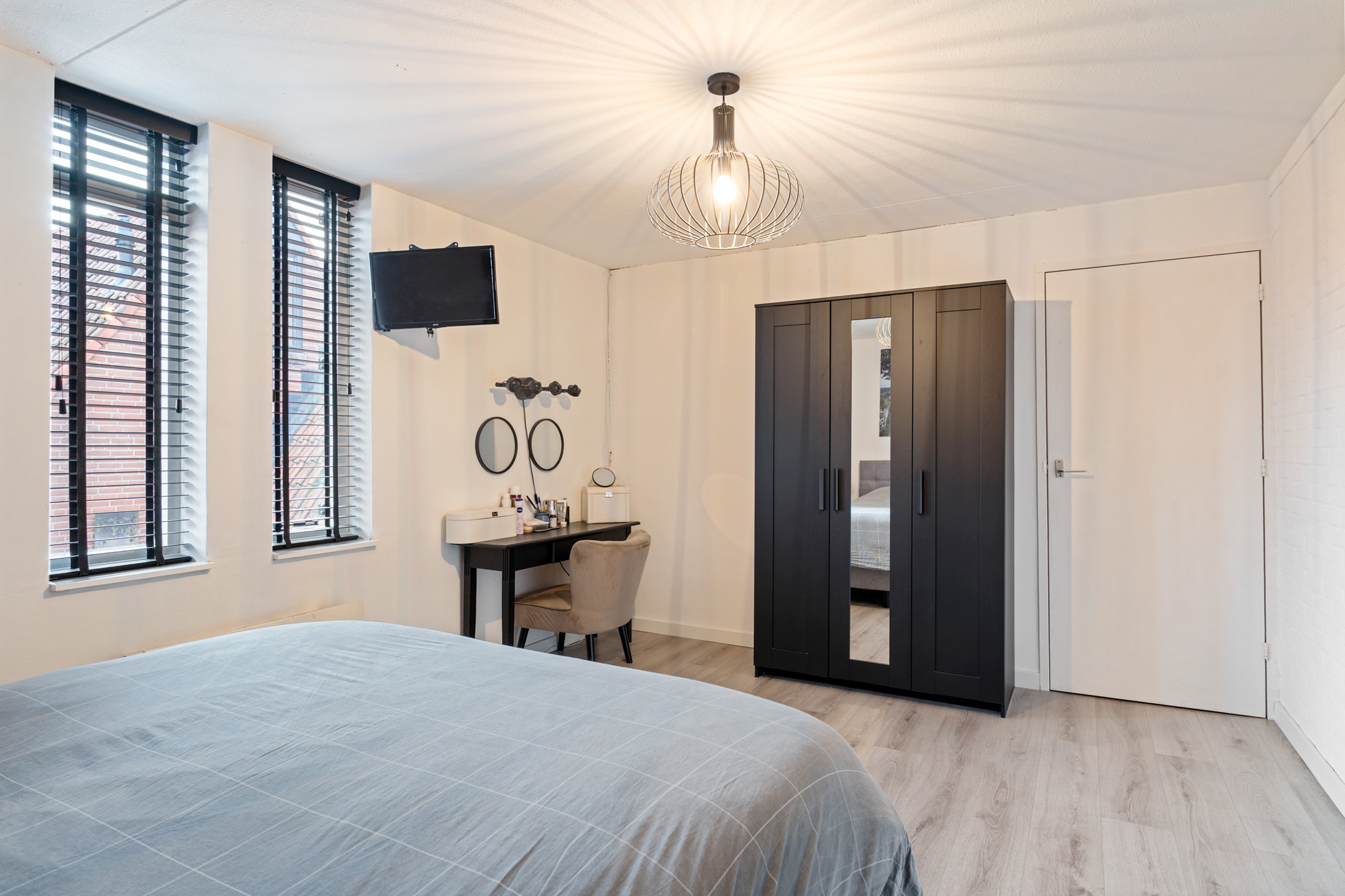 Aan de voorzijde bevindt zich een ruime slaapkamer met bergmogelijkheden.