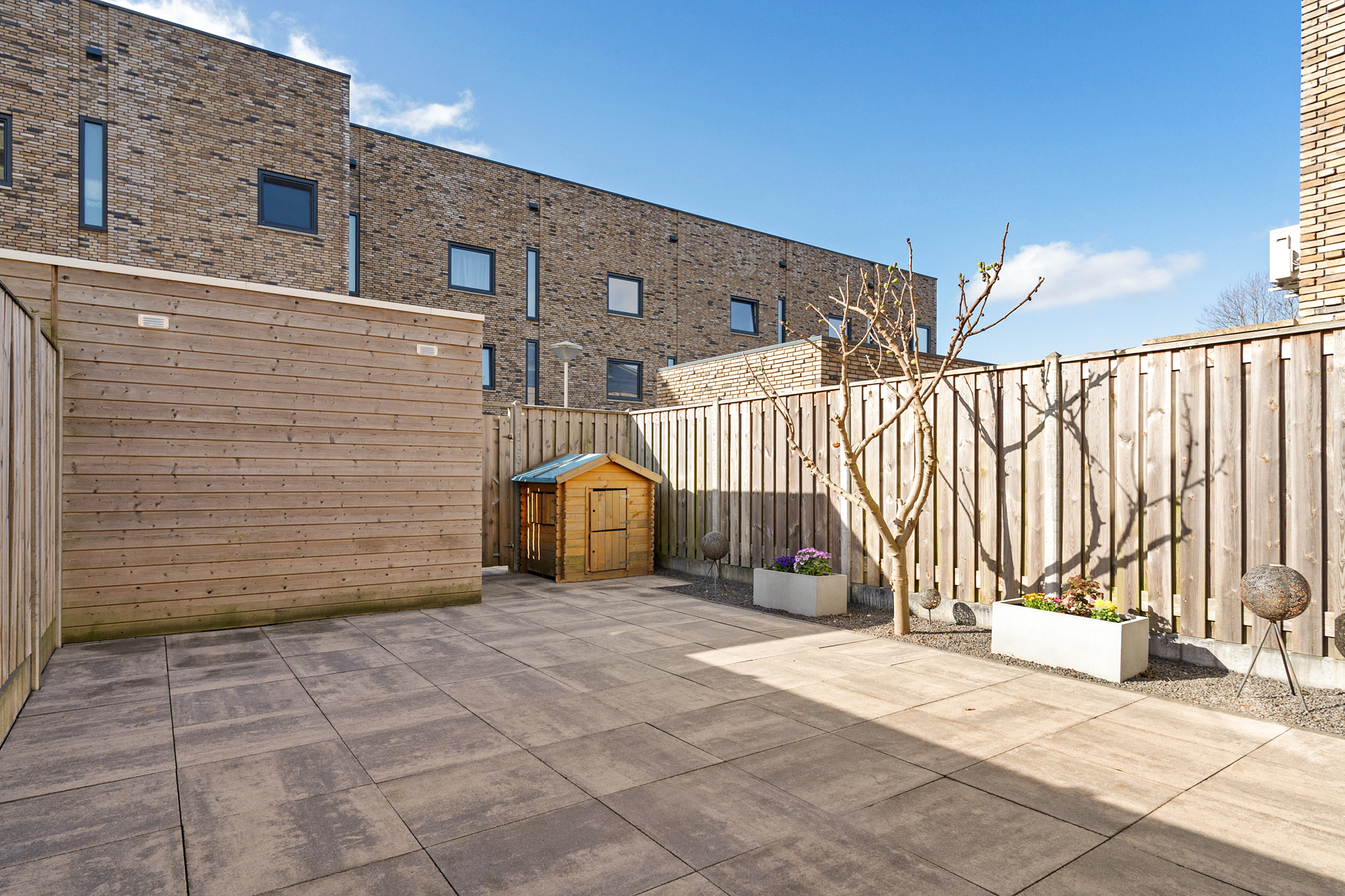 De tuin is ca. 55 m², grotendeels betegeld en voorzien van borders voor beplanting. Dankzij de houten berging en achterom is ook het praktische aspect goed geregeld.?