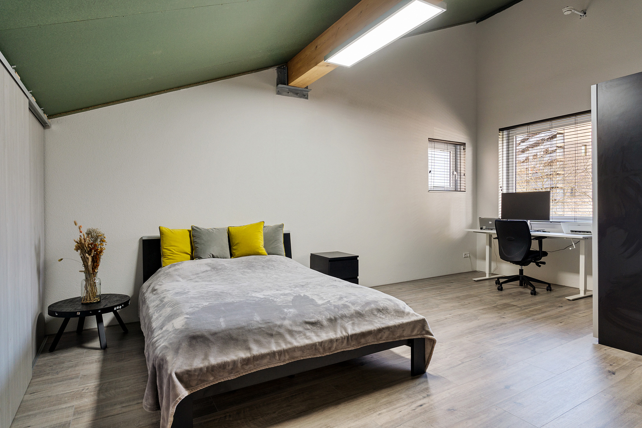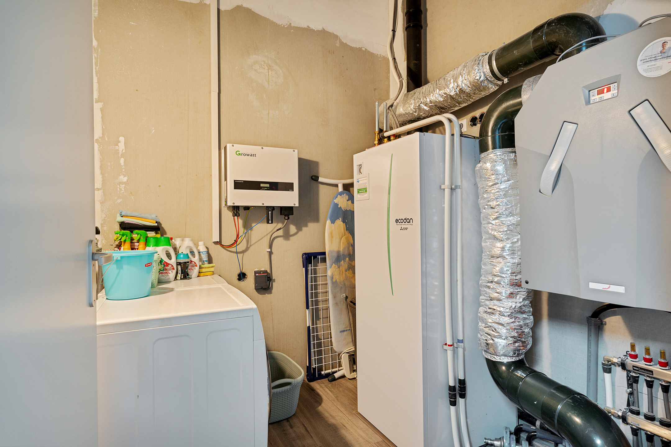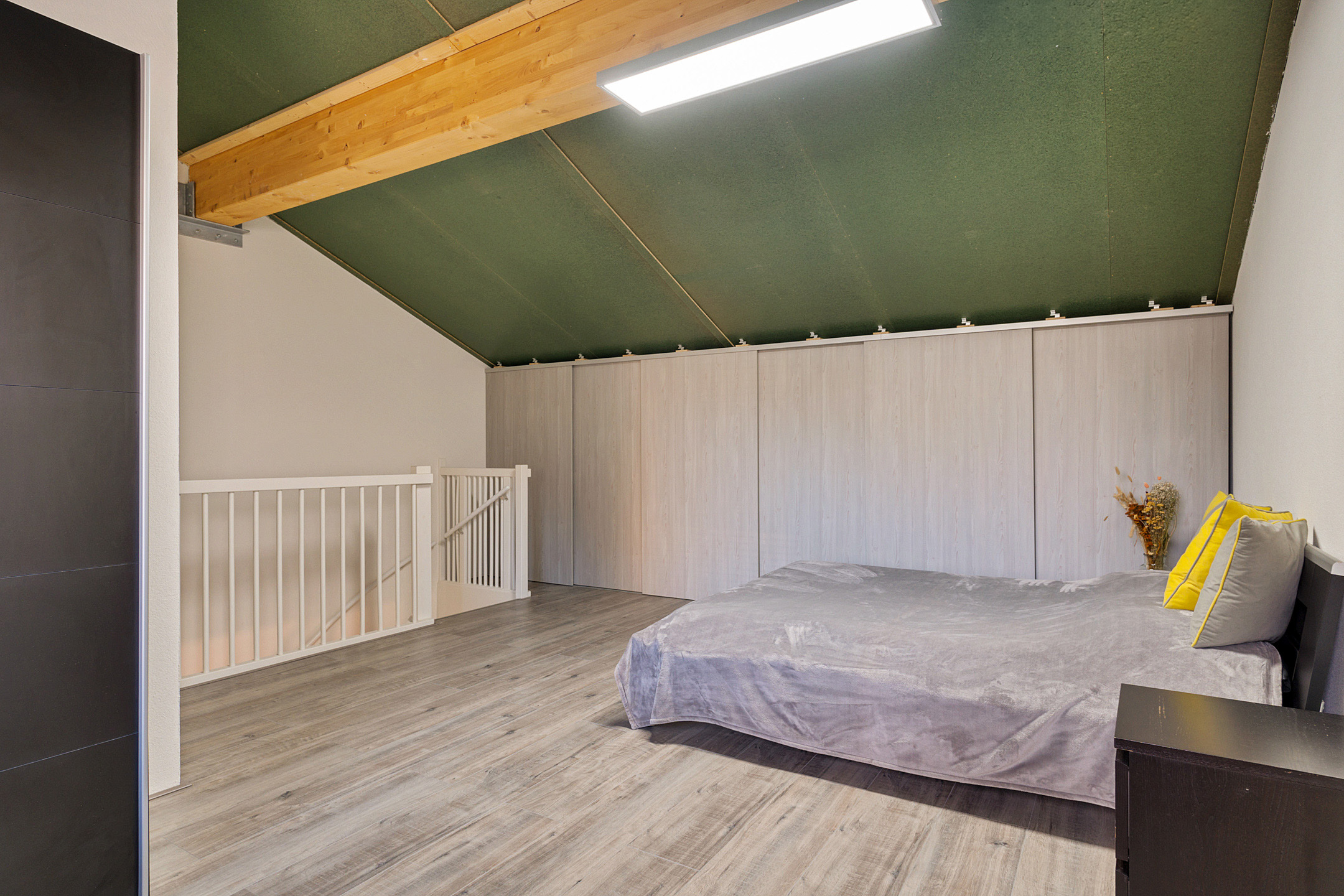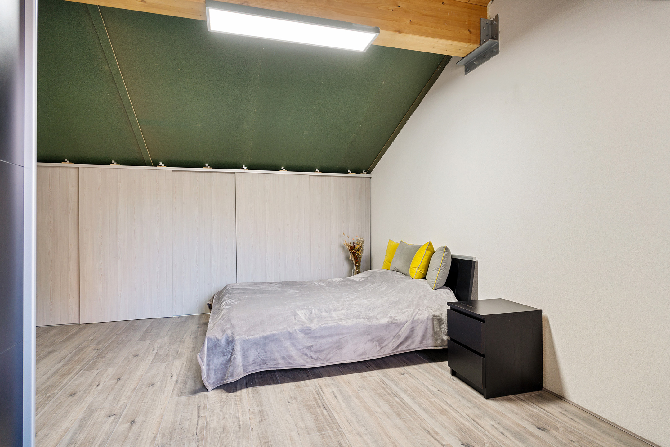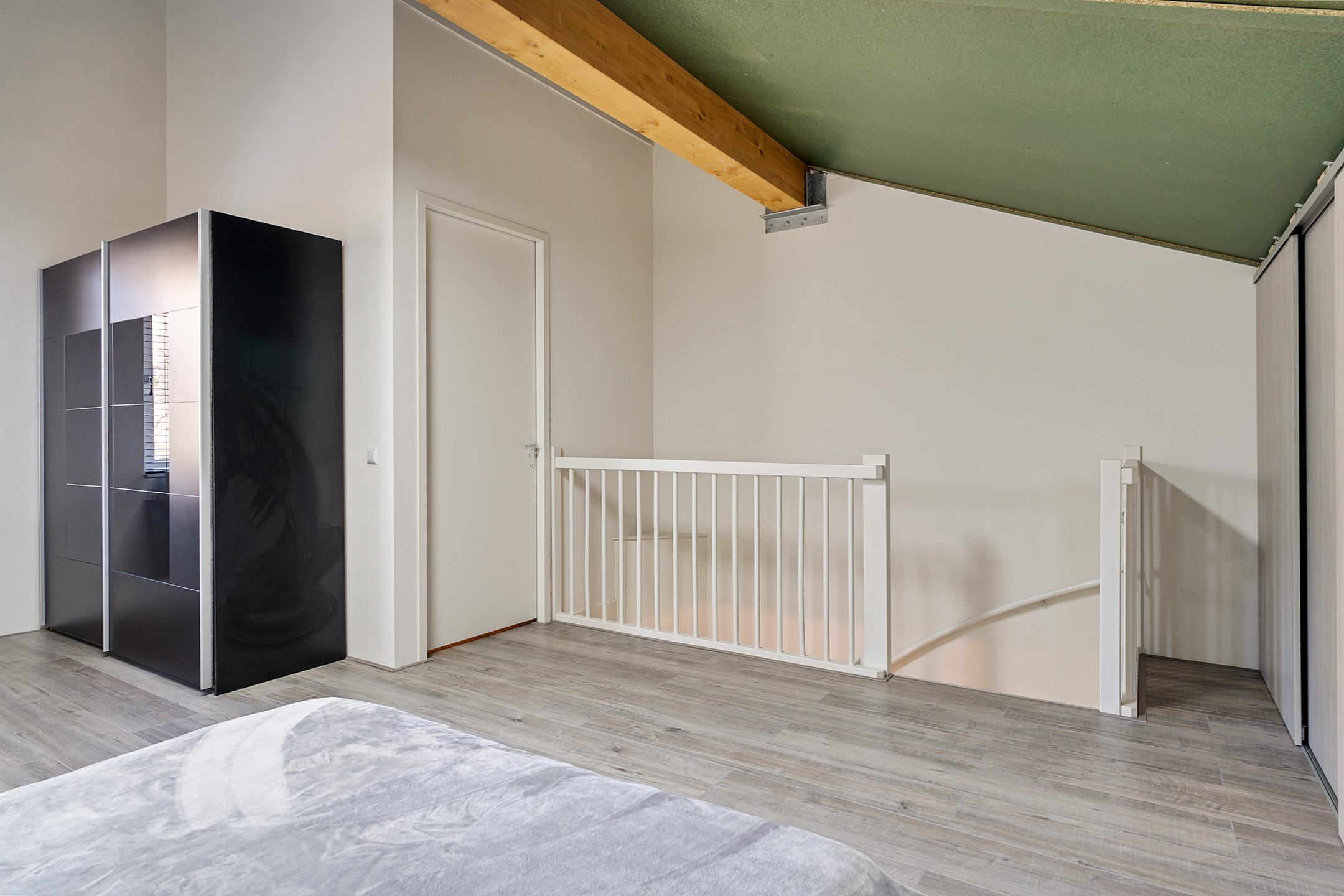 De zolderverdieping biedt verrassend veel ruimte en mogelijkheden. Dankzij de rechte gevels is dit een volwaardige verdieping, ideaal voor een extra slaapkamer, hobbyruimte of atelier. Op deze verdieping bevindt zich tevens de technische ruimte met de opstelling van de warmtepomp (eigendom), wtw, wasmachineaansluiting en de omvormer van de zonnepanelen.