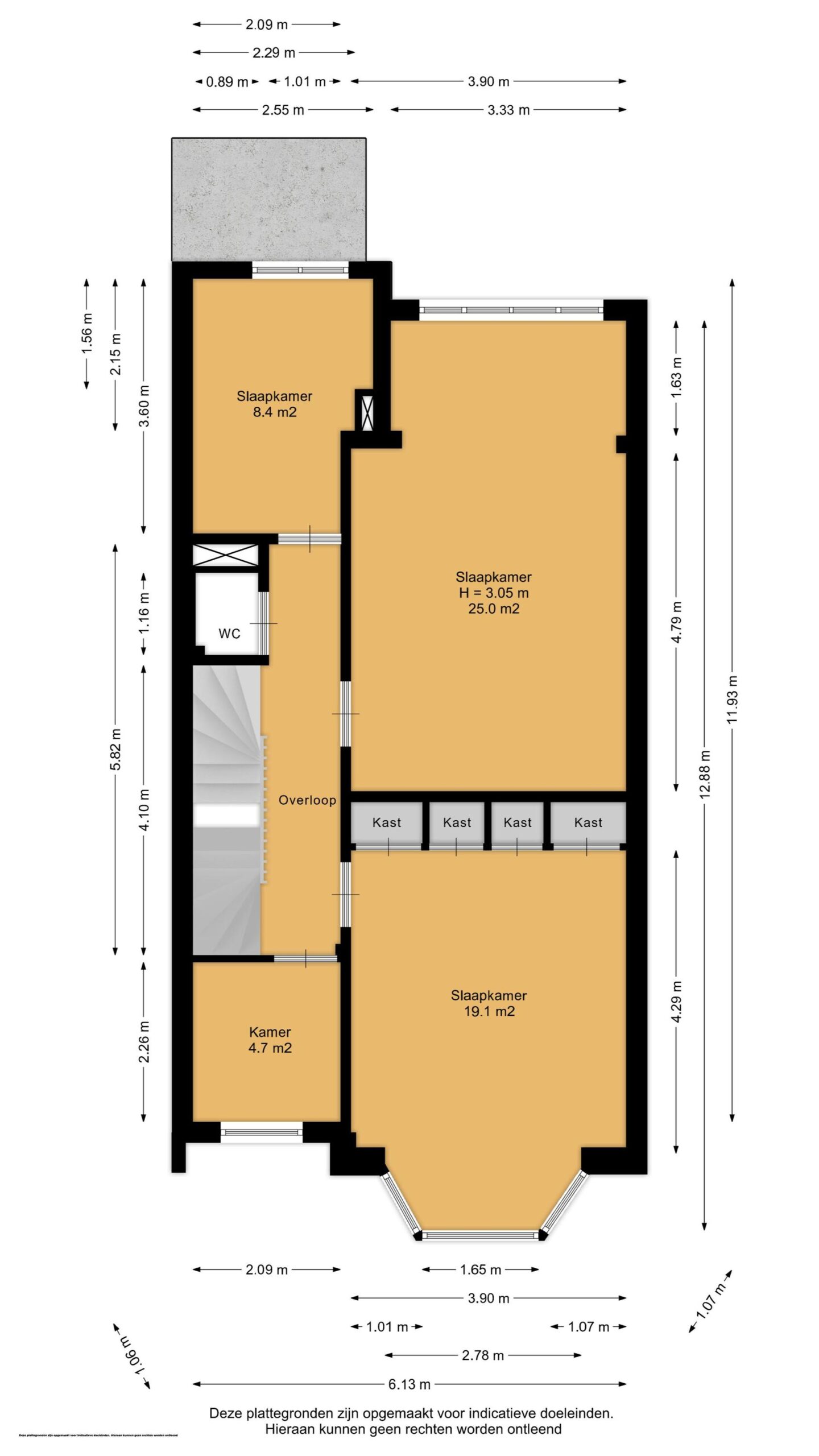 Hier vind je vier slaapkamers en een tweede toilet. De voorzijde biedt een kamertje die zich goed leent als werkkamer en daarnaast een lichte slaapkamer met erker, originele parketvloer en ingebouwde kasten over de volle breedte. Aan de achterzijde liggen een ruime slaapkamer met originele parketvloer en plafondlijsten en een kleinere kamer die prima geschikt is als logeer- of hobbykamer.