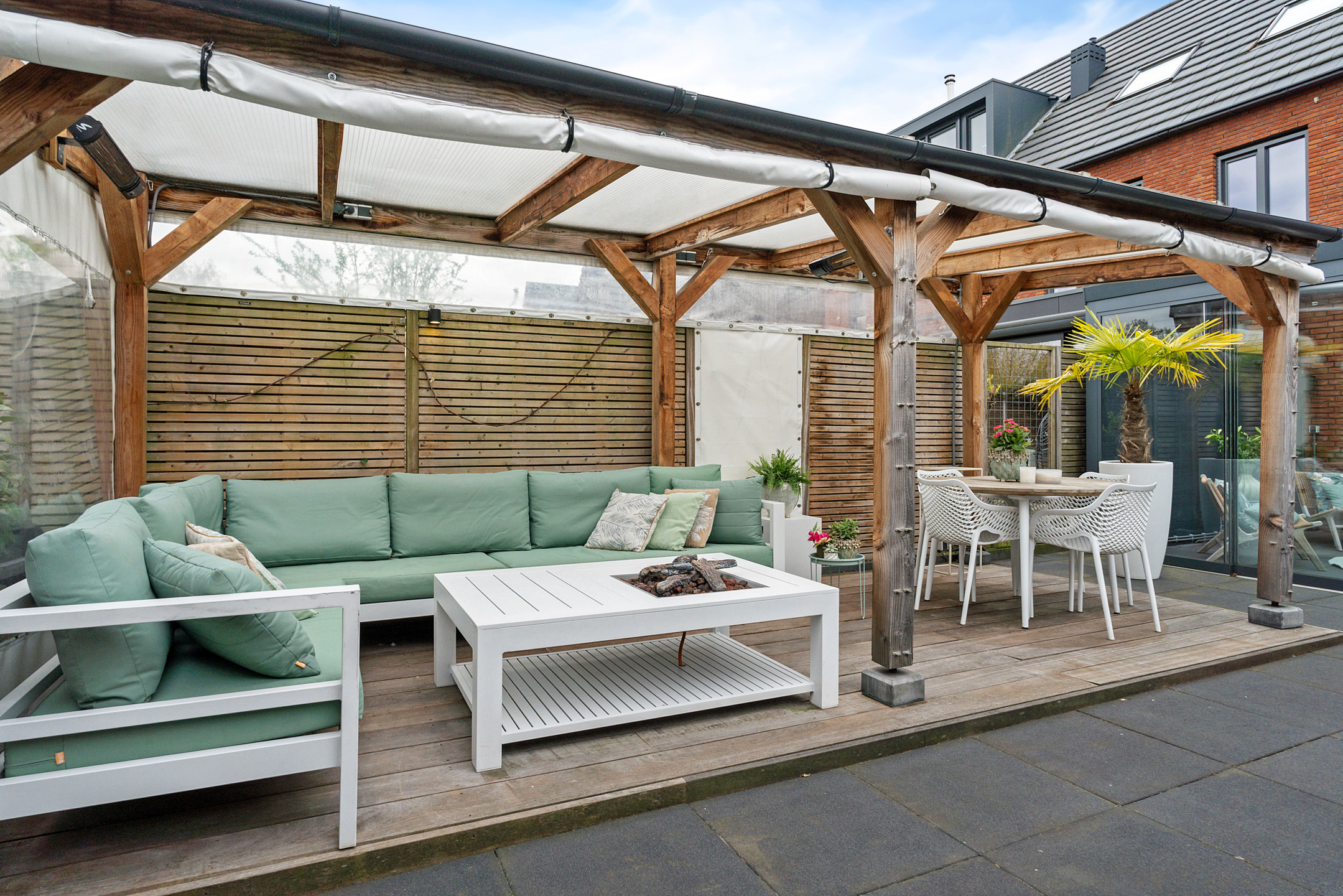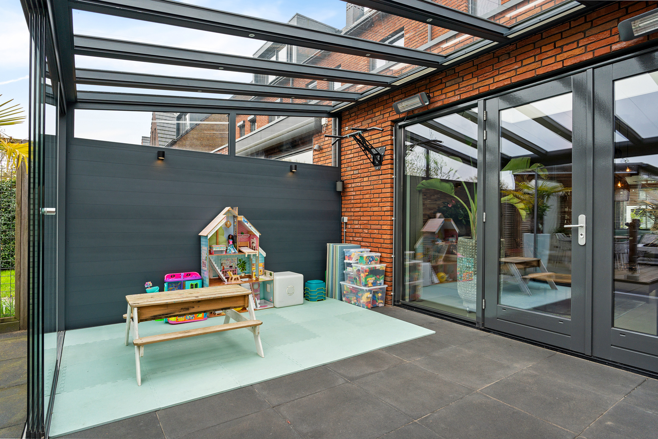 + Aangebouwde tuinkamer met openslaande glazen panelen en heaters