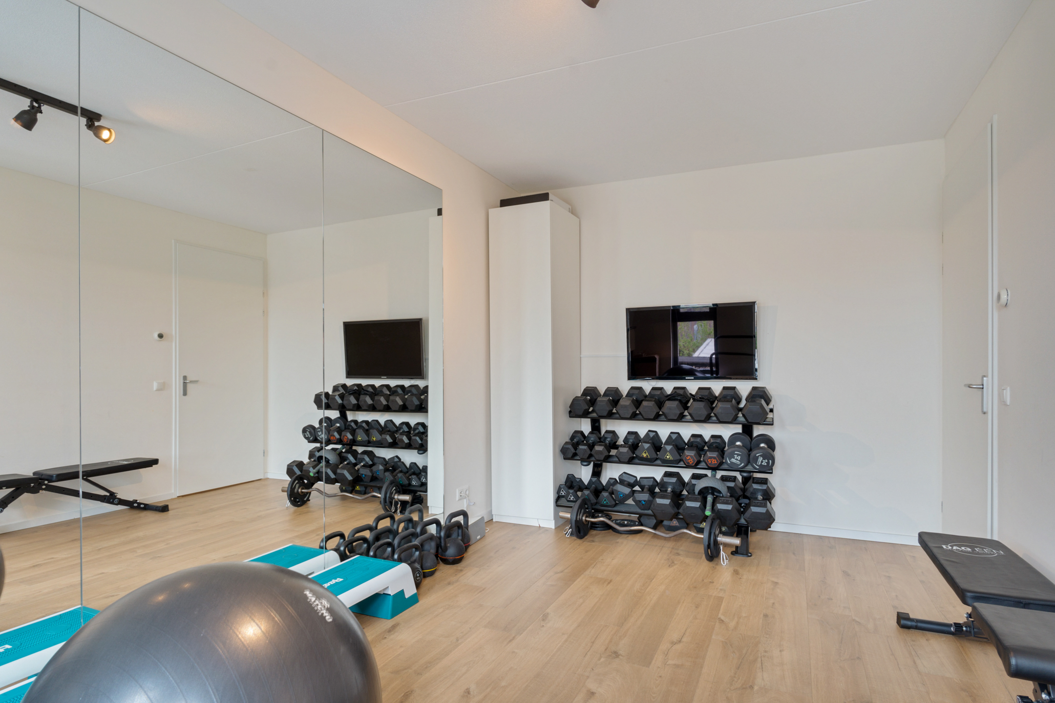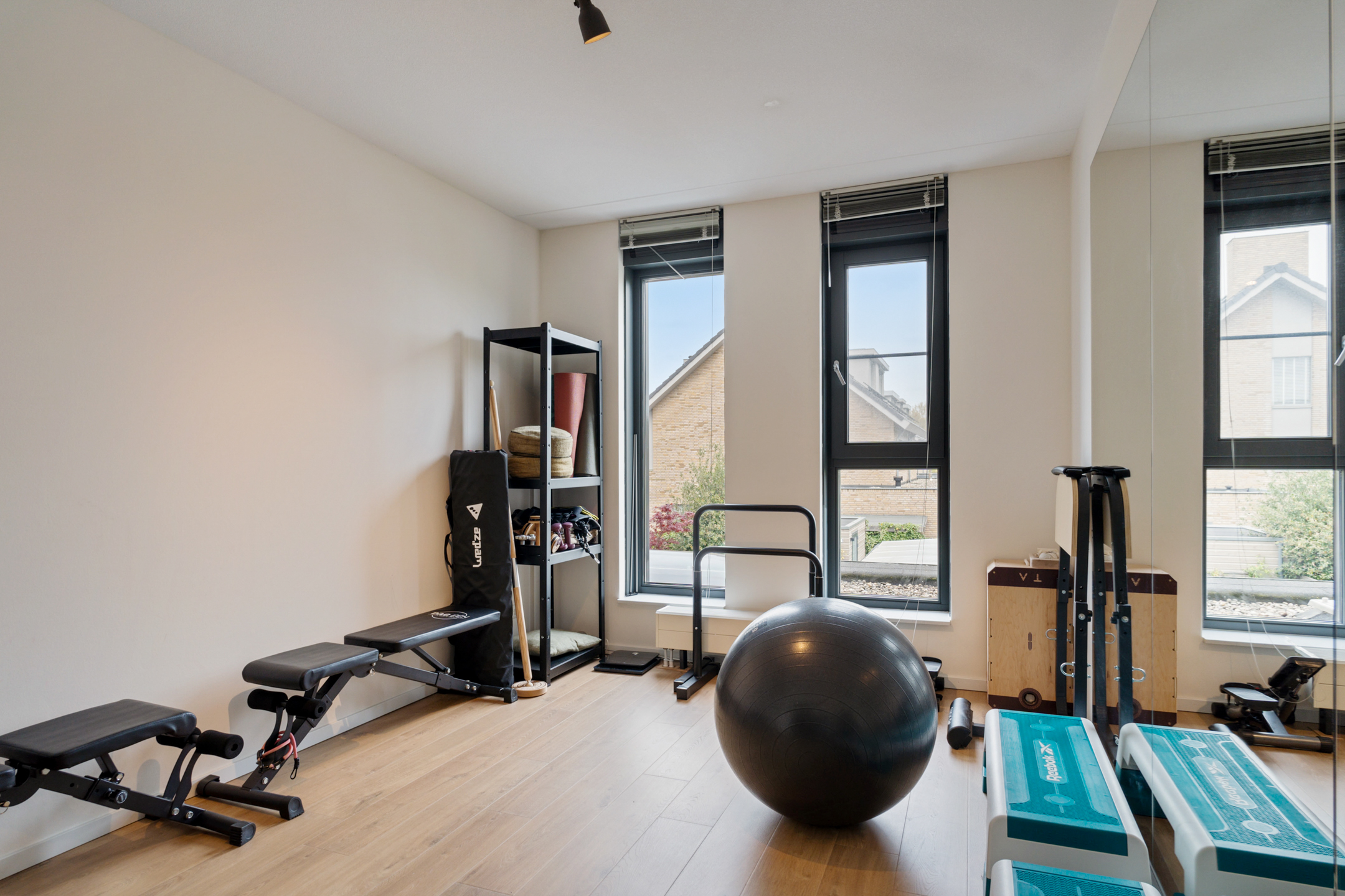 De eerste verdieping bereik je via de beklede trap. Aan de voorzijde bevindt zich een ruime slaapkamer. De nette badkamer is voorzien van een wastafel met meubel, tweede toilet en een comfortabele inloopdouche. Aan de achterzijde liggen nog twee slaapkamers, waarvan één nu als sportkamer wordt gebruikt.