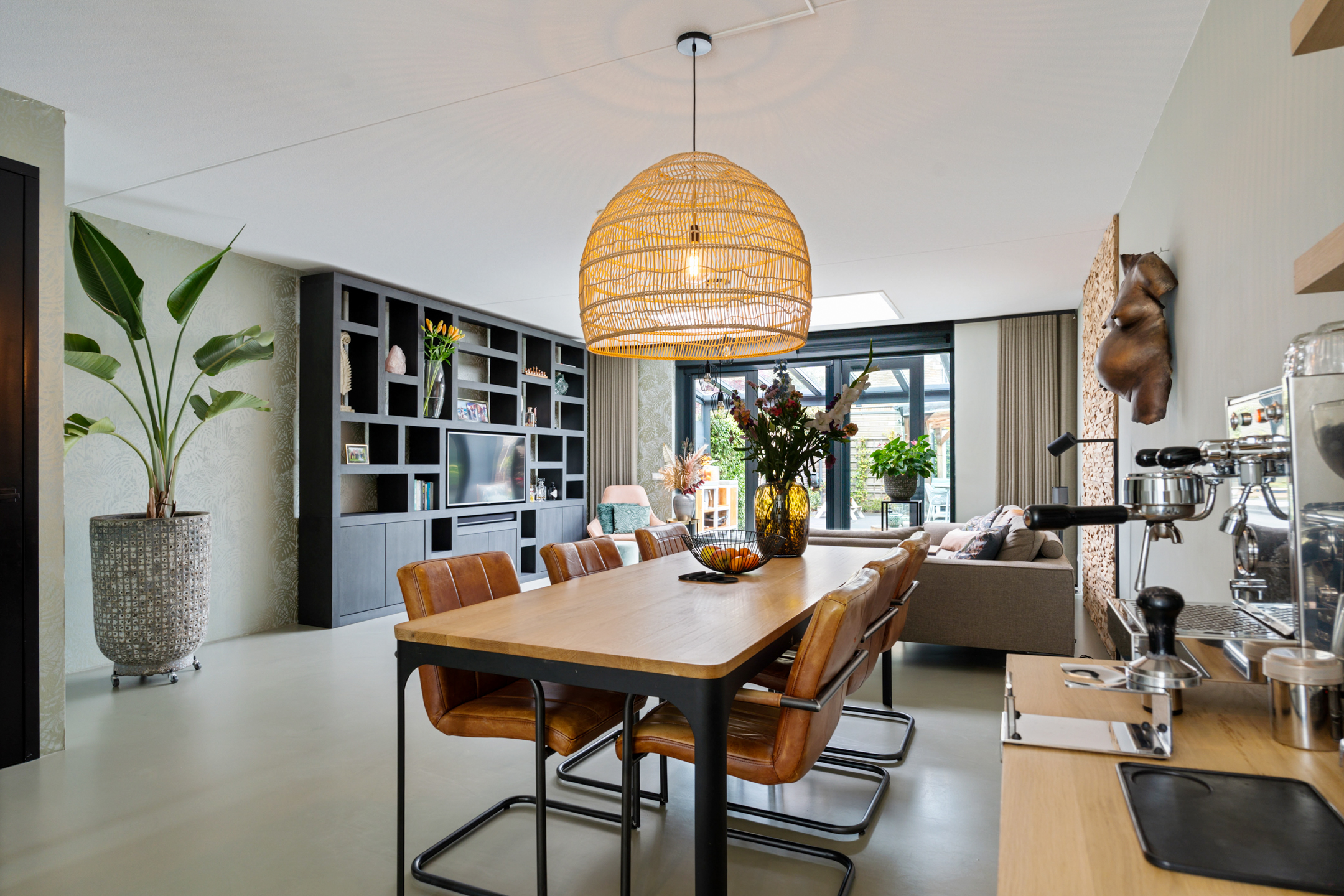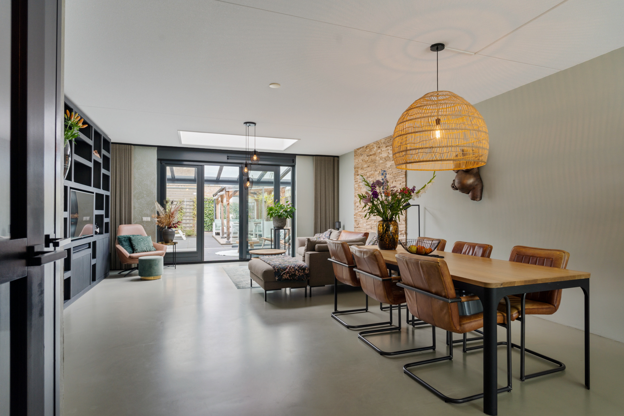 + Ruime living met uitbouw, lichtkoepel en gietvloer met vloerverwarming