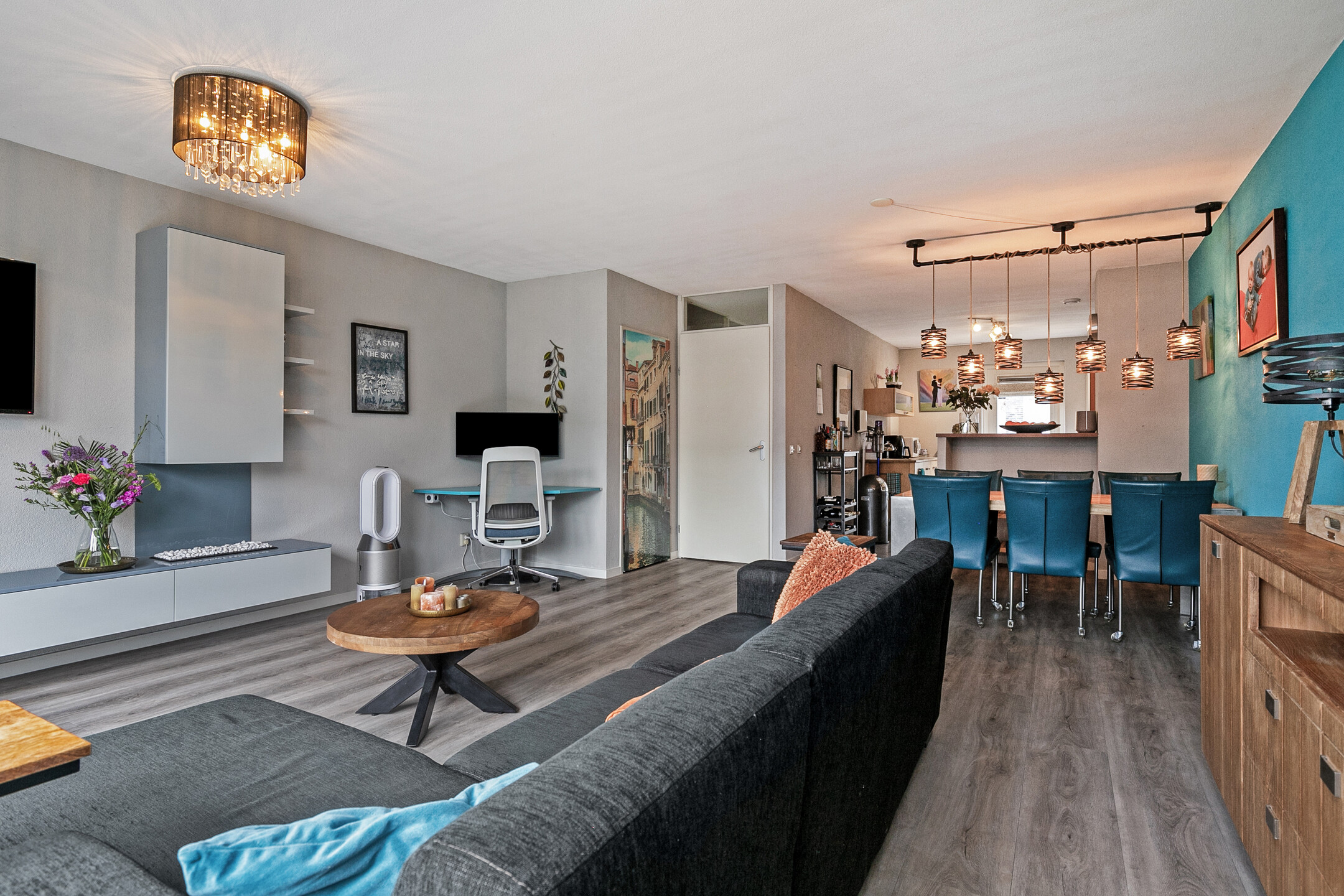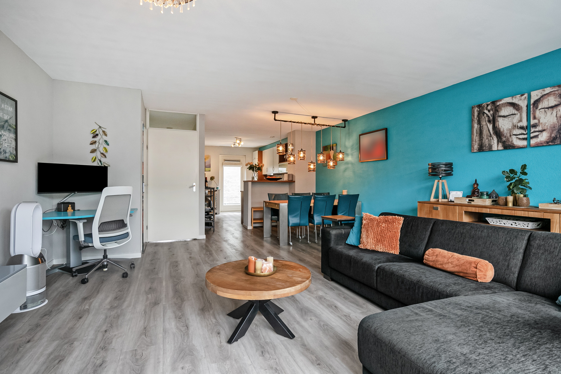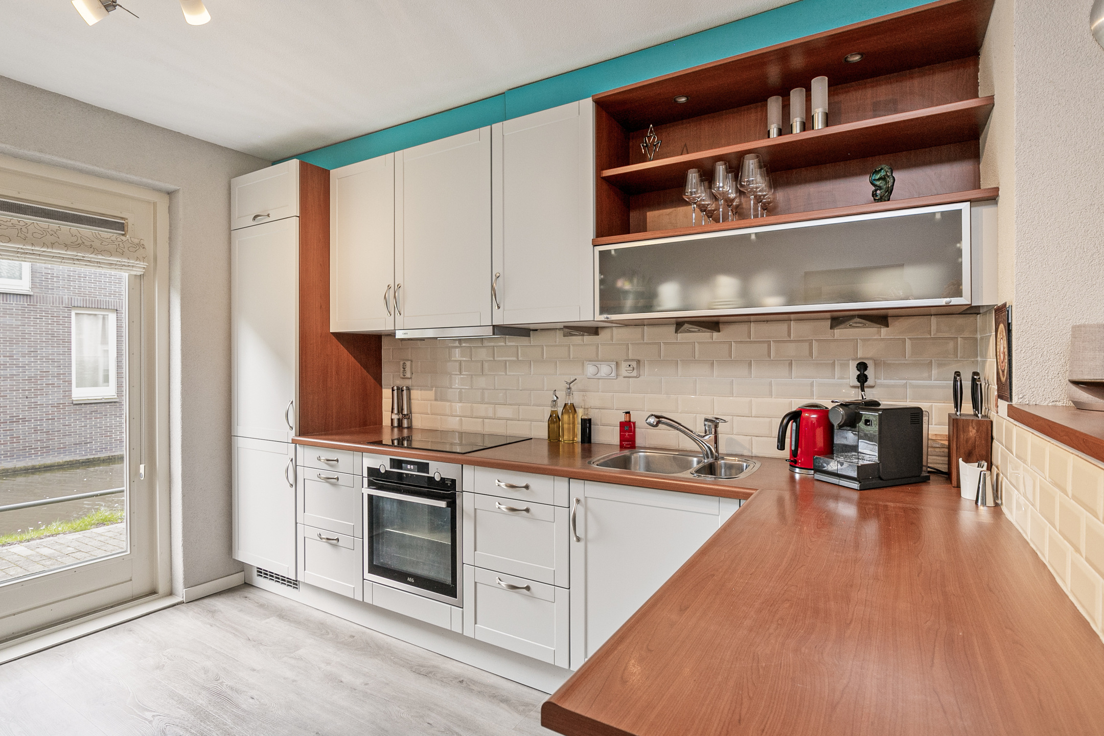De ruime woonkamer, gelegen aan de achterzijde van de woning, is tuingericht en heeft veel natuurlijk lichtinval. De ruime, open keuken ligt aan de voorzijde van de woning en is voorzien van diverse inbouwapparatuur.