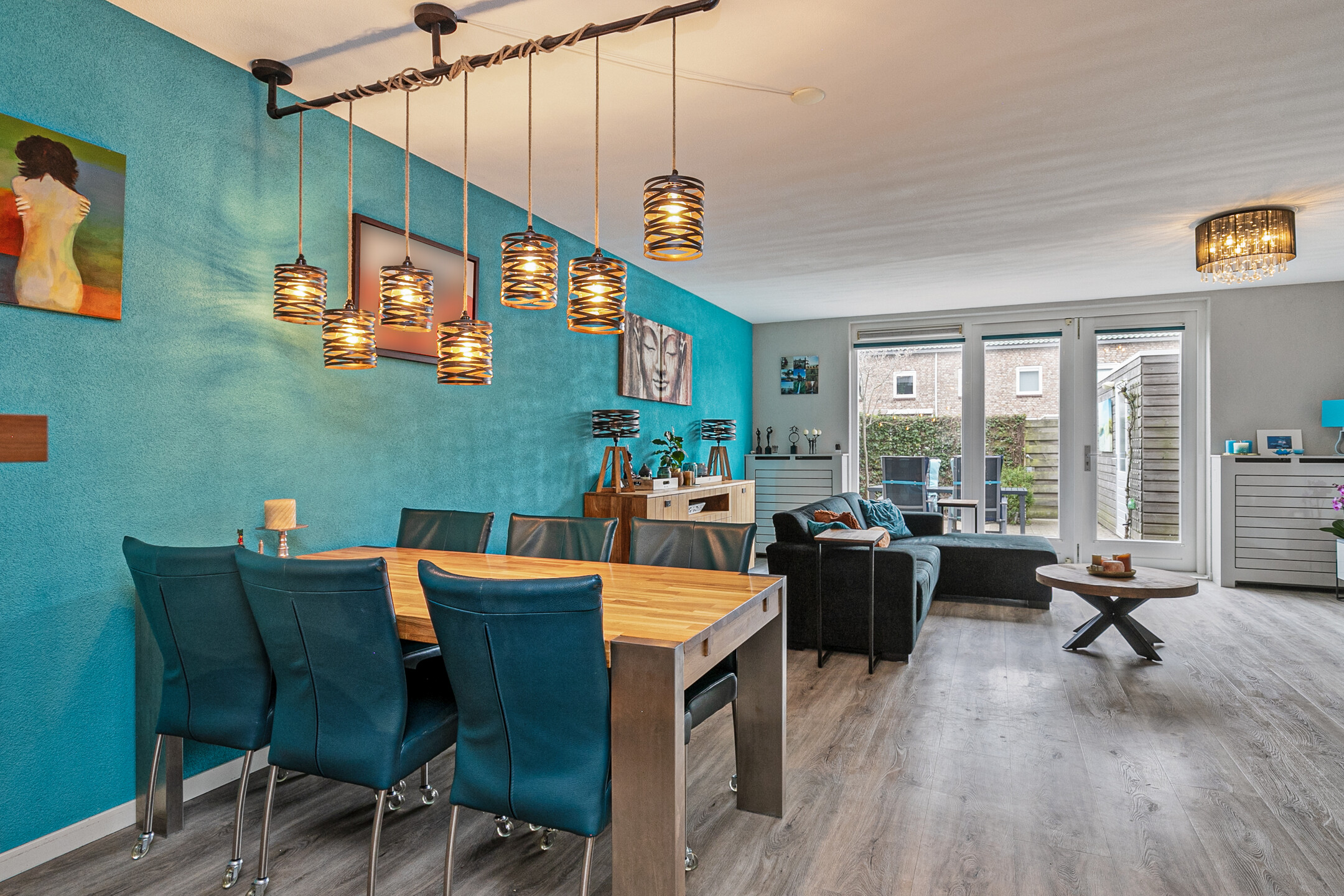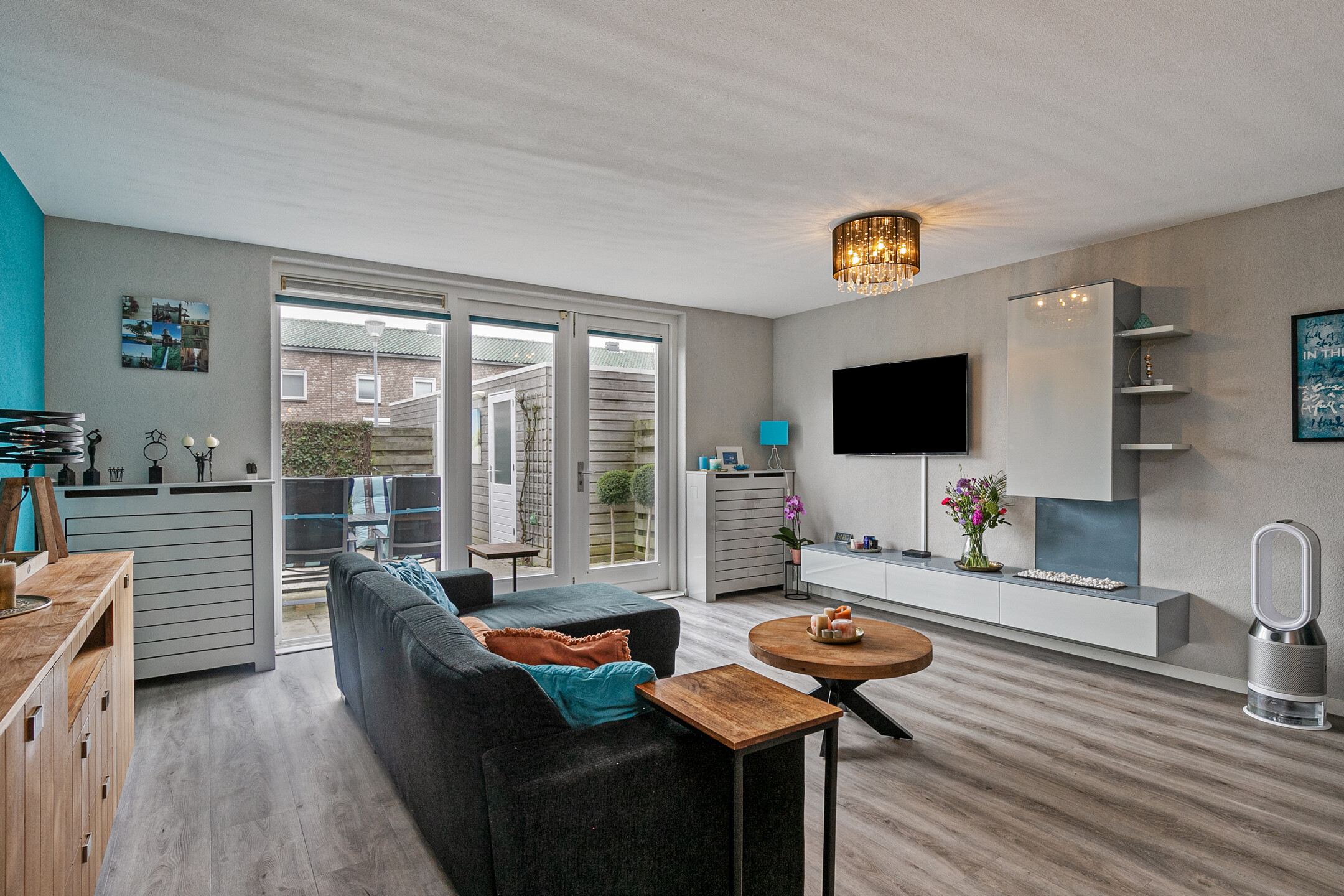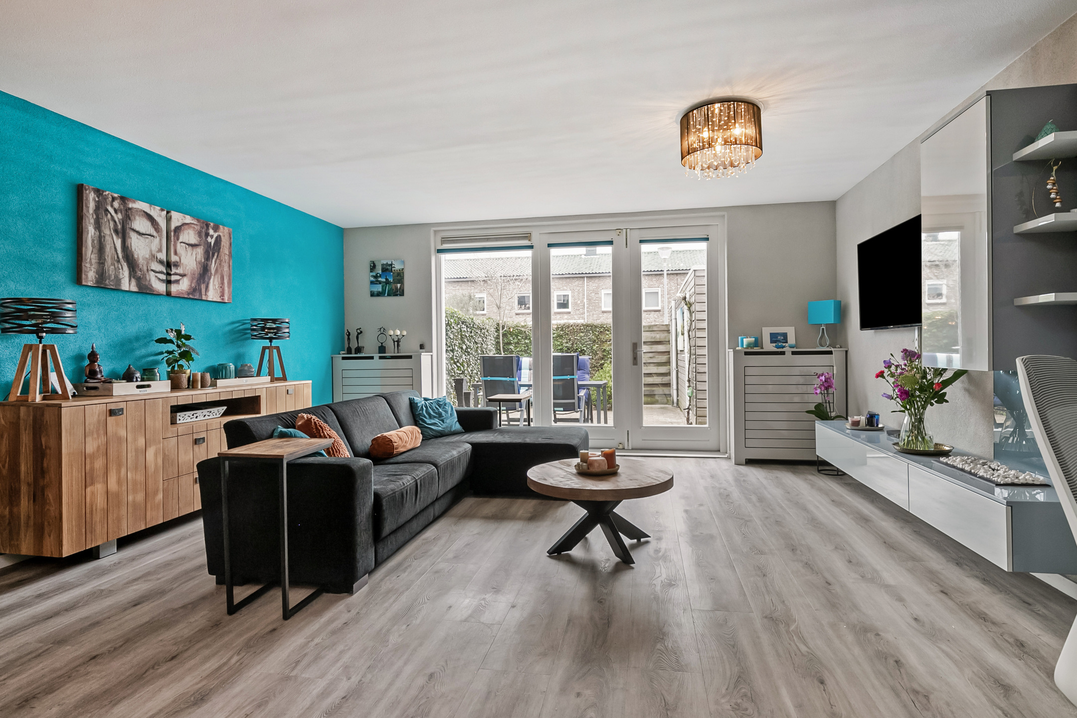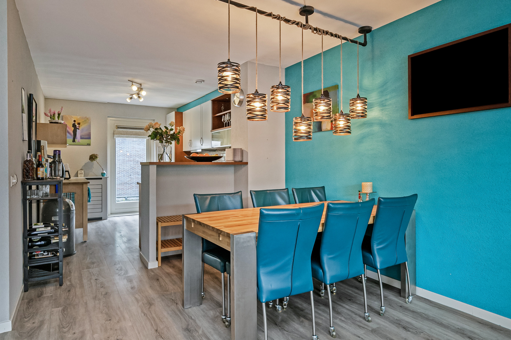 De ruime woonkamer, gelegen aan de achterzijde van de woning, is tuingericht en heeft veel natuurlijk lichtinval. De ruime, open keuken ligt aan de voorzijde van de woning en is voorzien van diverse inbouwapparatuur.