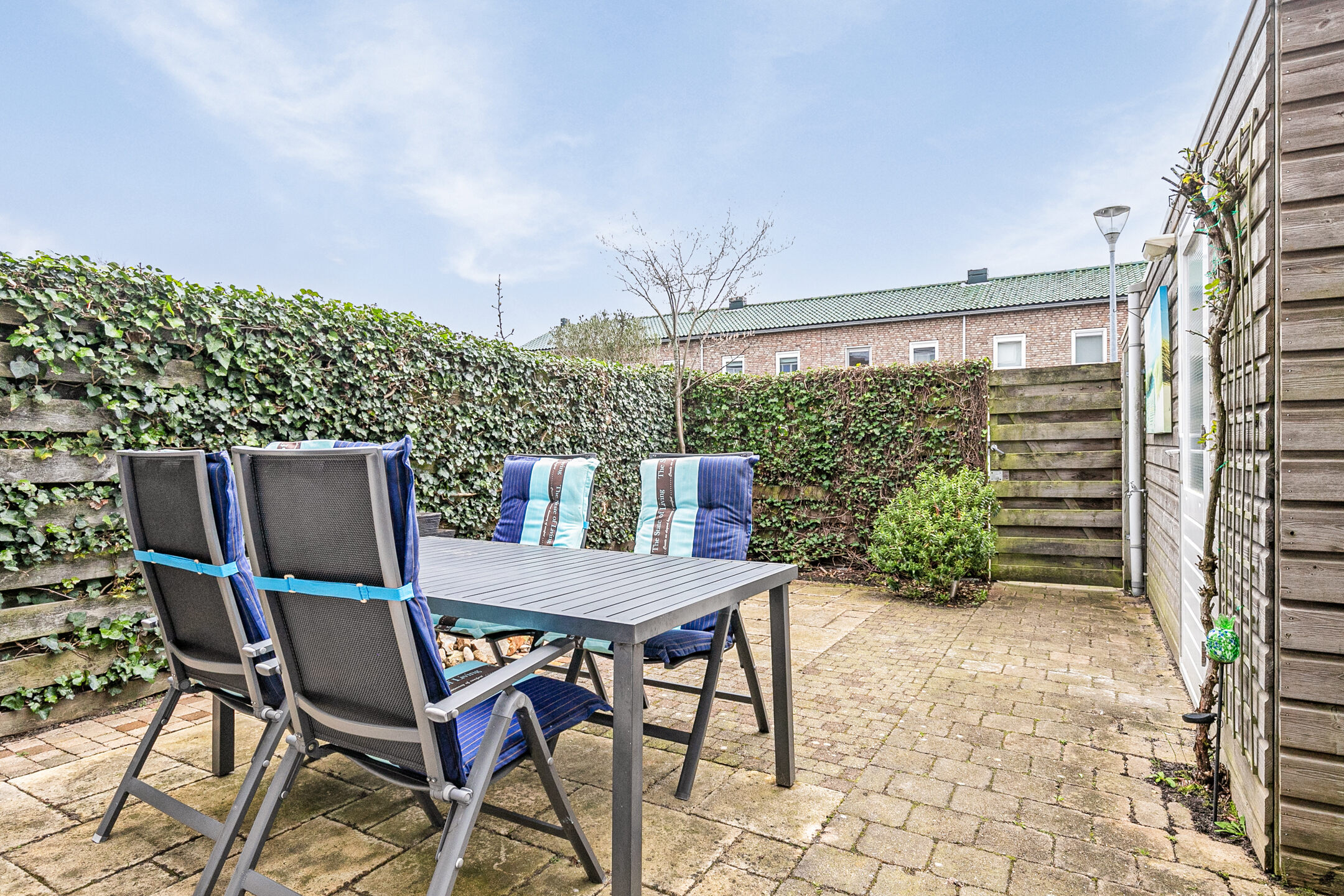 Ruime achtertuin op het zuidoosten, voorzien van ruime berging en een parkeerplaats.