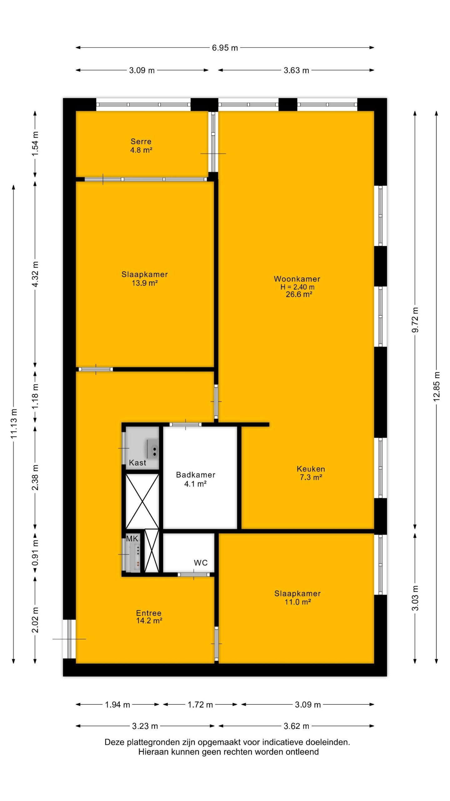 De weergegeven metrages gebruiksoppervlakten van 88 m² betreffen Wonen a 83,2m² + inpandige loggia 5,7m².