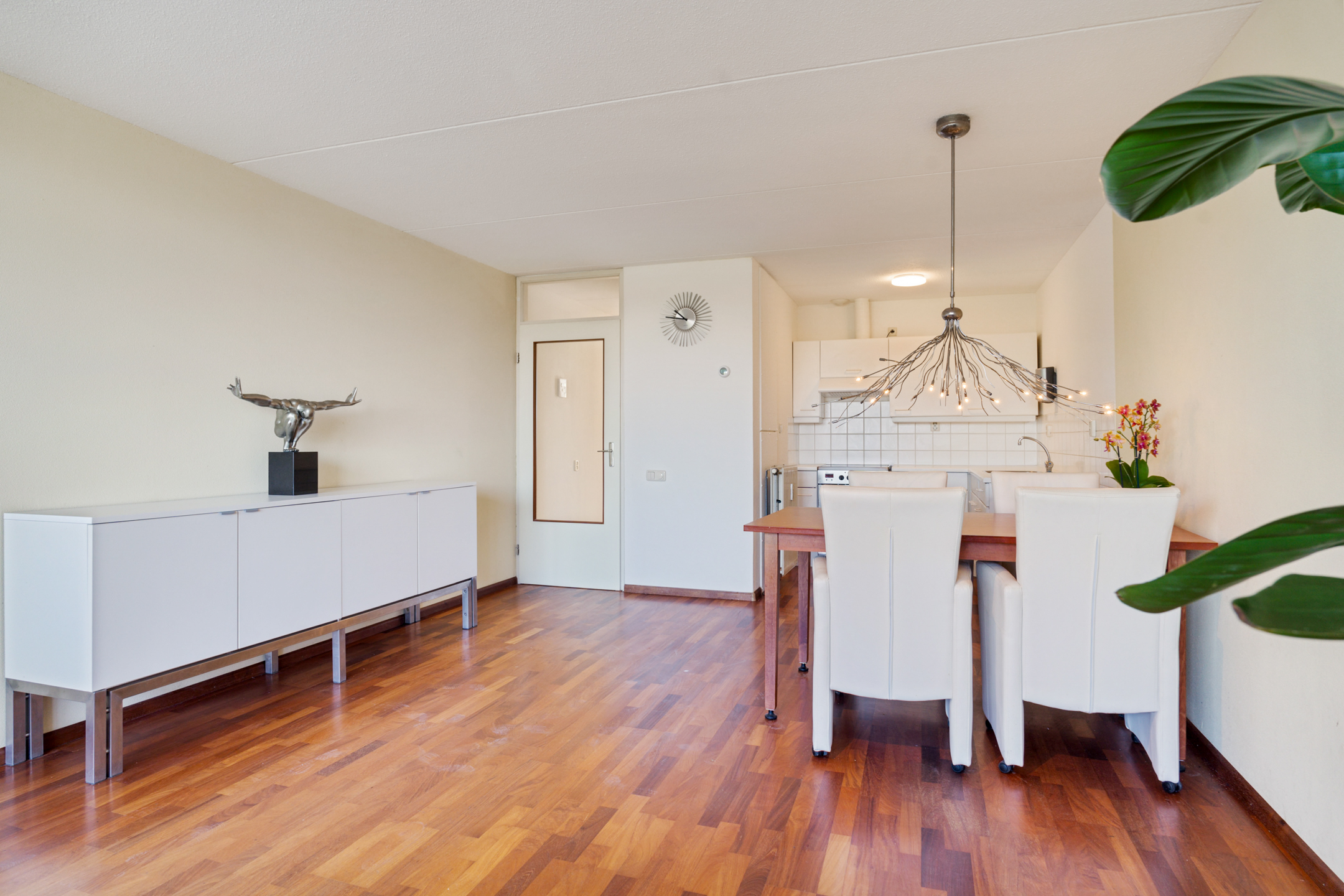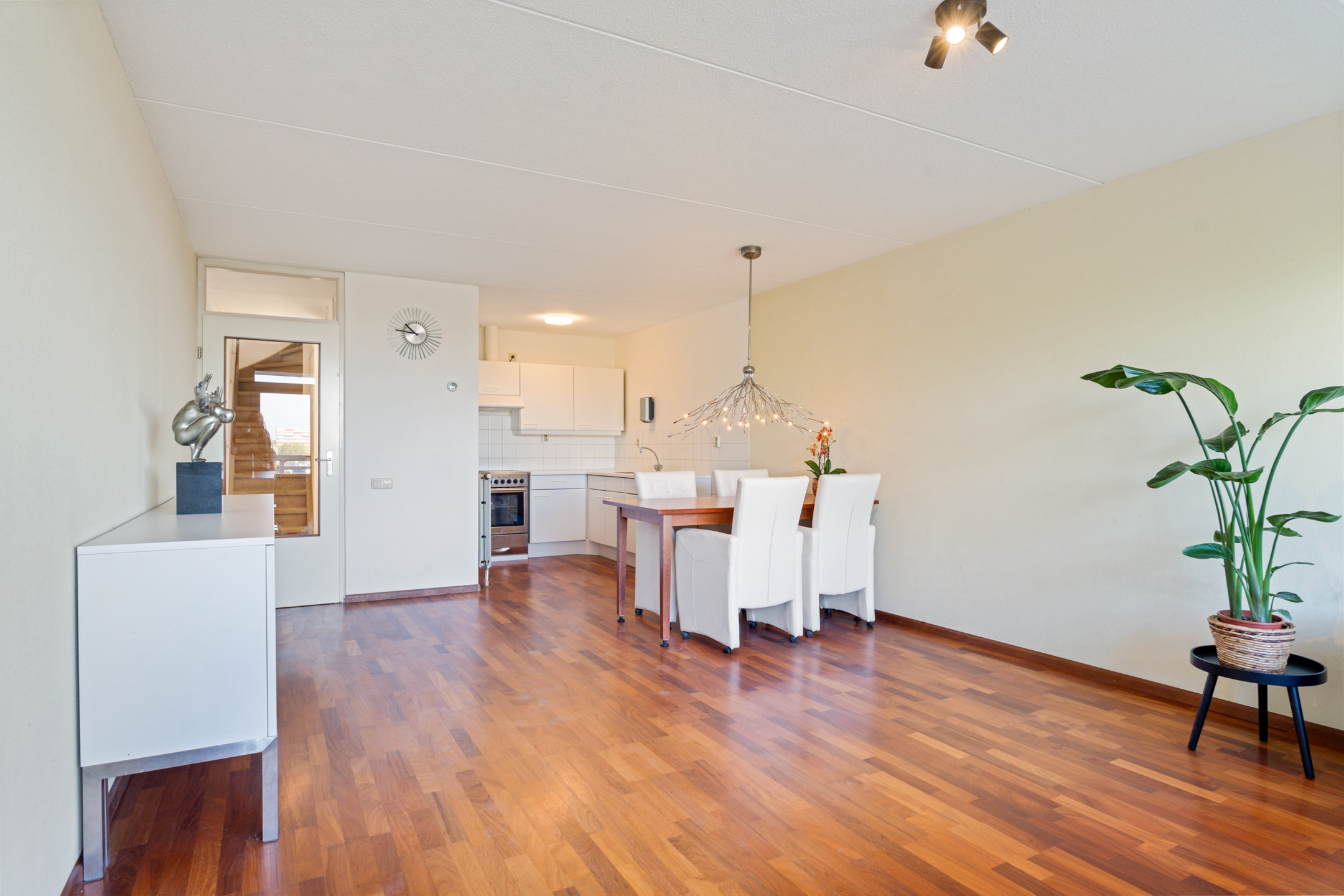 Vanaf de overloop zijn alle ruimtes toegankelijk. De badkamer is voorzien van een douchecabine, vaste wastafel en aansluiting voor de wasmachine. Aan de achterzijde ligt een ruime tweede slaapkamer. De woonkamer aan de voorzijde heeft een fraaie parketvloer en een open keuken. Vanuit de woonkamer stap je zo het zonnige balkon op, dat op het zuidwesten ligt en een vrij uitzicht biedt.