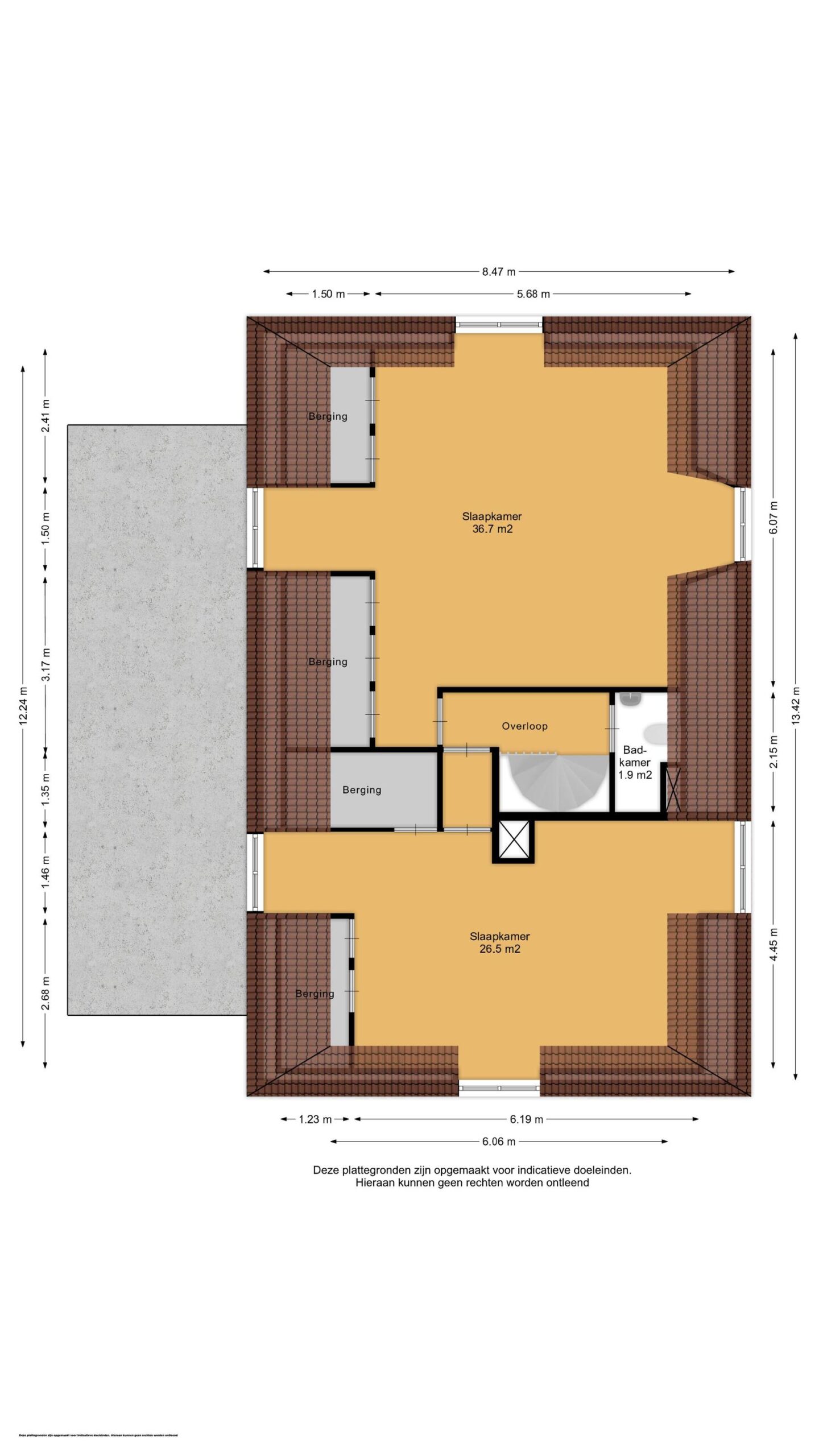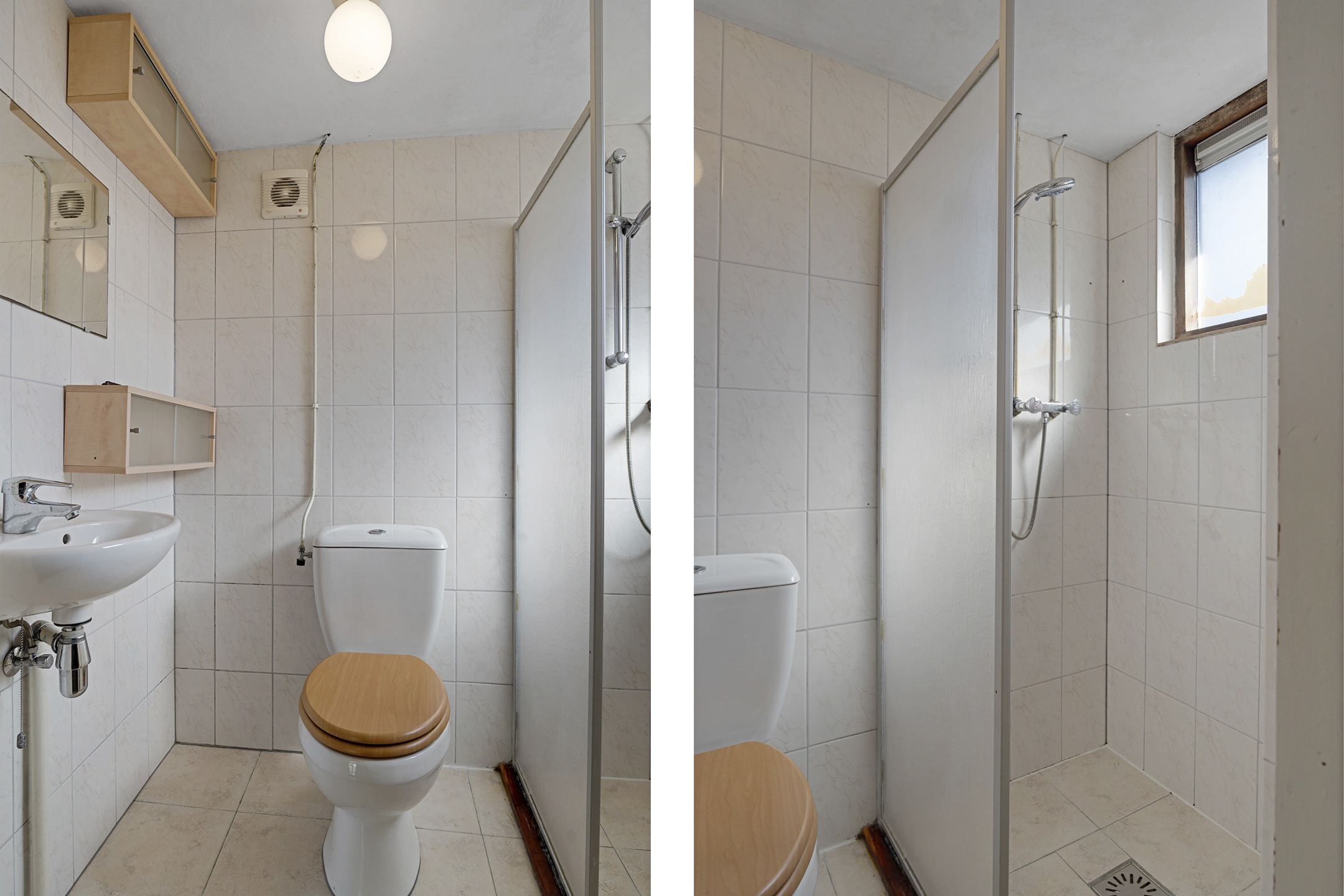 Op de bovenverdieping bevinden zich twee zeer royale slaapkamers, elk met ingebouwde bergingen onder de schuine kap, ideaal om de ruimte optimaal te benutten zonder extra kasten. Beide kamers bieden de mogelijkheid om eenvoudig extra slaapkamers te creëren.