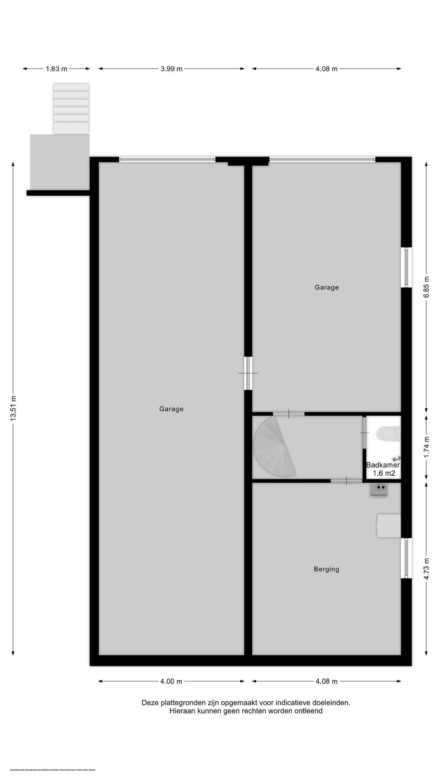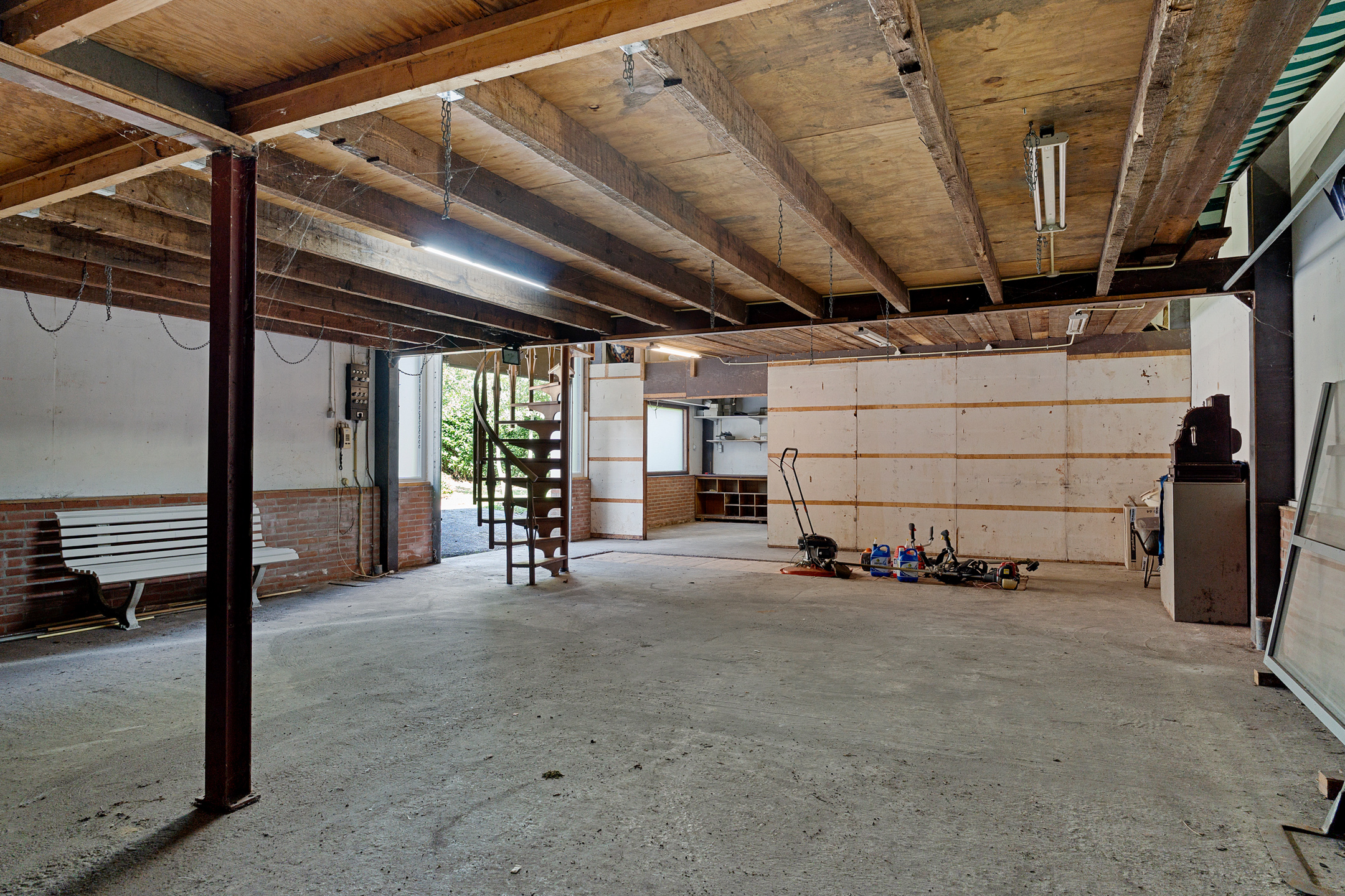 Bijgebouw 1 is een zeer ruime loods (zoals aangeduid op de plattegrond als “garage”), verdeeld over twee verdiepingen. Dit gebouw is perfect voor stalling, werkplaats, opslag of zakelijke doeleinden.