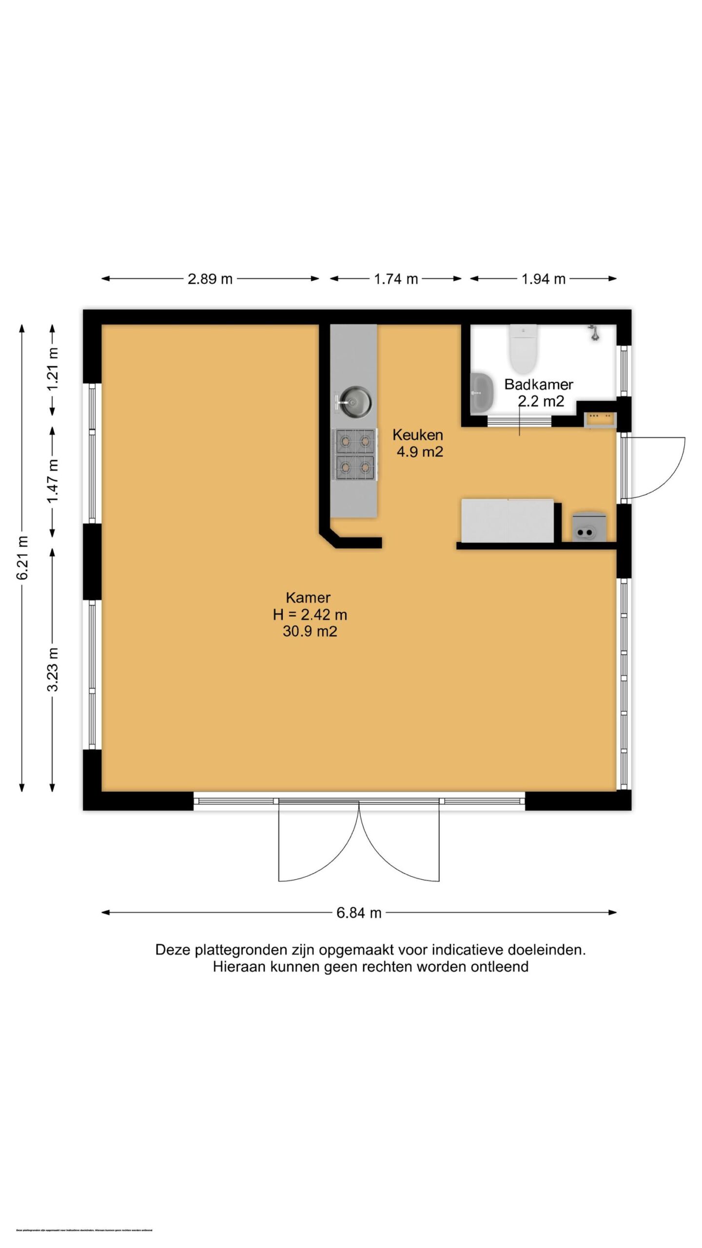 Bijgebouw 2 is kleiner maar volledig ingericht als zelfstandige unit met een woon-/slaapkamer, keuken, badkamer met inloopdouche, wastafel en toilet. Een ideale plek voor een au pair, gastenverblijf, mantelzorgwoning of kantoorruimte.